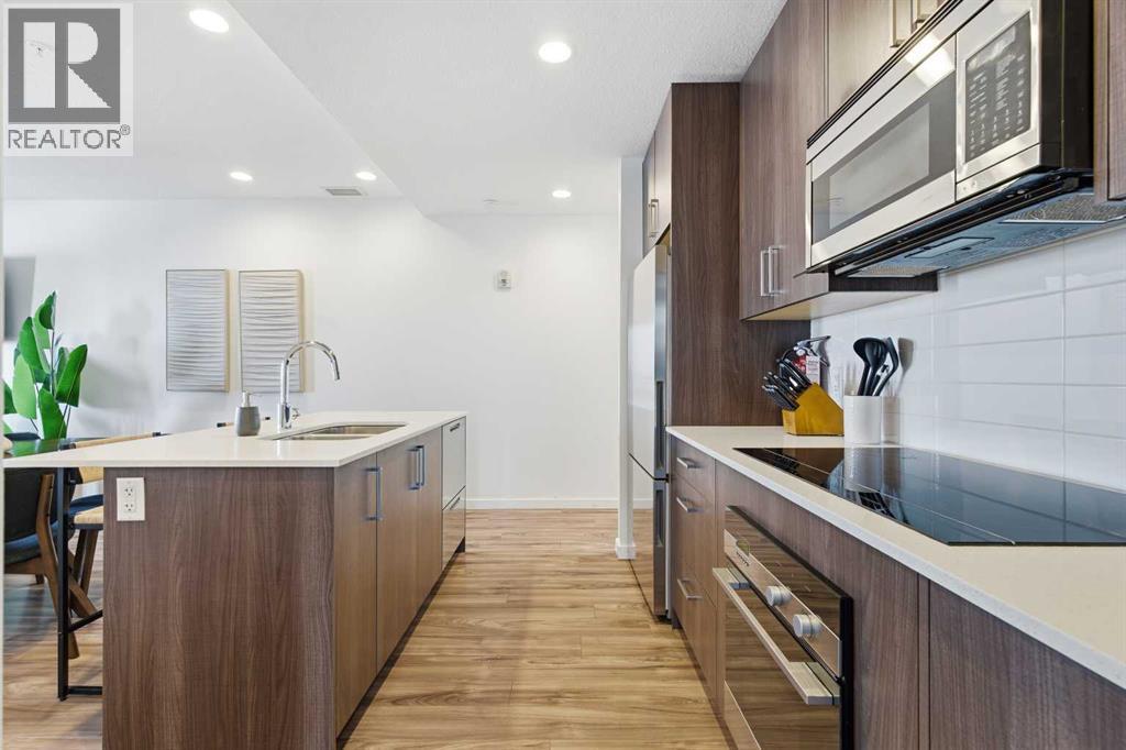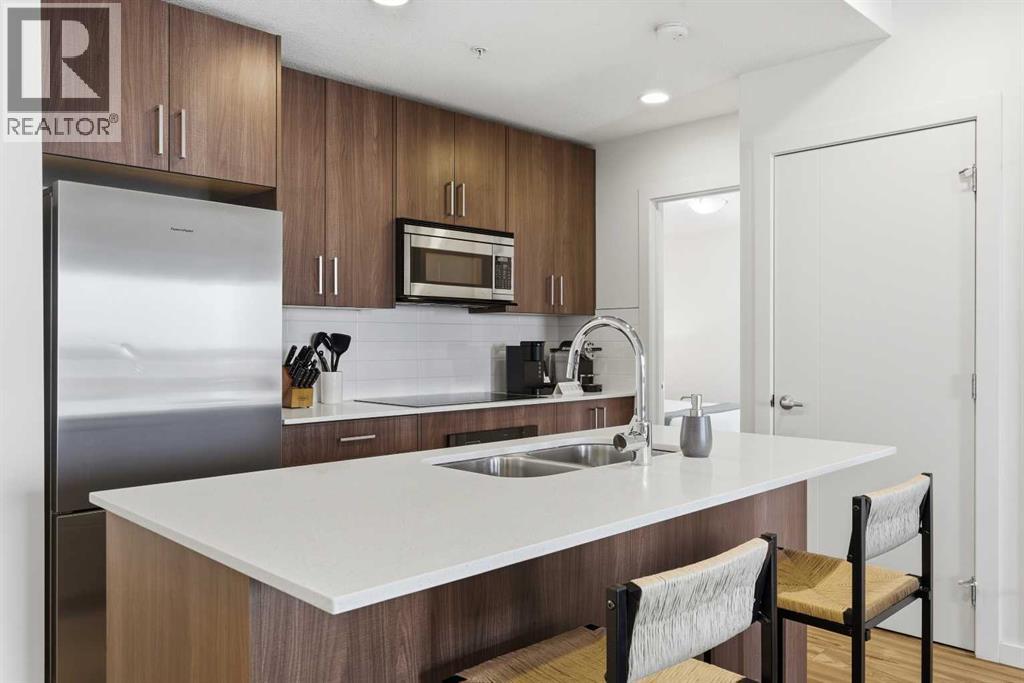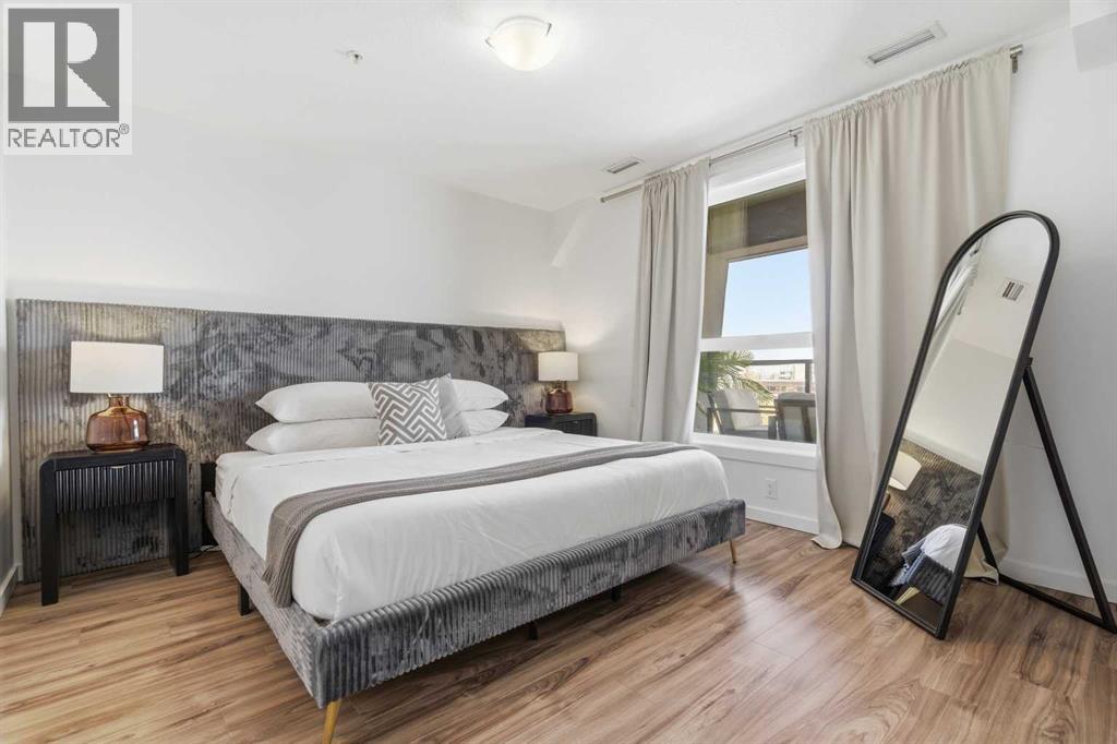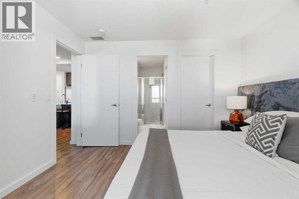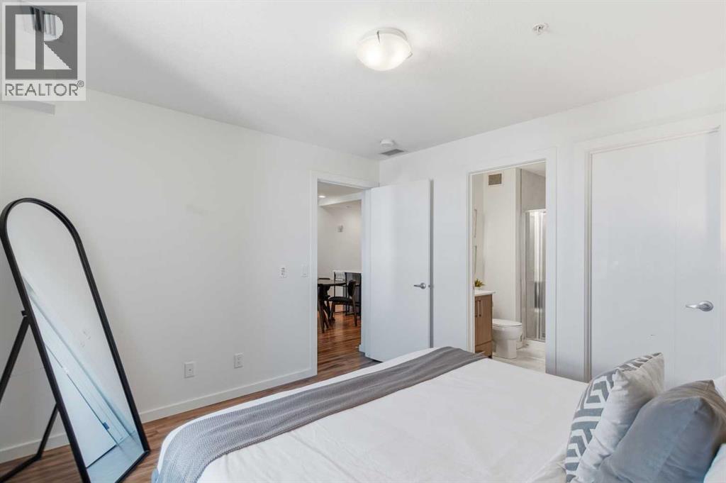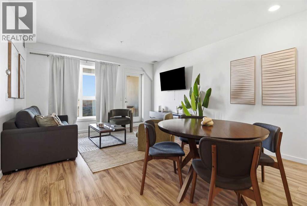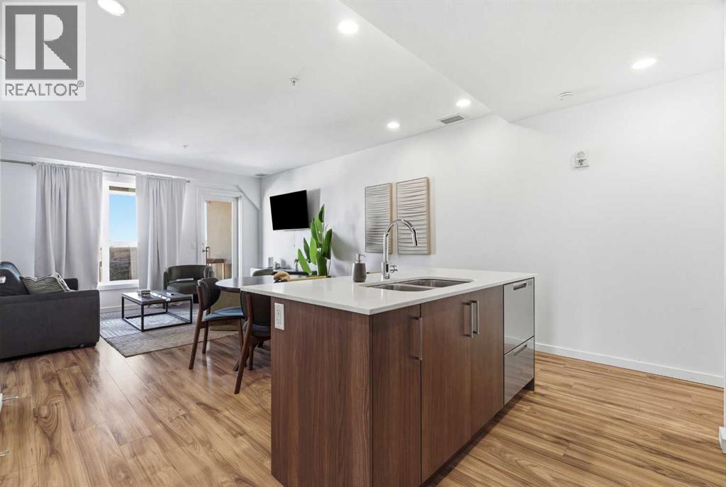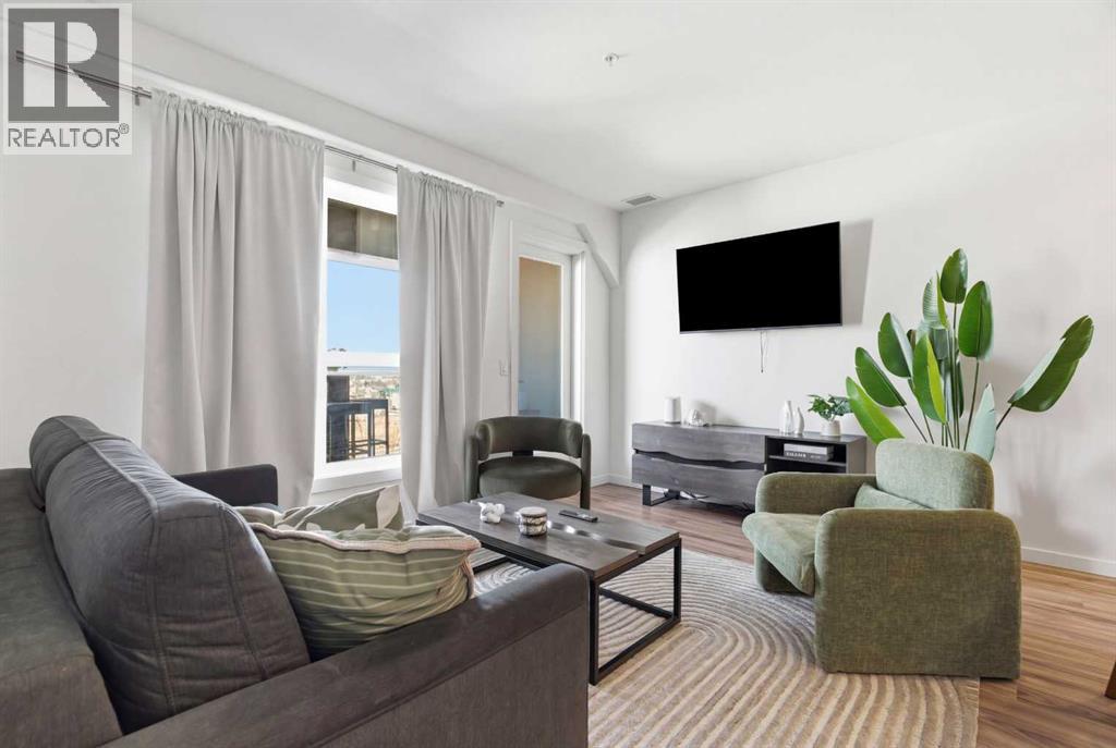 2 BEDROOMS | 2 BATHROOMS | TOP FLOOR CORNER UNIT | 795 SQFT | CONCRETE & STEEL BUILDING | UNDERGROUND PARKING | DOWNTOWN VIEWS | Welcome to this bright top-floor corner unit in the desirable community of Rosscarrock, offering 795 sqft of well-designed living space in a quiet, well-maintained concrete and steel building. With double drywall between units, this home provides exceptional soundproofing and privacy, making it ideal for comfortable condo living. Step inside to an open-concept layout featuring hardwood flooring throughout and central air conditioning for year-round comfort. The modern kitchen is both stylish and functional, complete with quartz countertops, induction cooktop, stainless steel appliances, and a large central island with seating, perfect for entertaining or everyday living. The kitchen flows seamlessly into the dining and living areas, where large windows and a patio door lead to your large private balcony. Enjoy your morning coffee with beautiful sunrise views or unwind while taking in the stunning downtown Calgary skyline. The spacious primary bedroom is filled with natural light and features a walk-in closet and a 4-piece ensuite. A second bedroom offers flexibility for guests, a roommate, or a home office, and is complemented by a 3-piece bathroom. Additional highlights include in-suite laundry, a storage closet, and a well-appointed layout designed for both functionality and comfort. This home also includes a titled underground parking stall, visitor parking, and 24-hour security for added peace of mind . The building is clean, quiet, and ideally located within walking distance to restaurants, 17th Avenue, the C-Train, grocery stores, shopping, schools and parks. With easy access to downtown and a short drive to Westhills Shopping Centre, this location offers the perfect balance of convenience and lifestyle. Whether you're a first-time buyer, investor, or looking for a great AirBnB opportunity, this home checks all the boxes. Book your s howing today! (id:63190)