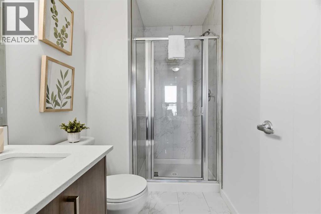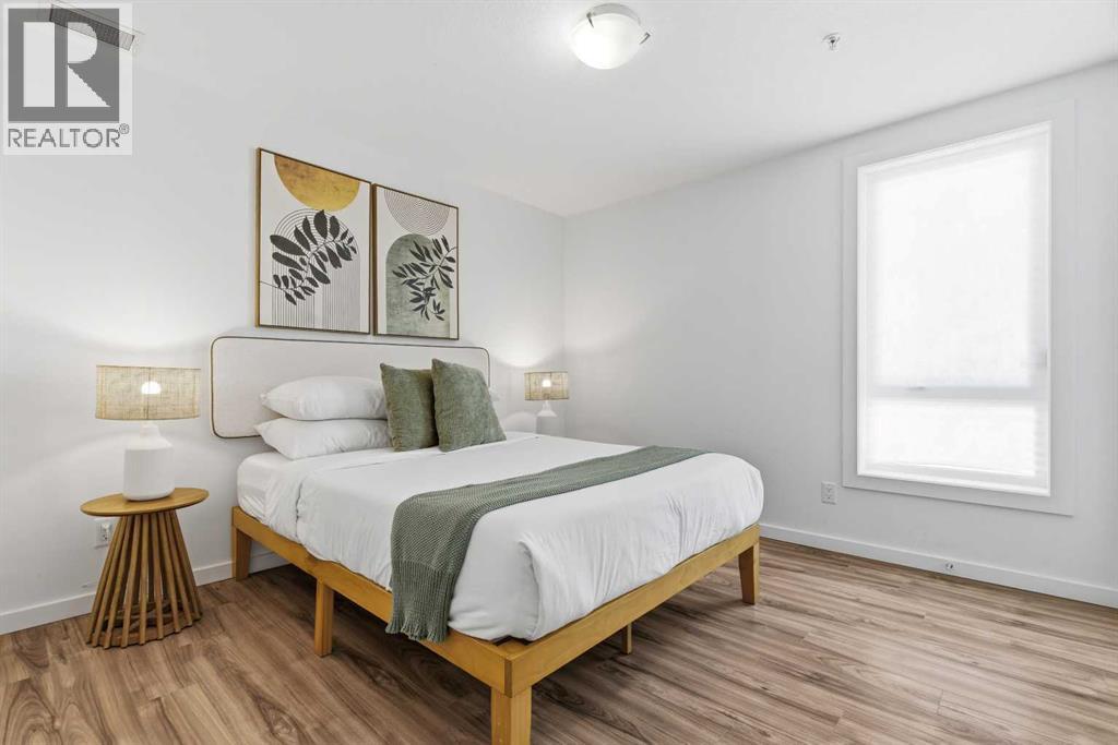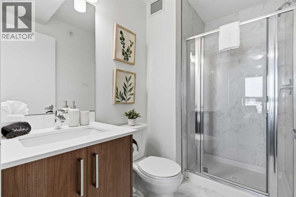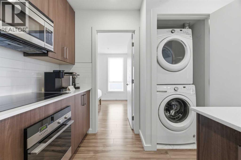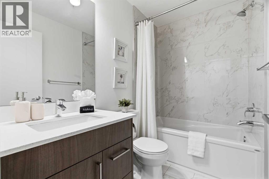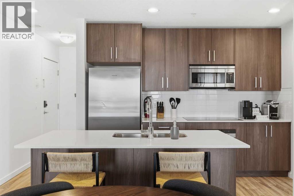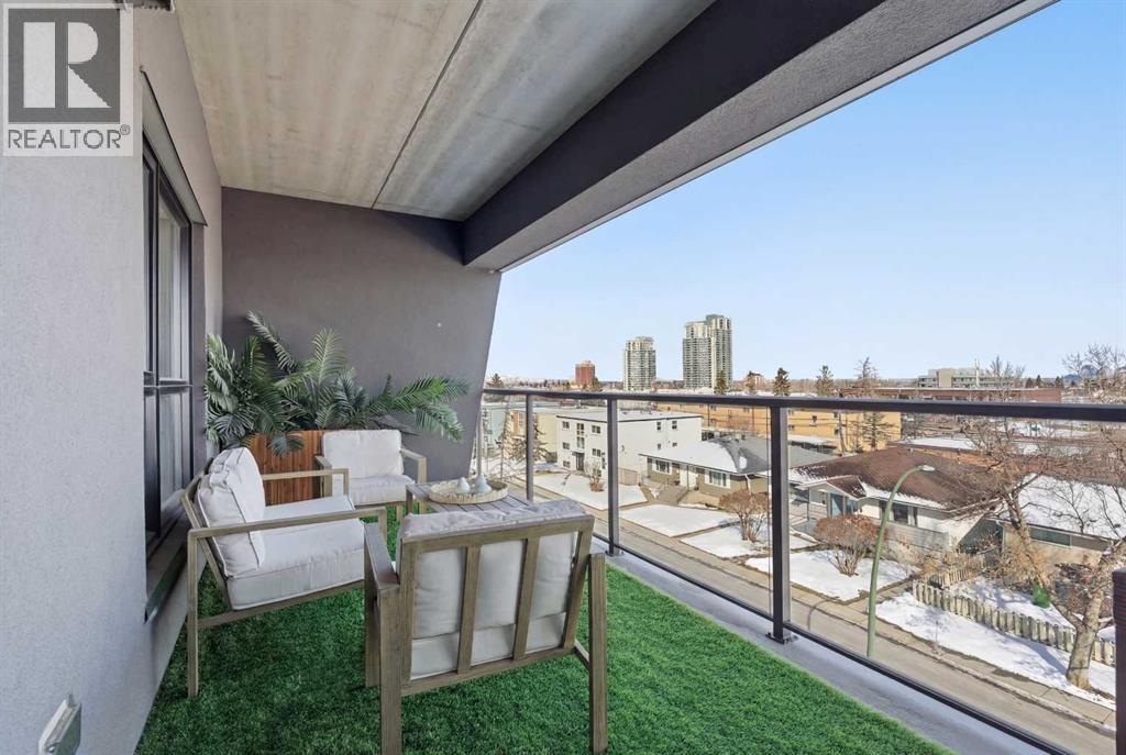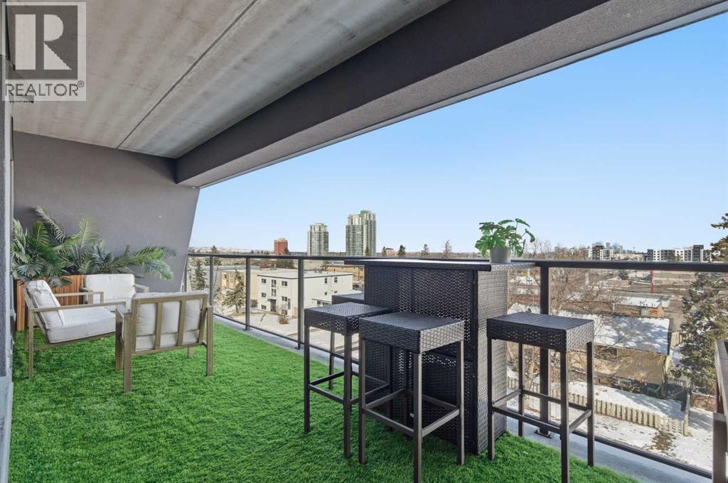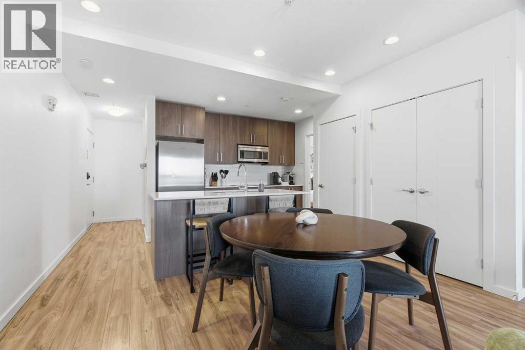 2 BEDROOMS | 2 BATHROOMS | TOP FLOOR CORNER UNIT | 795 SQFT | CONCRETE & STEEL BUILDING | UNDERGROUND PARKING | DOWNTOWN VIEWS | Welcome to this bright top-floor corner unit in the desirable community of Rosscarrock, offering 795 sqft of well-designed living space in a quiet, well-maintained concrete and steel building. With double drywall between units, this home provides exceptional soundproofing and privacy, making it ideal for comfortable condo living. Step inside to an open-concept layout featuring hardwood flooring throughout and central air conditioning for year-round comfort. The modern kitchen is both stylish and functional, complete with quartz countertops, induction cooktop, stainless steel appliances, and a large central island with seating, perfect for entertaining or everyday living. The kitchen flows seamlessly into the dining and living areas, where large windows and a patio door lead to your large private balcony. Enjoy your morning coffee with beautiful sunrise views or unwind while taking in the stunning downtown Calgary skyline. The spacious primary bedroom is filled with natural light and features a walk-in closet and a 4-piece ensuite. A second bedroom offers flexibility for guests, a roommate, or a home office, and is complemented by a 3-piece bathroom. Additional highlights include in-suite laundry, a storage closet, and a well-appointed layout designed for both functionality and comfort. This home also includes a titled underground parking stall, visitor parking, and 24-hour security for added peace of mind . The building is clean, quiet, and ideally located within walking distance to restaurants, 17th Avenue, the C-Train, grocery stores, shopping, schools and parks. With easy access to downtown and a short drive to Westhills Shopping Centre, this location offers the perfect balance of convenience and lifestyle. Whether you're a first-time buyer, investor, or looking for a great AirBnB opportunity, this home checks all the boxes. Book your s howing today! (id:63190)