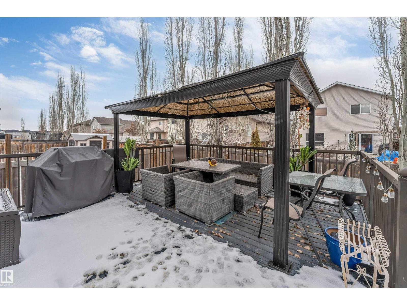 This spacious & bright 4+1 BDRM family home. The main floor includes a formal living & dining room the kitchen with SS appliances & tons of cupboard space, the family room, a den(or 5th BDRM) a 2-piece powder room & the entrance to the triple attached garage. Upper level features 4 BDRMS, 2 that share a Jack & Jill bathroom, the 3rd also with its own bathroom, & the luxurious master suite with a roomy 5-piece ensuite & bright W-I closet. Accessed from the family room is a fantastic outdoor space including a large deck & gazebo, great for entertaining. The south yard would be perfect for a vegetable garden or garden boxes. This lovely home has beautiful finishings include traditional mouldings, coved ceilings, hardwood & porcelain tile flooring, granite countertops, & dramatic 18’ ceilings in the LR & foyer. Located close to many amenities & walking distance to the High School & Aqua-Fit Centre, and steps to Four Seasons Park. The partly finished basement has a great rec room large screen TV space. (id:63190)