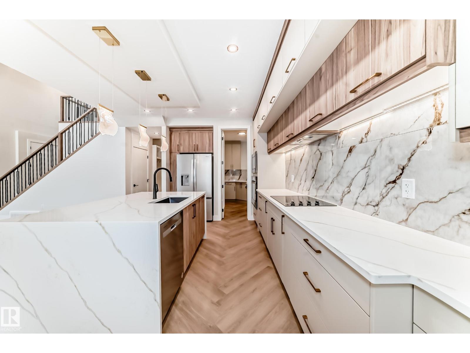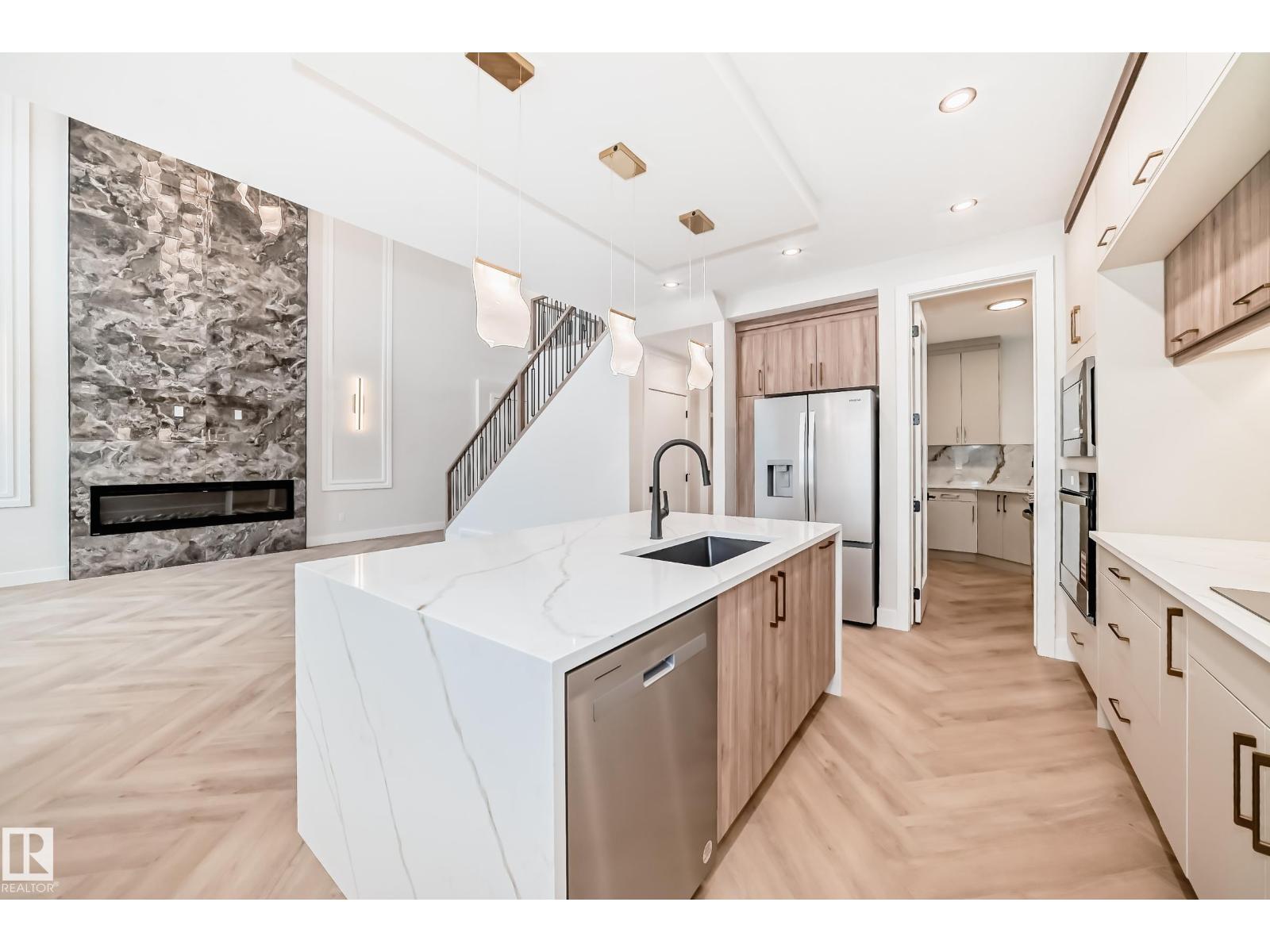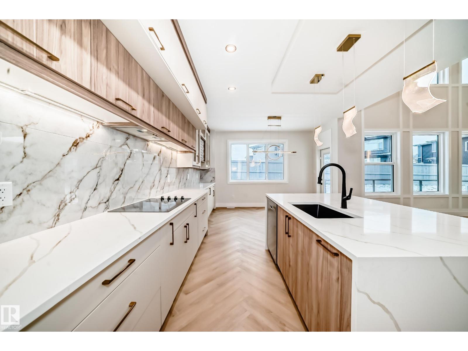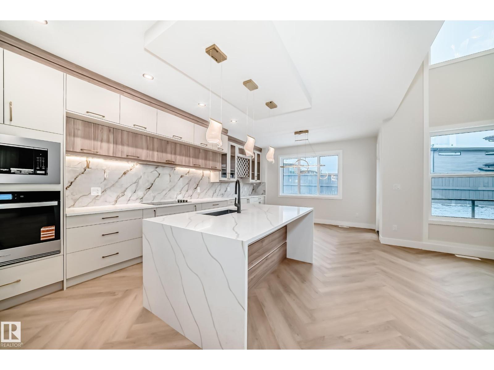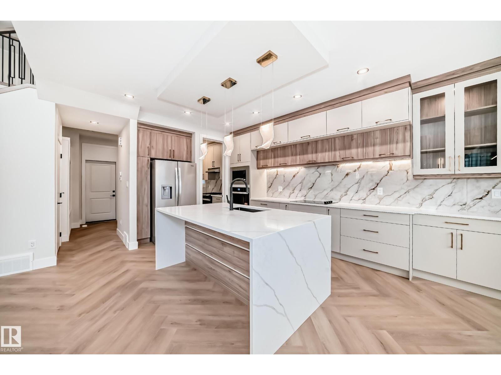 Introducing an unparalleled masterpiece of modern design, nestled in the exclusive southwest Edmonton neighborhood of Keswick. Backing on to a walkway. This highly upgraded stunning 4 bedroom with 2 Primary ensuite, 4 full bathroom brand-new construction home is a testament to the exceptional craftsmanship of one of Edmonton's top-notch builders. Open-concept living room, featuring soaring ceilings that stretch up to the second floor. Perfect for entertaining, this expansive space seamlessly blends the living, dining, spice kitchen and main kitchen areas. You'll discover an array of upscale finishes, including premium materials, sleek designs, and meticulous attention to detail. From the gourmet kitchen to the spa-inspired bathrooms, every aspect of this home exudes luxury and sophistication. Come, See, Believe (id:63190)