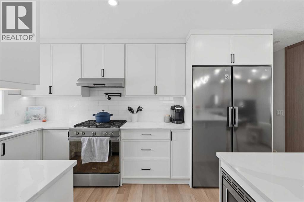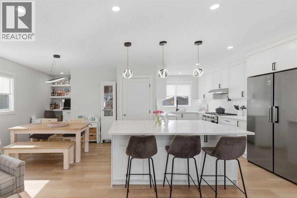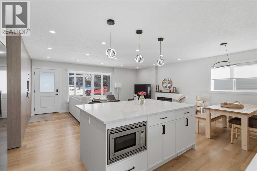 Perfectly positioned in sought-after Silver Springs, this extensively renovated home introduces a flexible 6-bedroom layout with a beautifully finished illegal suite, ideal for multi-generational living or added versatility. Step inside to experience a bright, open-concept main level where luxury vinyl plank flooring and LED lighting establish a clean, modern aesthetic while maintaining everyday durability. Built-in storage at the front entry keeps daily routines organized while creating an immediate sense of intention and design. Gather around the gas fireplace in the living room as expansive windows draw in natural light throughout the day, enhancing both comfort and atmosphere. Entertain with ease as clear sightlines connect the dining area, where designer lighting elevates both casual meals and special occasions. Stay productive at the integrated workstation that adapts seamlessly to work or study needs without sacrificing living space. Effortlessly prepare meals in the thoughtfully designed kitchen showcasing quartz countertops, full-height cabinetry, high-end appliances including a gas stove, and a large island that anchors conversation and connection. Retreat at the end of the day to a private primary bedroom featuring its own stylish 2-piece ensuite, while two additional bedrooms and a well-appointed 4-piece bathroom complete the main level. Head downstairs through a separate entrance to discover a fully self-contained lower level equipped with its own laundry, ensuring privacy and independence. Enjoy a modern open layout that mirrors the quality and finish of the upper level, complemented by a spacious living area and a full kitchen finished with quartz surfaces, stainless steel appliances and a central island. Rest comfortably in three additional bedrooms with egress windows that enhance both safety and natural light, including a primary space with its own 2-piece ensuite, while a 4-piece bathroom serves the remainder of the level. Benefit from major upgra des completed in 2024 including a furnace, hot water tank, roof shingles, and windows, delivering peace of mind for years ahead. Spend time outdoors in the expansive backyard where mature trees create a private setting, a paver stone patio encourages outdoor dining and relaxation and generous lawn space supports play or gardening. Appreciate the quiet location just steps from pathways leading to the Bow River, where nature, recreation and scenic views become part of daily life. It is a short drive to nearby Winsport, Silver Springs golf and country club, U of C, Market Mall and the Foothills Hospital. Don't miss out on the opportunity. (id:63190)