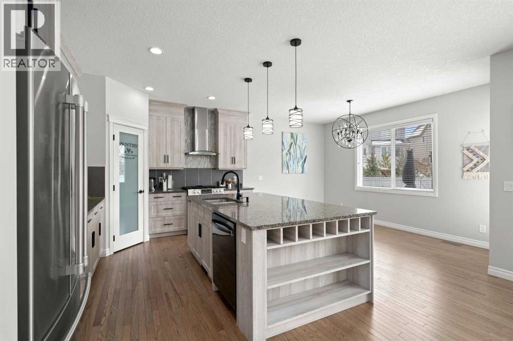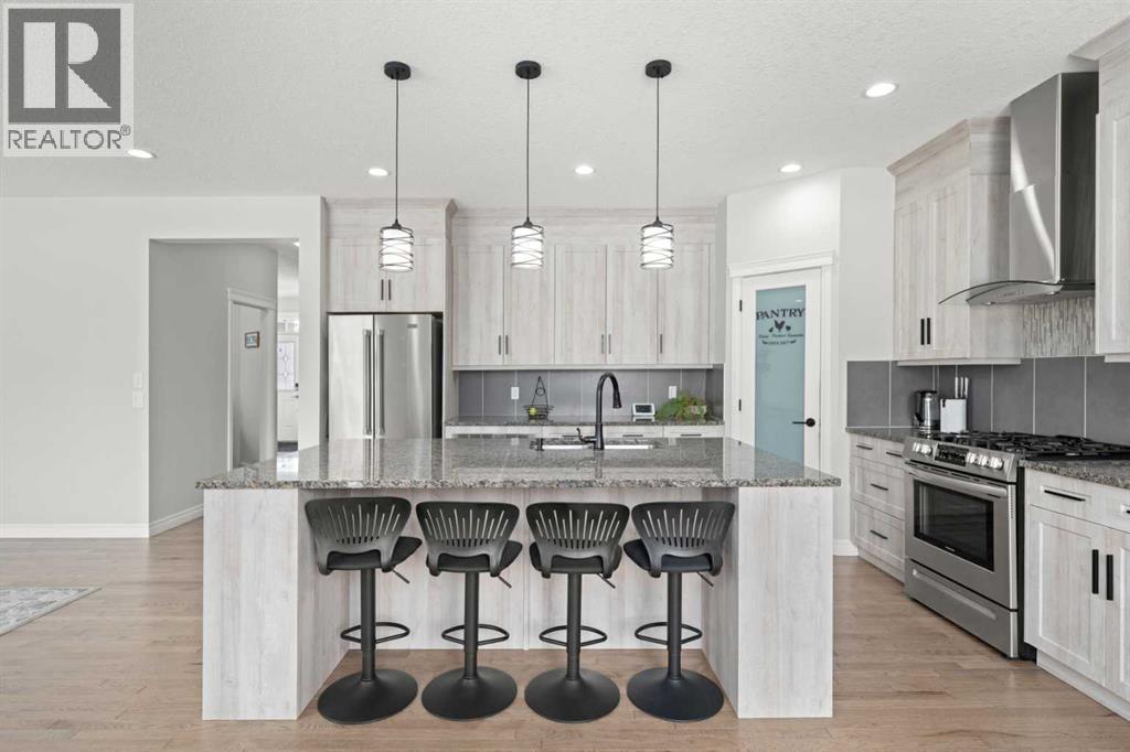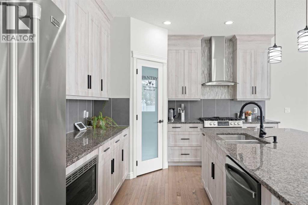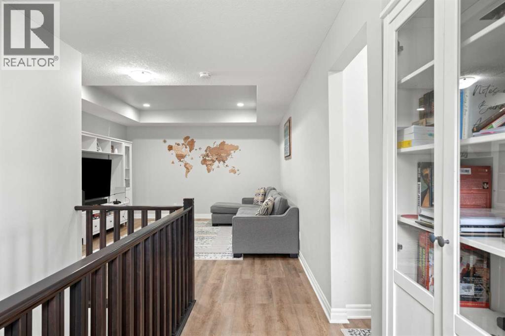 Welcome to this beautifully maintained, Air conditioned, Cimarron Springs family home, where pride of ownership is evident from the moment you arrive. Featuring a charming front porch and excellent curb appeal, this home offers comfort, style, and thoughtful upgrades throughout. Step inside to a spacious front entry with tile flooring and impressive 9’ ceilings. Gleaming hardwood floors flow through the living room, dining room, and kitchen, creating a warm and cohesive main level. A front-facing office with durable LVP flooring provides the perfect space for working from home. The renovated kitchen (2024) is a true showstopper, complete with ceiling-height cabinetry, a gas stove, chimney-style hood fan, built-in microwave, stainless steel appliances and a massive island with granite countertops—ideal for both everyday living and entertaining. The adjoining living room is bright and inviting, featuring a cozy gas fireplace and views of the large backyard. Enjoy hosting in the spacious dining area or step outside to the huge south-facing patio—perfect for summer BBQs. The large fully fenced yard also includes a convenient storage shed. A 2-piece family bathroom completes the main level. Upstairs, you’ll find a generous central bonus room—perfect for family movie nights or relaxing. The spacious primary bedroom offers a large closet with direct access to the laundry room for added convenience. The spa like ensuite features a soaker tub, oversized shower, large vanity, and a private water closet. The two additional bedrooms are well-sized, and the 4-piece family bathroom includes a separate area for the tub and toilet—ideal for busy households. The partially finished basement expands your living space with a large bedroom featuring a walk-in closet, a huge family/games room, and an additional den area—perfect for a home gym, office, or playroom. Additional upgrades include new LVP flooring throughout the upper level (2024) and a carpet-free interior. The oversized doub le garage includes a convenient side door. Ideally located close to greenspace, walking paths, and shopping, this exceptional home offers everything a growing family needs. Don’t miss your opportunity to view this fantastic property! View 3D/Multi Media/Virtual Tour! (id:63190)
