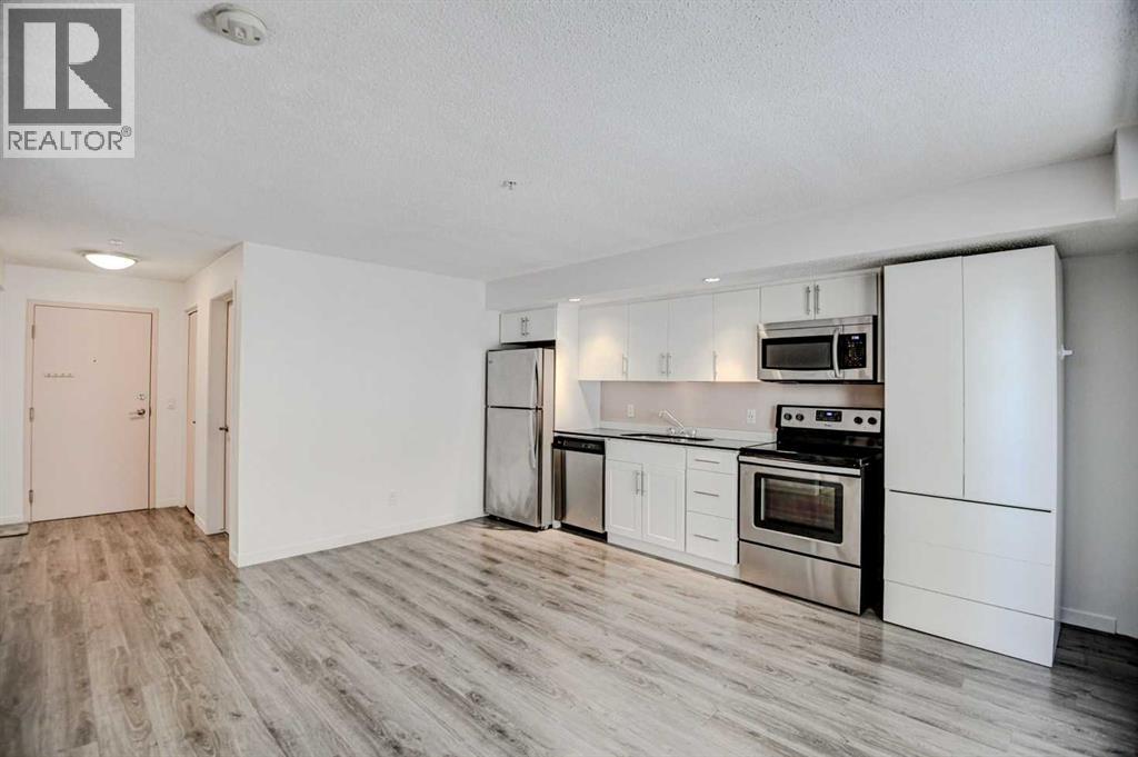 Welcome to this stylish 1 bedroom plus den condo in the highly desirable Sunalta community in SW Calgary, located in the modern Sunalta 1920 building completed in 2017. This quiet location offers the perfect balance of urban convenience and residential charm, just steps to downtown, excellent transit access including the CTrain, and close to shops, cafés, parks, and pathways. Sunalta is known for its tree-lined streets, strong community feel, and walkability, making it one of Calgary’s most sought-after inner-city neighbourhoods. The main floor unit features a bright open floor plan with white kitchen cabinetry, granite countertops, stainless steel appliances, and durable laminate flooring. The spacious primary bedroom includes a walk-through closet leading to a cheater ensuite complete with a soaker tub. The versatile den is ideal for a home office or additional storage. Enjoy in-suite laundry and storage, along with a large (14 ft x 10 ft) private and secure patio perfect for relaxing or entertaining. The well-managed, pet-friendly building offers an elevator, heated underground parking, and low condo fees, making this an excellent opportunity for first-time buyers, investors, or those looking to downsize. (id:63190)