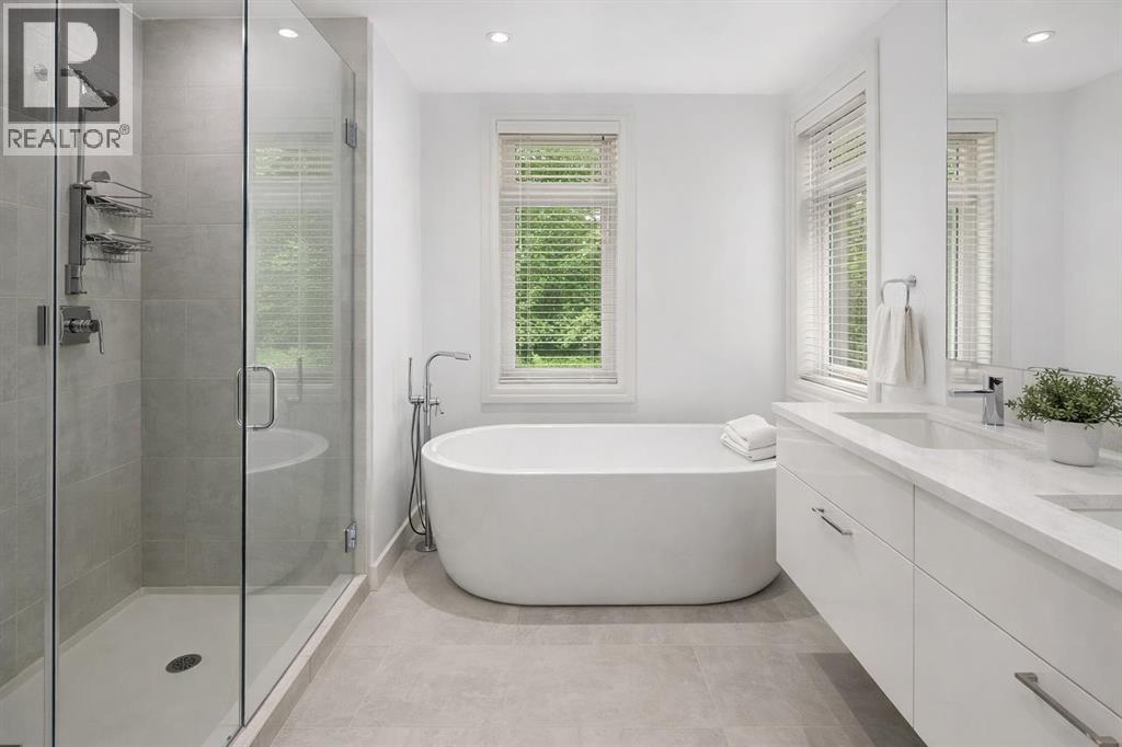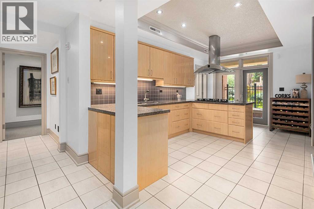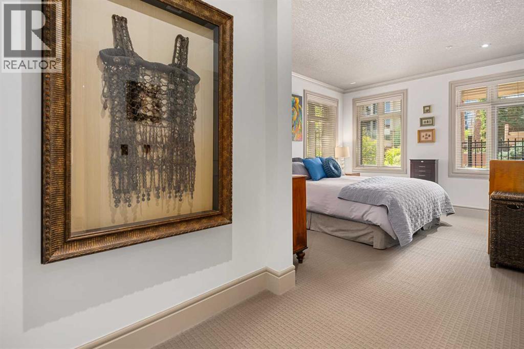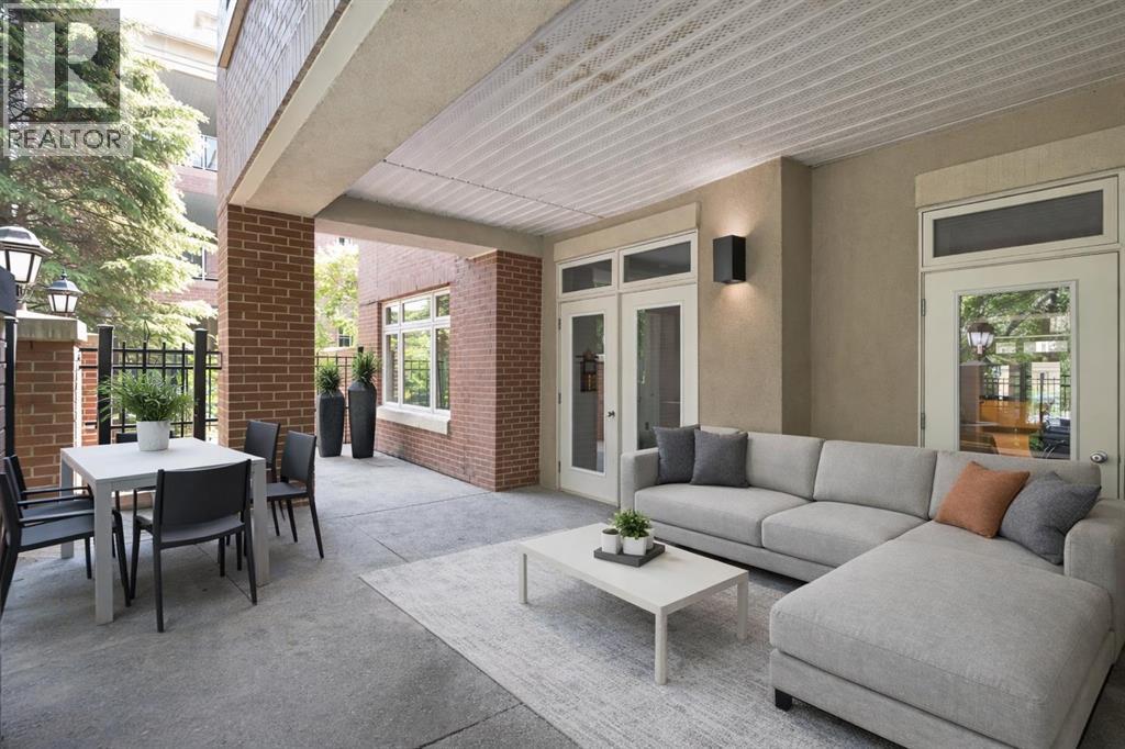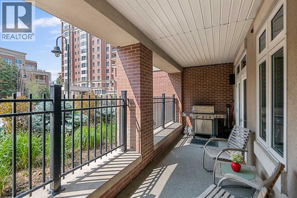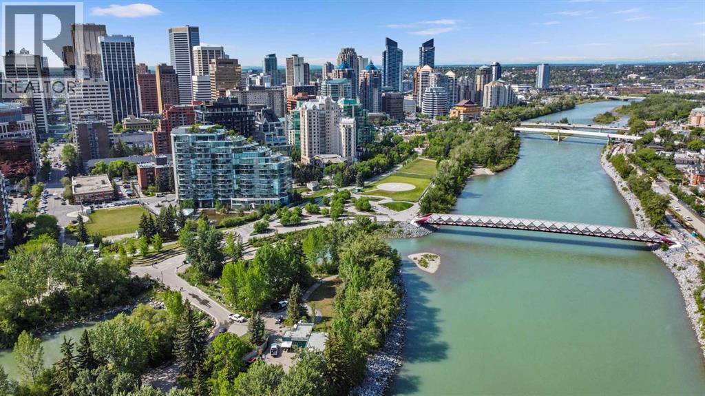 True Boutique Riverfront living in the heart of downtown. The Princeton offers luxury, space, and Location! This unique free standing complex shares only 7 homes. Estate quality finishing on this one of kind main level townhome. A unique unit with direct access to the Bow River and Prince's Island park right from your patio. No elevators or stairs. Boasting an excellent floor plan with 1330 square feet of well designed living space. Granite counters, stainless steel appliances, tile flooring and spacious principal rooms flooded with light and incredible views of the park. The Gourmet kitchen opens up to the large living area, featuring a fireplace, and French doors to a huge private terrace overlooking the river. The master suite is spacious and comfortable. Surrounded by windows, a walk in close, and of course a large ensuite with soaker tub, separate glass / tile shower and dual sink vanities. The second bedroom has lovely park views as it spreads the full north east corner of the suite. The second full bath is just off the hall with easy access for the bedroom and guest powder room. This unit boasts two large patios. The second one is located on the NE corner of the building, offering lots of light and privacy, yet surrounded by mature foliage. This is the perfect spot for the bbq, and extends the space off the kitchen for an al- fresco morning coffee patio. This is one of the most unique units in the Boutique 670 building at the Princeton. Offering you upscale living in a prime location, with townhome access. Just imagine your backyard as a private park overlooking the river. A wonderful four seasons access to a fully treed, lush lawn space, perfect for family bbq's and warm days playing with your dog. This unit features two side by side parking stalls and one large titled storage lockers. A great value, unique and truly iconic, immaculate and ready to move-in for the summer. Some pictures and furniture options for illustration purposes. (id:63190)