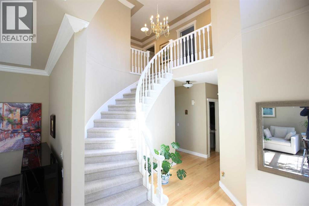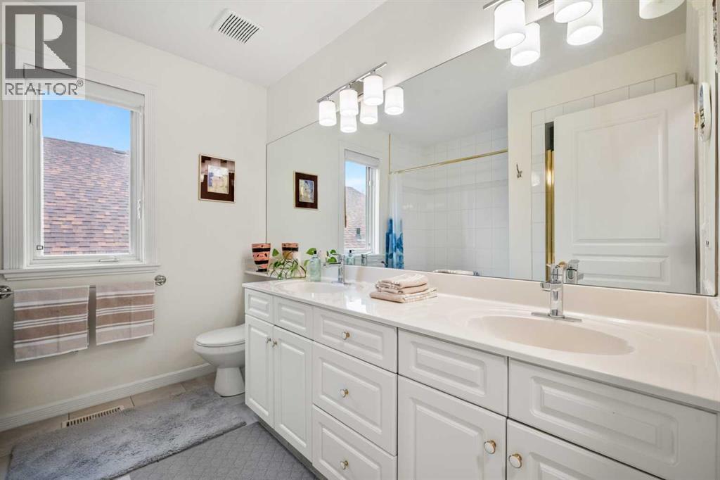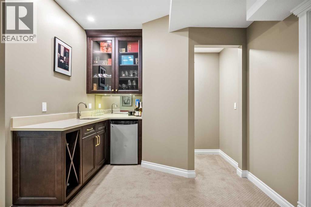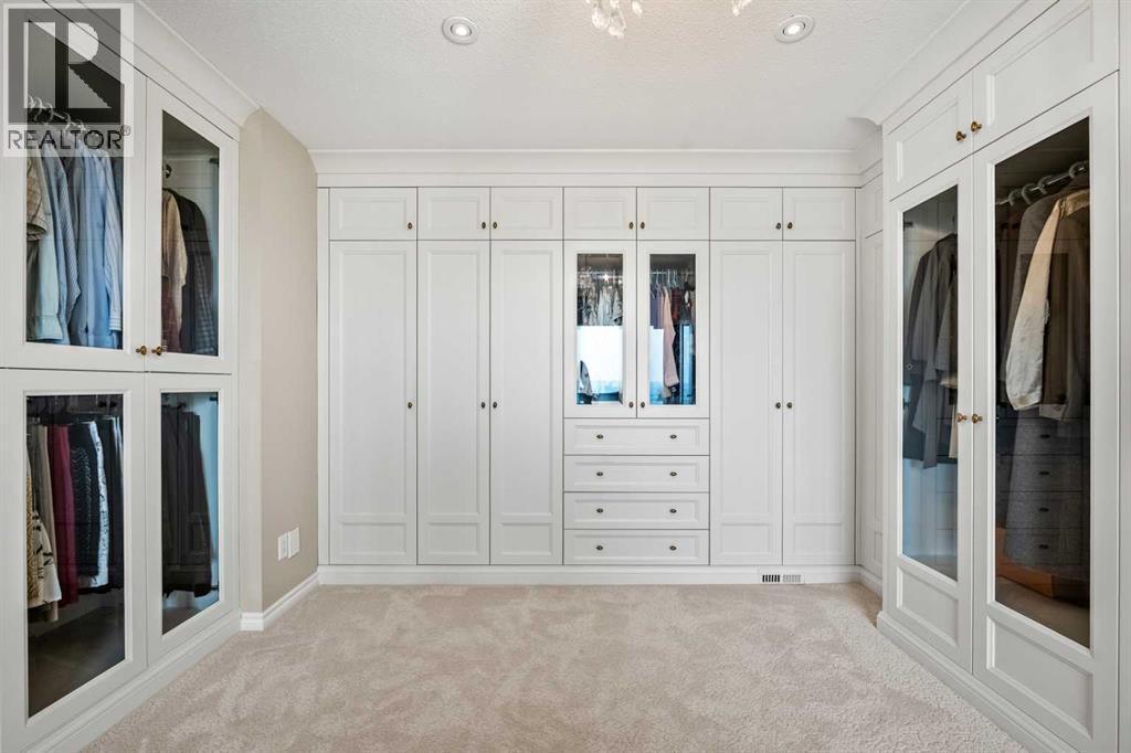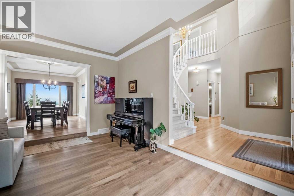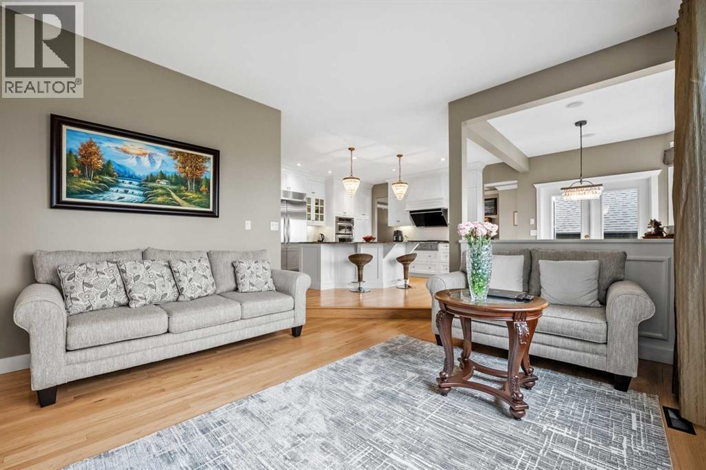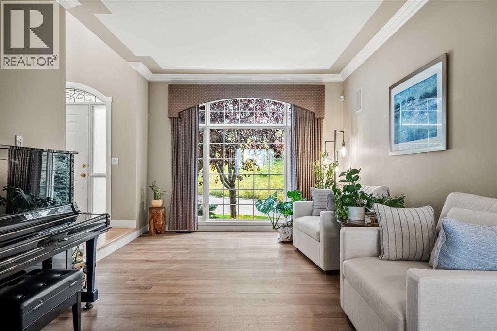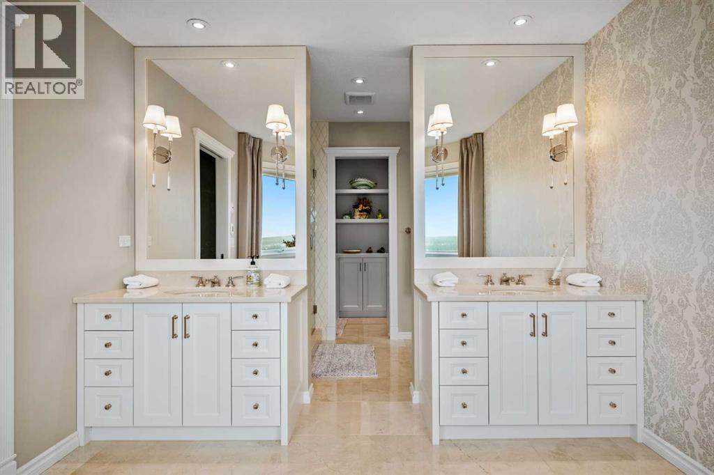 Welcome to 136 Patrick View SW—an executive walkout residence offering over 4,400 sq ft of refined living space, perched aboveaprotected nature reserve in one of Patterson’s most prestigious enclaves. With 3,119 sq ft across the main and upper levels, plus an additional1,300+sq ft in the fully developed walkout basement, this home delivers luxury, functionality, and lasting value. From the moment you enter, agrandstaircase and sunlit foyer set the tone for timeless sophistication. The main floor flows seamlessly through formal and casual living spaces, withnewlyrefinished hardwood, luxury vinyl plank, and designer lighting. The professionally renovated kitchen features granite counters, a gas cooktop,and abuilt-in appliance wall with microwave above and oven below—anchored by a crystal-lit island and breakfast nook that opens to a topless glassraildeck framing panoramic river valley views. Upstairs, the primary suite is a sanctuary with heated marble floors, a freestanding soaker tub beneathachandelier, and a walk-in closet with custom cabinetry and brass accents. The ensuite also includes a frameless glass shower with rainfallandhandheld heads, and dual vanities with elegant lighting. Three additional bedrooms and a 5-piece bath offer comfort and flexibility for familyorguests. A dedicated home office, a serene wellness room, and an elegant upper hallway with tray ceiling and chandelier add both function andflair.The walkout level is designed for leisure and entertaining, featuring a spacious rec room with fireplace, red-felt pool table, built-in bar withglasscabinetry and mini fridge, media lounge, and a cozy dining nook with bay windows. Additional guest bedrooms and a full bath complete thelowerlevel, while large windows flood the space with natural light. Outside, enjoy a professionally landscaped yard with mature trees, a recessed firepitarea with stone surfacing, a private dog run, and a covered patio beneath the elevated deck. The property backs onto a natur e reserve,offeringunobstructed views and exceptional privacy. Aerial perspective reveals the home’s prime location—just minutes from top schools, boutiqueshopping,and downtown Calgary, yet surrounded by greenery and tranquility. Over $35,000 in recent upgrades—including new A/C, hot water tank(2025),washer/dryer, range hood, window treatments, garage painting, and refreshed landscaping—complement earlier renovations to the kitchen,ensuite,and deck. Every detail reflects pride of ownership and professional care. This is elevated living—crafted for those who expect more. (id:63190)