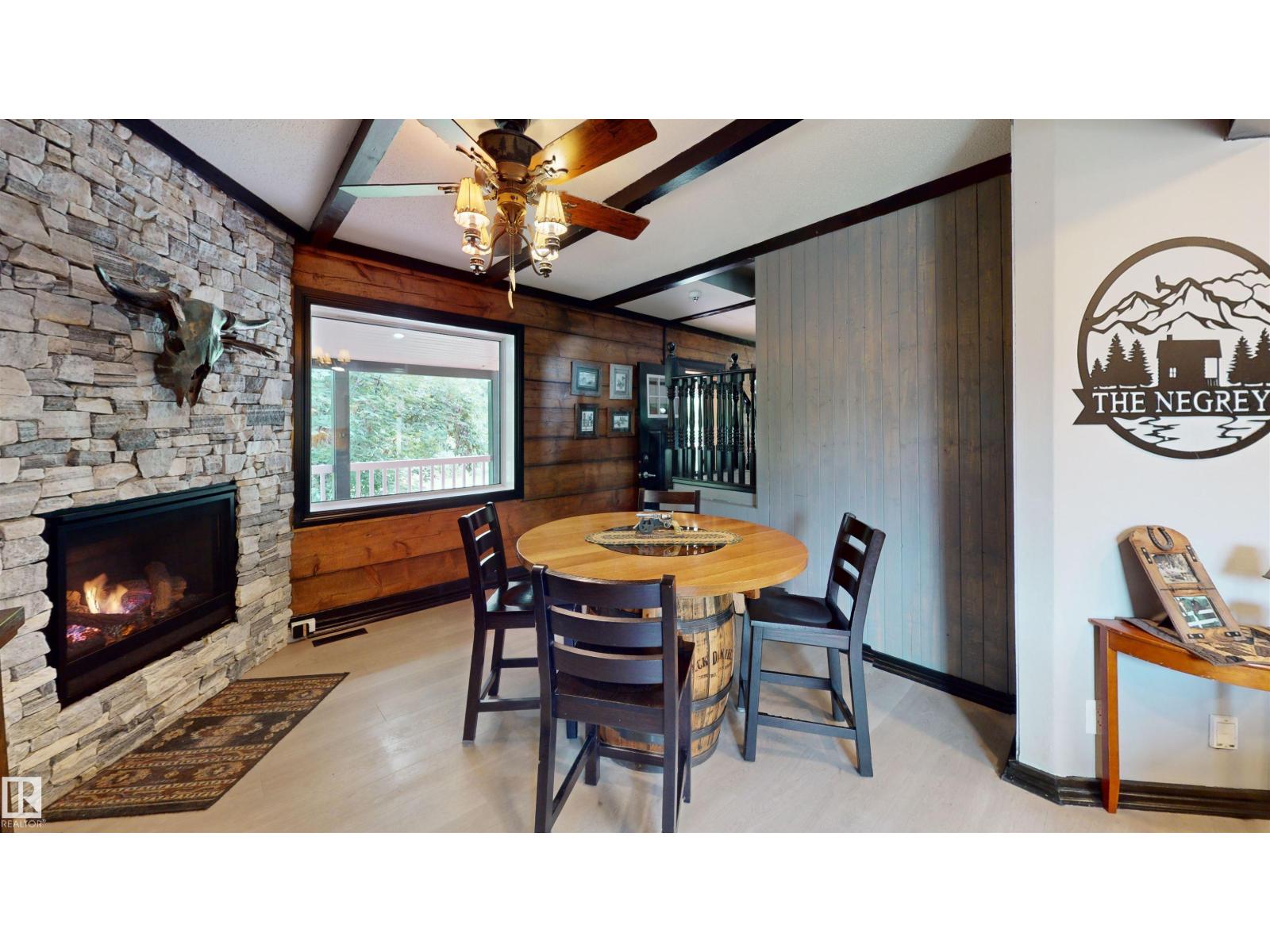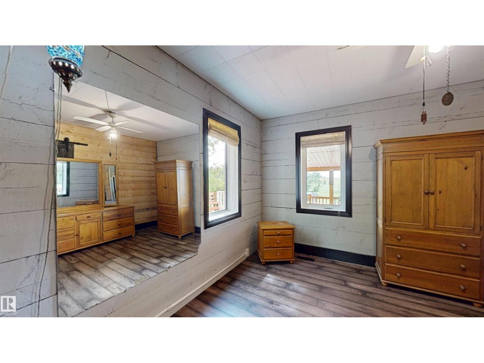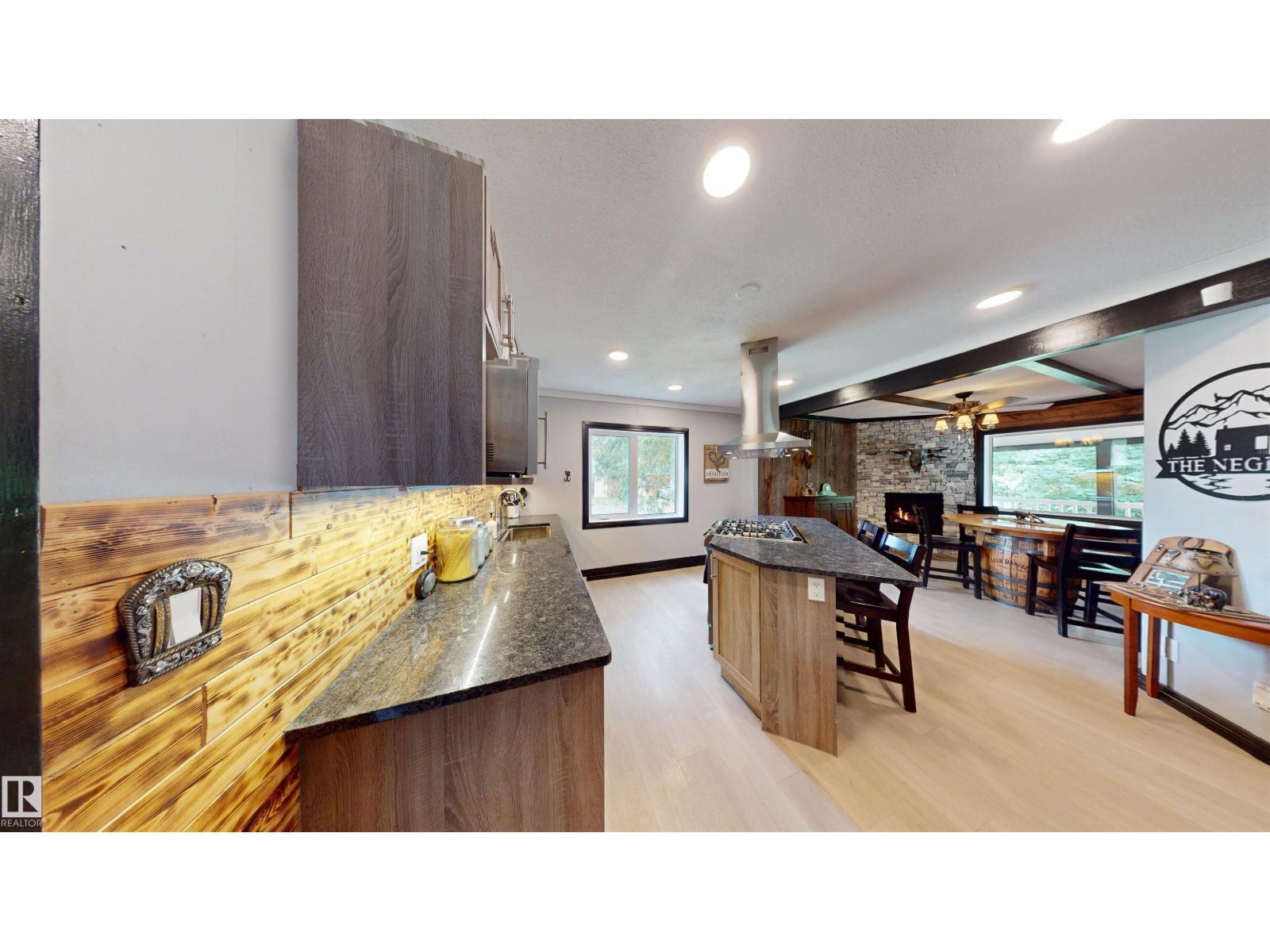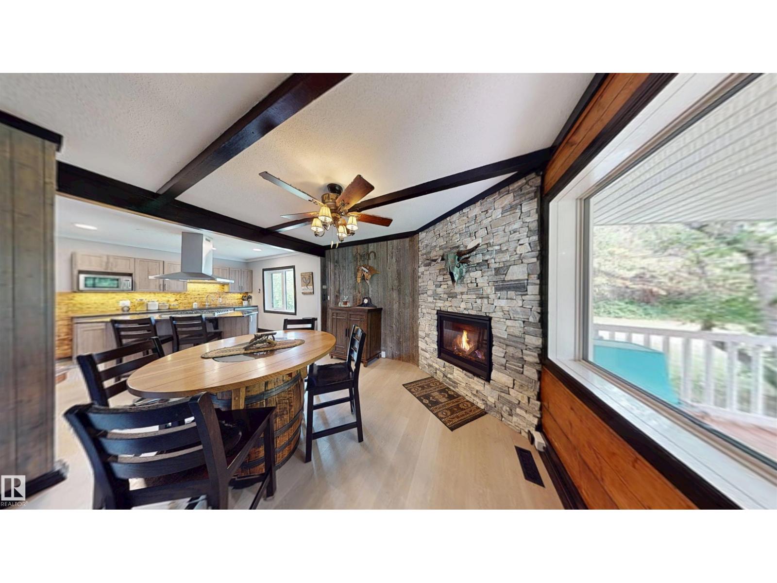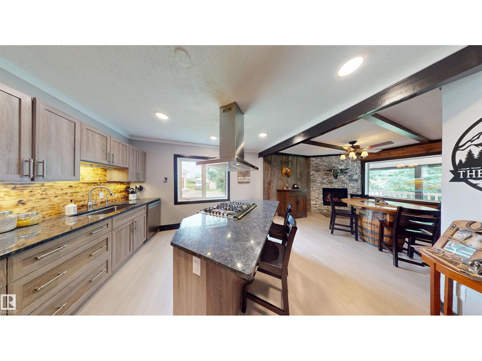 A perfect balance of rural serenity and modern acreage living agricultural zoned, out of subdivision, featuring a heritage square-cut log home. A recent $150K renovation: triple-pane windows, commercial grade LVP flooring, high efficiency furnace with humidifier, water heater, water treatment system, & reverse osmosis system. The Nordic marble natural gas fireplace anchors the open dining and kitchen area, a culinary oasis with upscale appliances, granite countertops on soft-close kitchen cabinets, custom backsplash, spacious island with eating bar. Main floor offers a spacious primary bedroom with a private 4 pc ensuite. Upstairs are 3 bedrooms and 3 pc bath. Step outside onto 1,100 sq ft of covered and open, wrap around deck, for entertaining. Store your cars and toys in the 936 sq/ft 3 Bay heated shop with mezzanine, custom bay doors with automatic openers, engineered concrete pad with durable protective coating and floor drain. Property includes a 2nd residence (ready for rebuild) & a double garage. (id:63190)