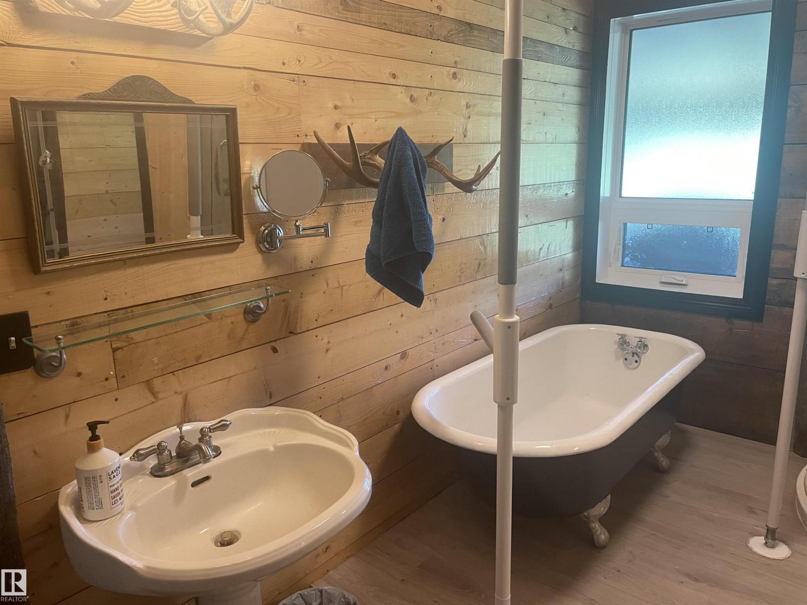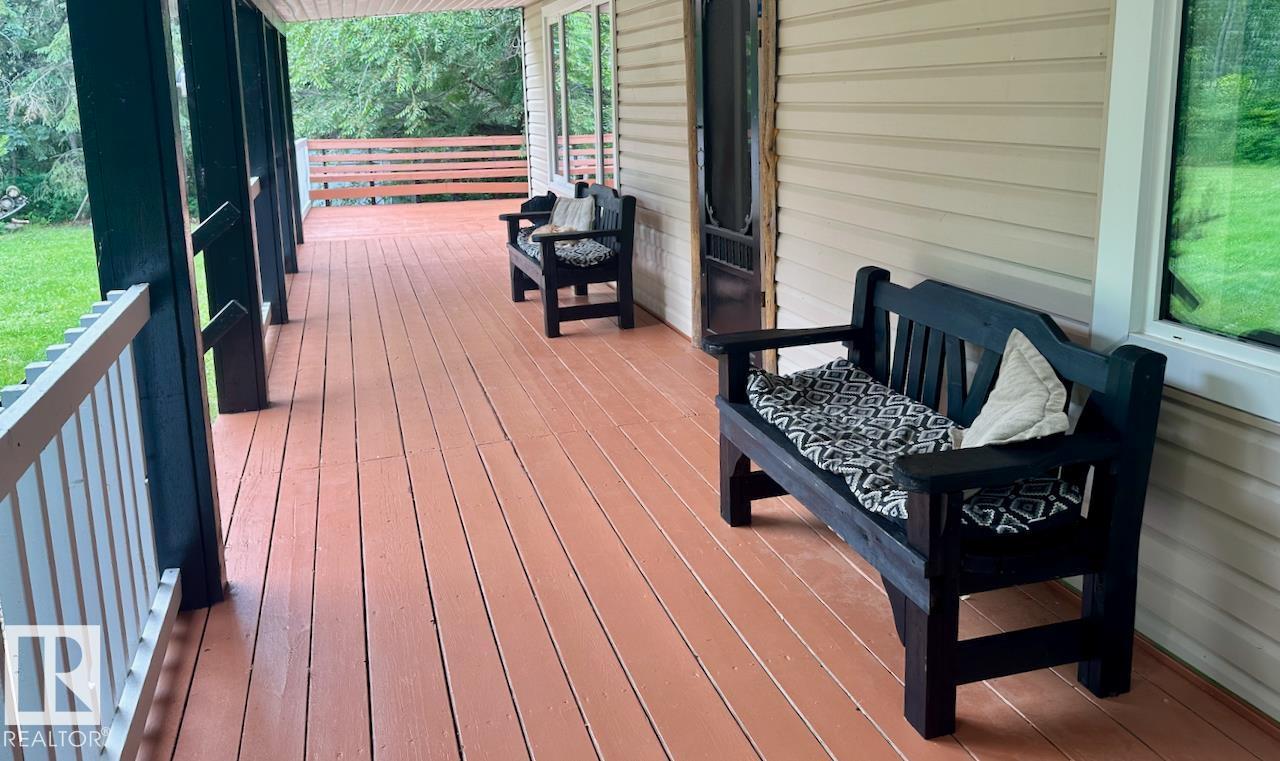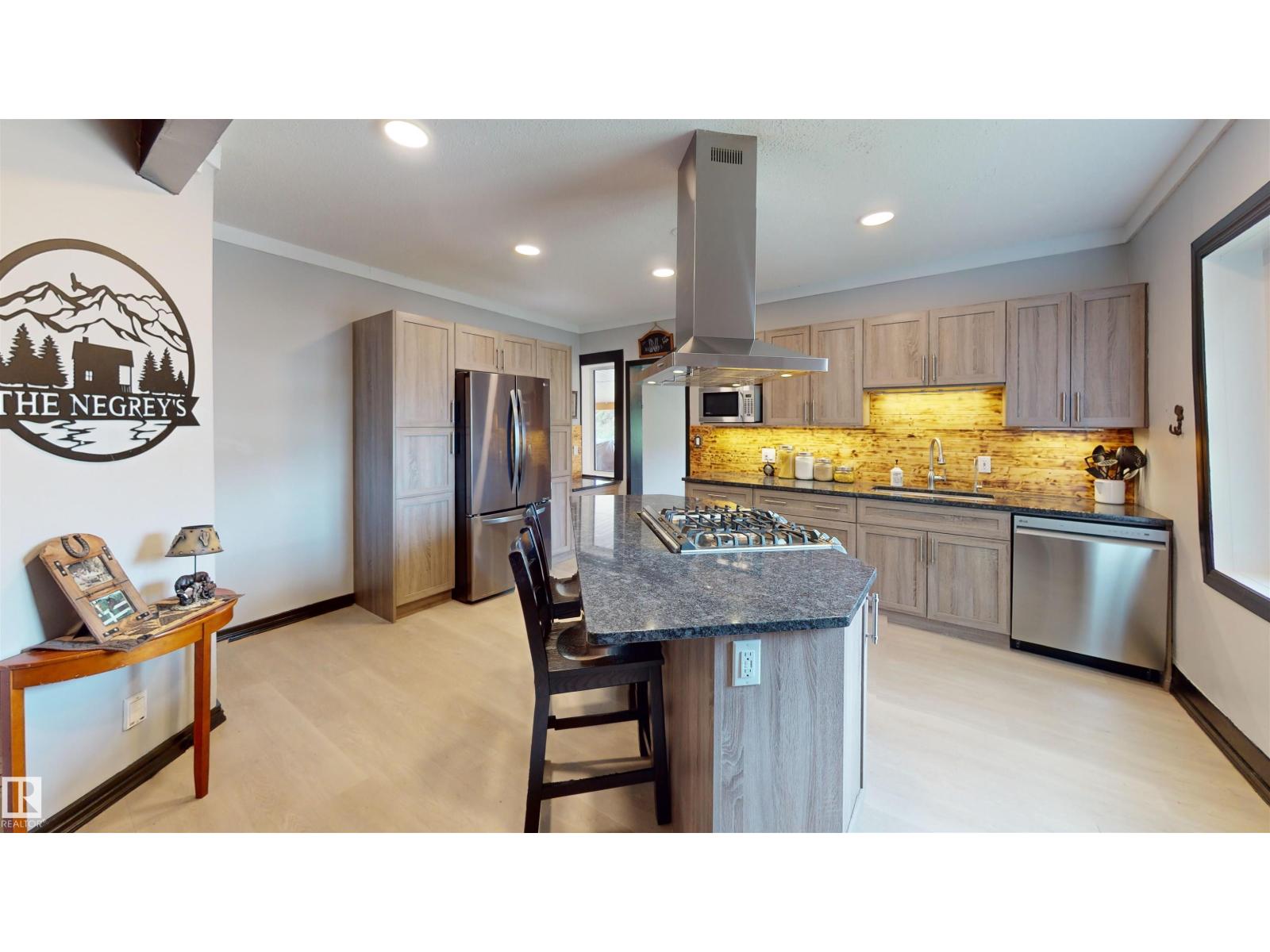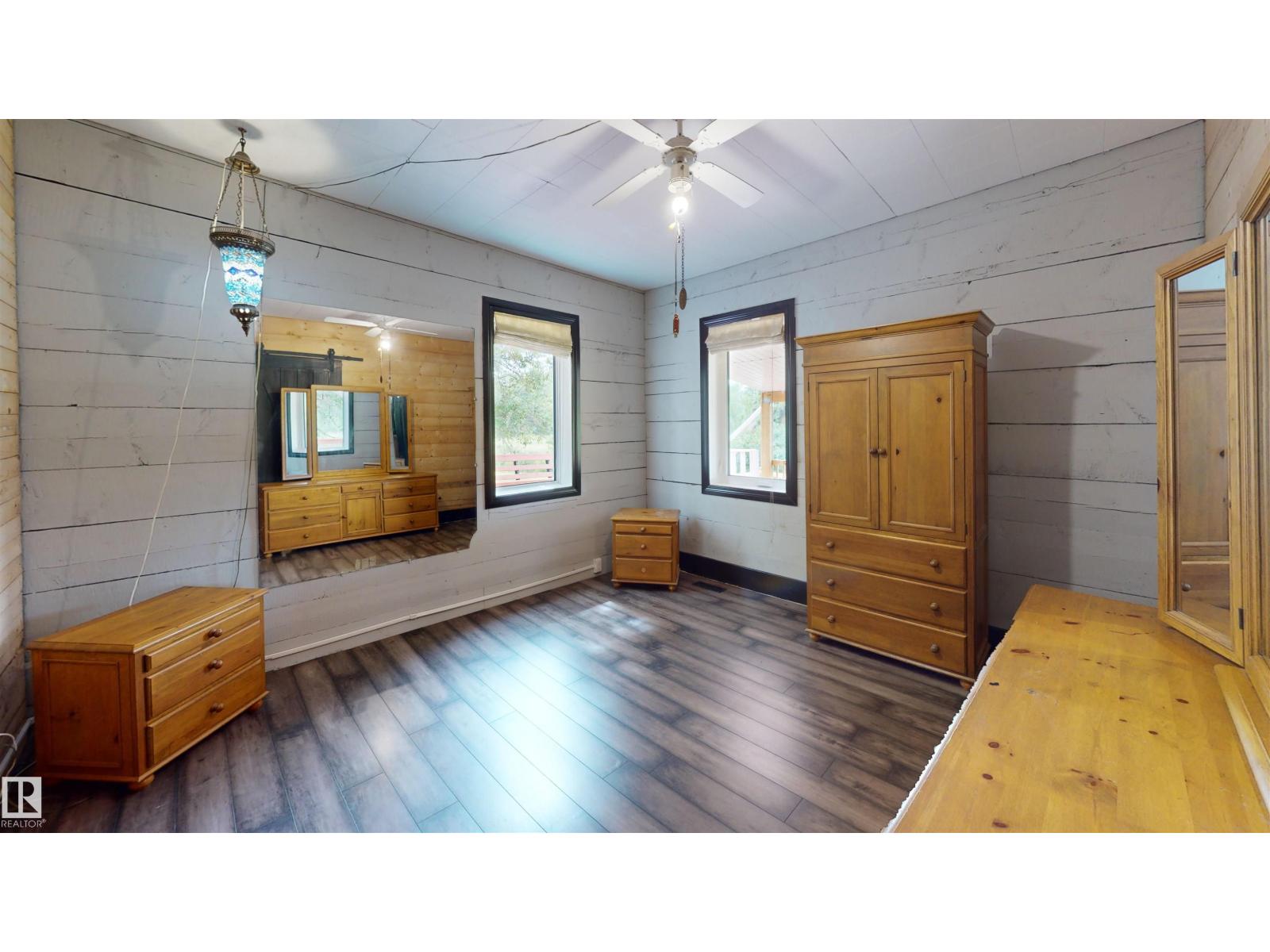 A perfect balance of rural serenity and modern acreage living agricultural zoned, out of subdivision, featuring a heritage square-cut log home. A recent $150K renovation: triple-pane windows, commercial grade LVP flooring, high efficiency furnace with humidifier, water heater, water treatment system, & reverse osmosis system. The Nordic marble natural gas fireplace anchors the open dining and kitchen area, a culinary oasis with upscale appliances, granite countertops on soft-close kitchen cabinets, custom backsplash, spacious island with eating bar. Main floor offers a spacious primary bedroom with a private 4 pc ensuite. Upstairs are 3 bedrooms and 3 pc bath. Step outside onto 1,100 sq ft of covered and open, wrap around deck, for entertaining. Store your cars and toys in the 936 sq/ft 3 Bay heated shop with mezzanine, custom bay doors with automatic openers, engineered concrete pad with durable protective coating and floor drain. Property includes a 2nd residence (ready for rebuild) & a double garage. (id:63190)