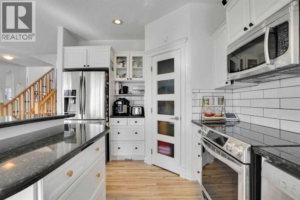 OPen House, this coming Saturday, April 11, from 10:00 am to 12:30 pm. Welcome to this beautifully updated two-storey home with a rare triple attached garage in the sought-after community of Strathcona Park. Recent upgrades include refinished hardwood floors, fresh modern paint, newly painted kitchen cabinetry, central air conditioning, designer wallpaper accents, and a redesigned living room feature wall with custom built-ins and new Fireplace stone work that creates a stylish focal point. The bright open-concept main floor offers an inviting living room with a fireplace, a functional kitchen with a large island, ample cabinetry, a pantry, and modern appliances, plus a versatile dining area that can also serve as a home office. A laundry room and a 2-piece bathroom complete this level. Upstairs features a spacious bonus room with another fireplace, three bedrooms including a generous primary suite with an ensuite, and an additional full bathroom. Hardwood flooring throughout the top two floors adds warmth and elegance. The fully developed basement includes two additional bedrooms connected by an ensuite, a flex space ideal for a gym or office, and plenty of storage. Enjoy the landscaped, fenced backyard with patio, perfect for summer gatherings. The triple-car garage with drive-through access to the backyard is a rare and valuable feature. Conveniently located near excellent schools, shopping, parks, and walking paths, this move-in-ready home offers space, comfort, and thoughtful updates in a prime location (id:63190)
