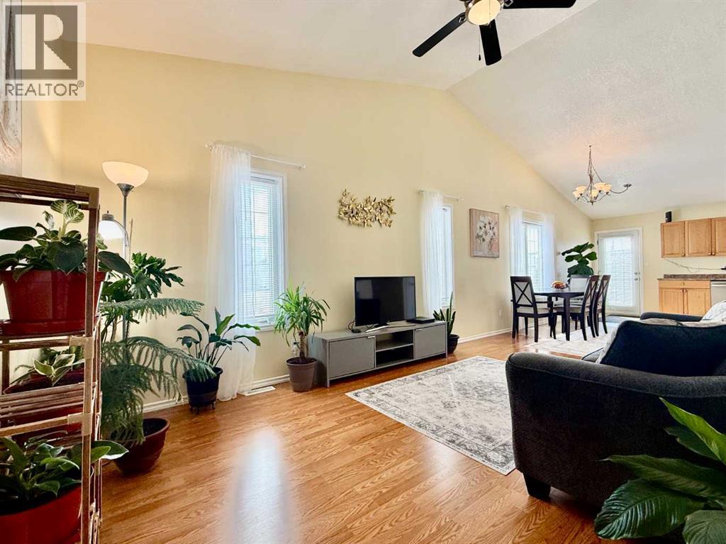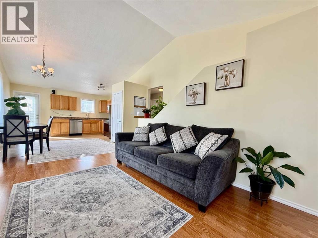 Well-maintained 3 bedroom, 2 bathroom home offering a bright, open-concept main living space with vaulted ceilings and an inviting sense of flow. The kitchen features newer stainless steel appliances, ample cabinetry, and connects seamlessly to the dining and living areas, making it ideal for both everyday living and entertaining. The kitchen also includes a pantry with existing laundry hookups, offering the option for main floor laundry. The main level includes 2 bedrooms and a full 4-piece bathroom. The front entry has been thoughtfully reconfigured to create a functional foyer, complete with separate access to the upper level, lower level, and a single attached heated garage.The fully developed basement adds valuable living space with a large family room, one bedroom, a 3-piece bathroom, and a convenient wet bar area. This level offers excellent flexibility for guests, extended family, or additional living space. Situated on a corner lot, the property is beautifully landscaped with a fully fenced backyard, established shrubs, and a well-maintained garden, creating a private and inviting outdoor space. Recent updates include a new furnace (2023), garage heater (2023), extensive interior updates and fresh paint throughout (2024), updated kitchen appliances and fixtures (2024), bathroom vanity and cabinetry (2024), and new washer and dryer (2025).A clean, move-in ready home that has been well cared for inside and out. (id:63190)