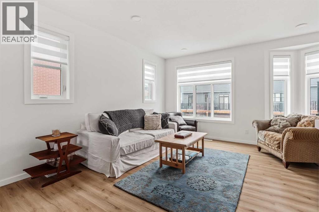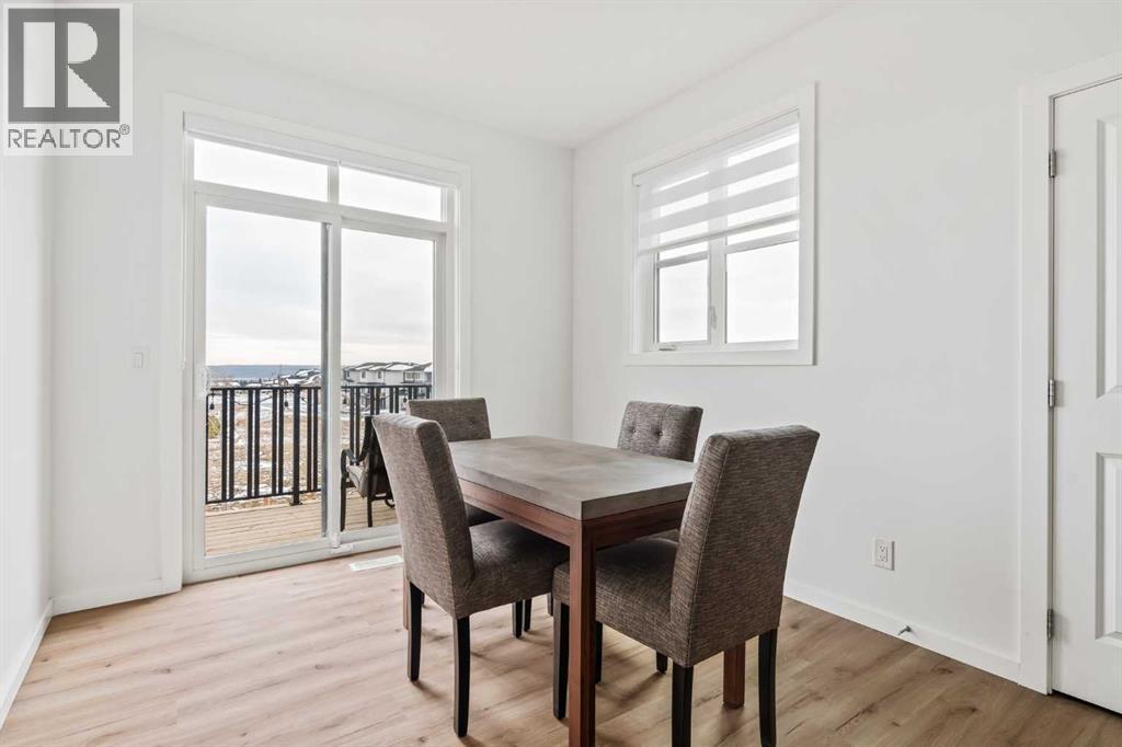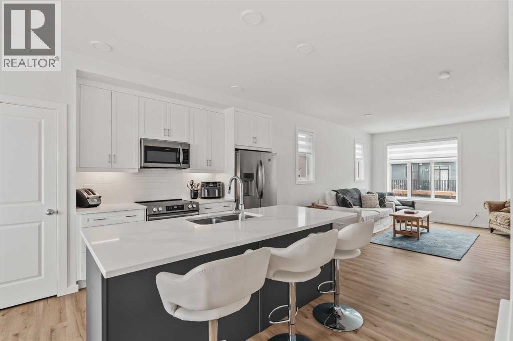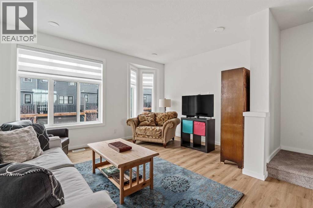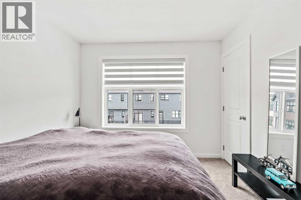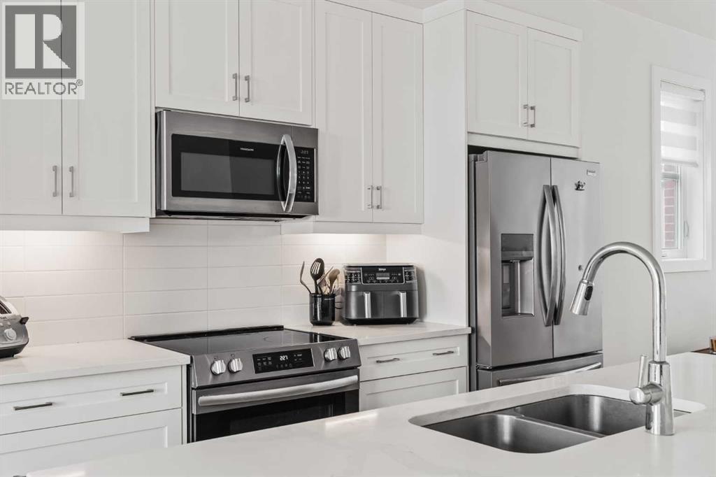 Welcome to this stunning end-unit, 3 Bed, 2.5 Bath townhome in Springbank Hill, where 1,460 sqft. of modern design meets everyday convenience. Imagine starting your morning with coffee on your sun-drenched south-facing balcony, overlooking a peaceful green space and stormwater pond. The open-concept main floor is perfect for hosting, with a spacious living and dining area separated by a sleek, center island with upgraded quartz countertops. The kitchen boasts upgraded stainless steel appliances (built-in microwave hood fan, French door fridge with water & ice dispenser) under-cabinet lighting, and stylish chrome finishes found throughout the home. Upstairs, the primary suite is complete with a walk-in closet and an upgraded 3-piece ensuite with oversized shower and grey stone countertop. Two additional bedrooms provide flexibility—use one as a cozy guest room and the other as a home office or nursery. A 4-piece bathroom and laundry complete this level. The double tandem garage offers space for two vehicles or a home gym/workshop, equipped with wiring for 220V/30A outlet for EV charging or power tools. Plus, an additional driveway parking spot means there’s room for a third vehicle. Built in 2023 and well maintained, this home also features LVP flooring, A/C rough-in, and quick access to walking trails, nature, and top amenities such as Aspen Landing, Westhills Shopping Centre, Westside Recreation Centre, and the 69th Street LRT Station. Plus, it’s close to Calgary’s top schools, including Griffith Woods School, Guardian Angel School, Ernest Manning High School, Rundle College, and Webber Academy. Picture yourself living here—contact me or your preferred REALTOR® to book your private showing today! NOTE: TOTAL SQFT EXCLUDES MECHANICAL/UTILITY ROOM (51 Square Feet). (id:63190)