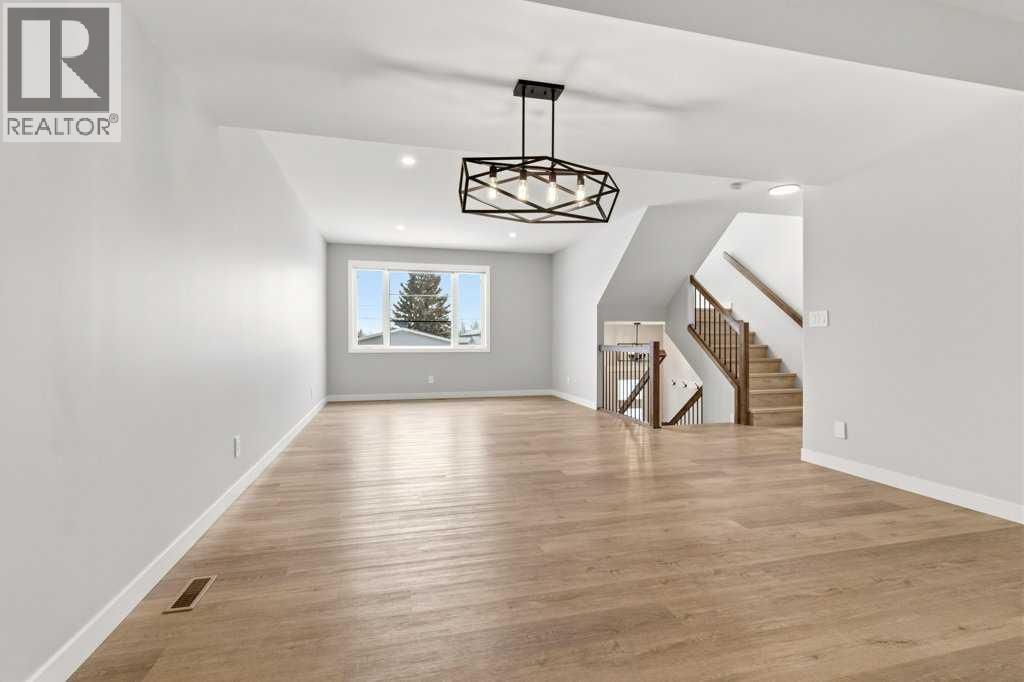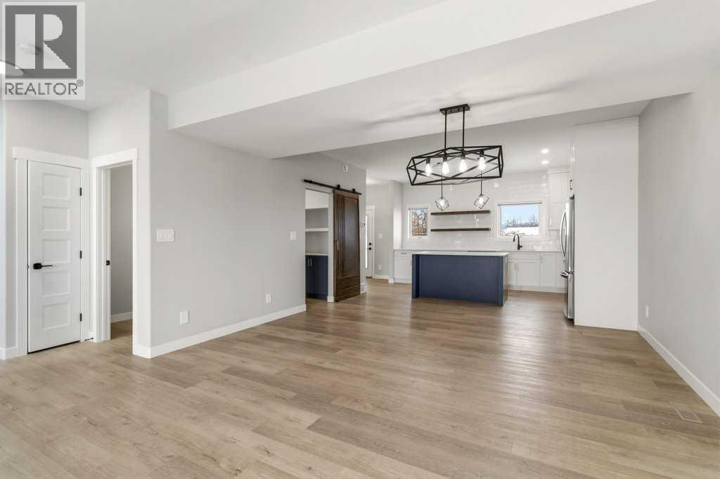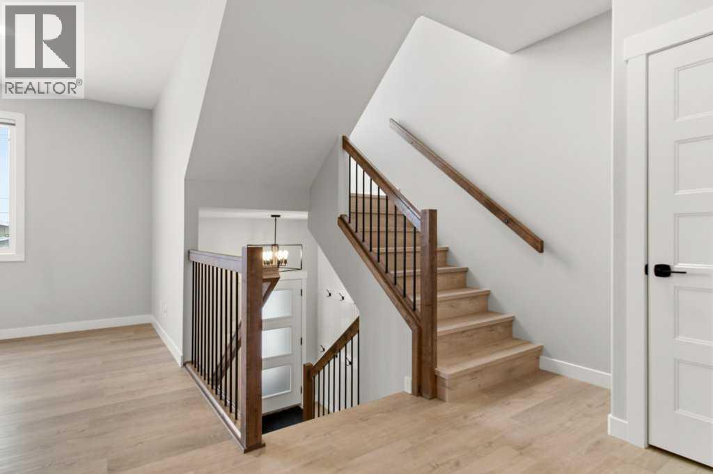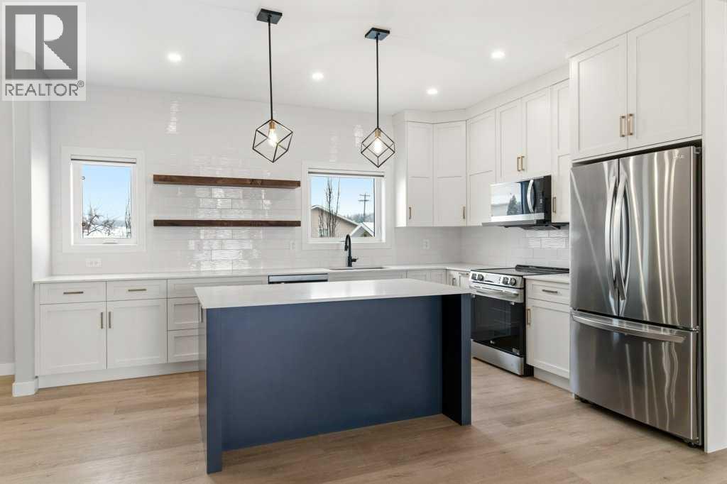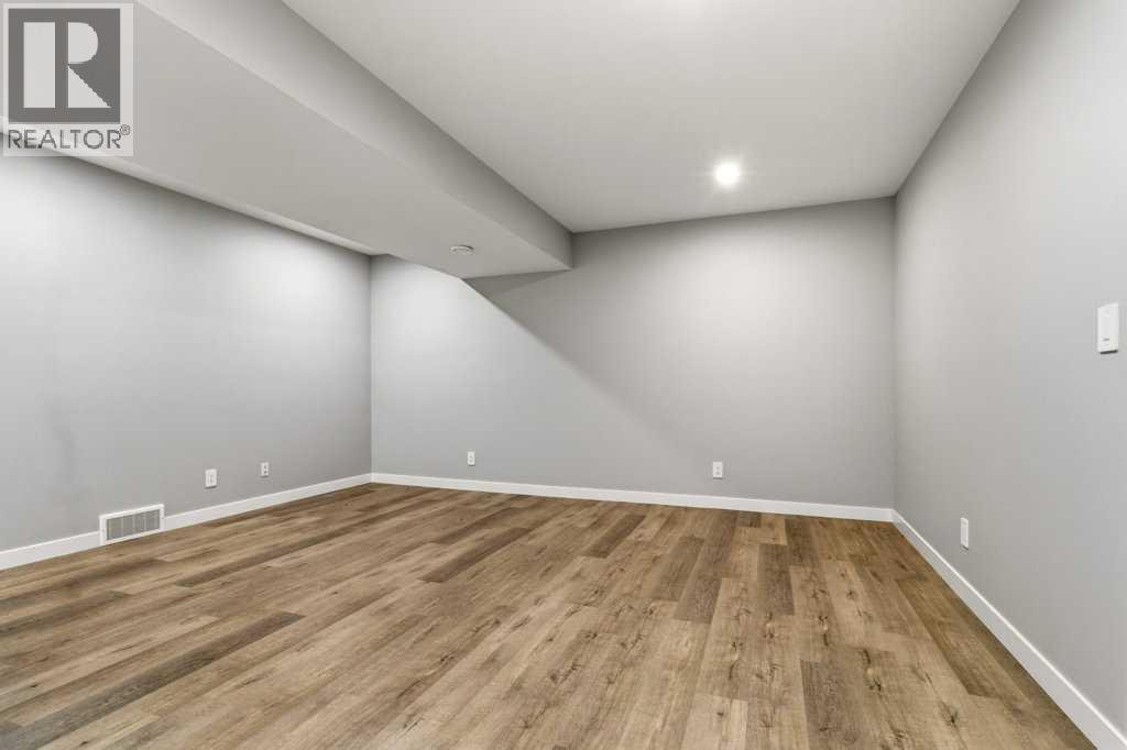 NO CONDO FEES. Located in the vibrant community of Sylvan Lake, this centrally located 2023-built 1865 square foot townhouse offers the perfect blend of modern style, space, and convenience. This high-end home features 5 bedrooms in total—3 on the second level, including a spacious primary bedroom with a luxury 4-piece ensuite, plus an additional 4-piece bathroom. The second level also includes a conveniently located laundry right alongside the bedrooms. Beautiful neutral paint tones, an abundance of large windows, and durable vinyl plank flooring create a bright, inviting atmosphere throughout the home. The open-concept main level showcases a bright white kitchen with a walk-in pantry, large island, and adjoining living room, along with a mudroom and a 2-piece bath. Off the kitchen, enjoy access to a back deck overlooking the fully fenced yard. The fully developed basement offers 2 additional bedrooms, a large family room, and another 4-piece bathroom. Just minutes from shopping, schools, the NexSource Centre, the community centre, and only three blocks from beautiful Sylvan Lake, this home delivers exceptional comfort in a great location. (id:63190)