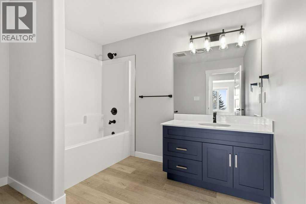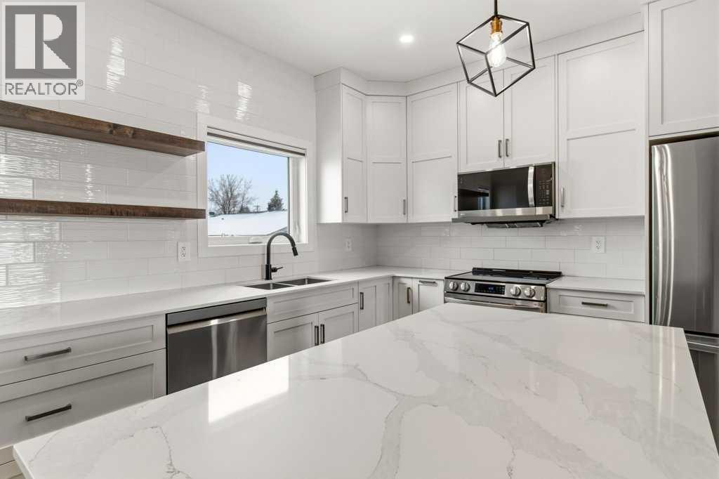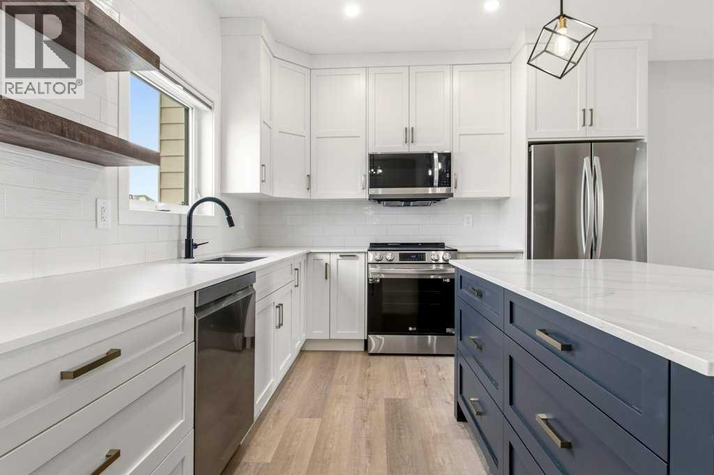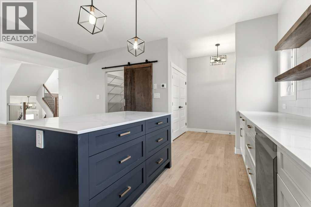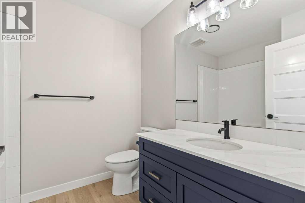 NO CONDO FEES. Located in the vibrant community of Sylvan Lake, this centrally located 2023-built 1865 square foot townhouse offers the perfect blend of modern style, space, and convenience. This high-end home features 5 bedrooms in total—3 on the second level, including a spacious primary bedroom with a luxury 4-piece ensuite, plus an additional 4-piece bathroom. The second level also includes a conveniently located laundry right alongside the bedrooms. Beautiful neutral paint tones, an abundance of large windows, and durable vinyl plank flooring create a bright, inviting atmosphere throughout the home. The open-concept main level showcases a bright white kitchen with a walk-in pantry, large island, and adjoining living room, along with a mudroom and a 2-piece bath. Off the kitchen, enjoy access to a back deck overlooking the fully fenced yard. The fully developed basement offers 2 additional bedrooms, a large family room, and another 4-piece bathroom. Just minutes from shopping, schools, the NexSource Centre, the community centre, and only three blocks from beautiful Sylvan Lake, this home delivers exceptional comfort in a great location. (id:63190)