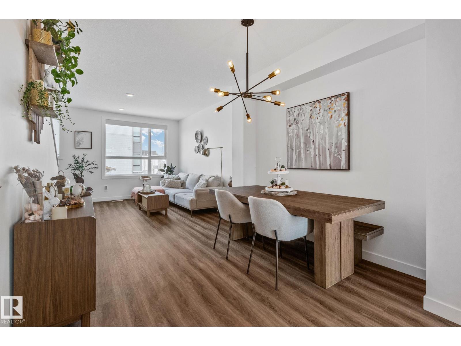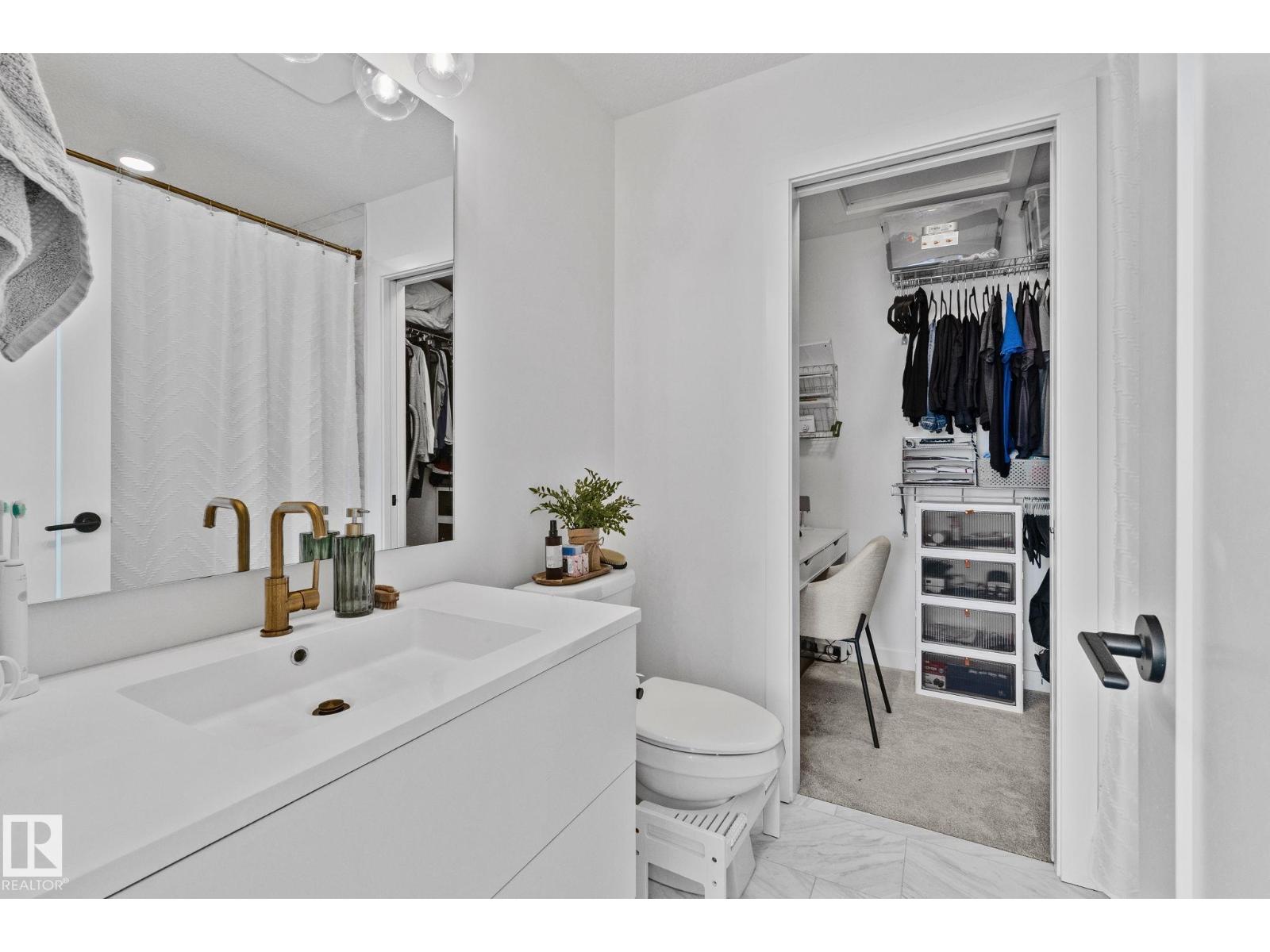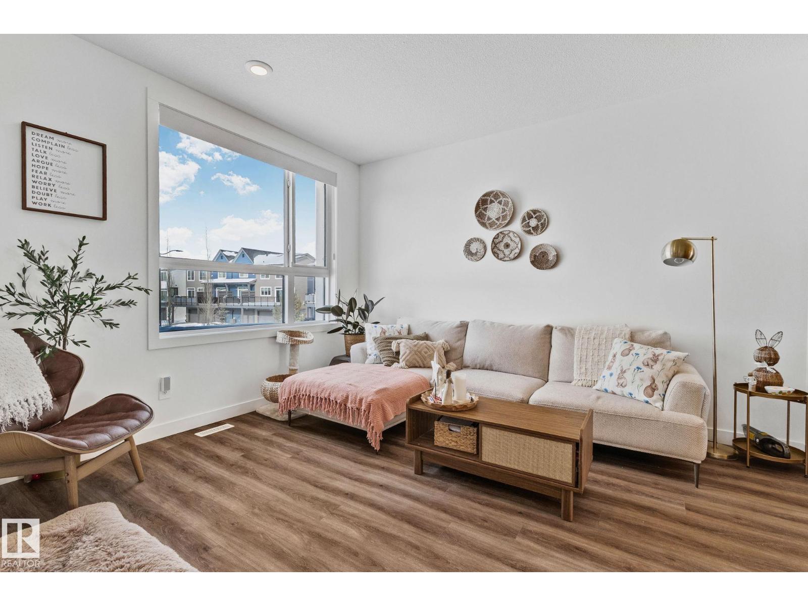 This beautifully upgraded 3-level townhouse is ideally positioned second from the end unit and tucked away at the back of Cobalt Beach, offering extra privacy and a serene setting as it backs onto green space. The open-concept main floor features a bright kitchen, dining area, and living room centered around a custom-mantel fireplace with built-in shelving. A convenient 2-piece bathroom completes the level. Upstairs, you'll find two spacious primary ensuites, each designed with floating counters, quartz surfaces, upgraded black-and-gold hardware, and tiled showers—one with a tub/shower combo. A laundry closet adds everyday convenience. The ground floor includes a separate-entrance bedroom and a full 3-piece bathroom (with a heated floor) for guests or extended family. Additional upgrades include quartz throughout, designer lighting, and air conditioning. As part of the HOA, residents enjoy access to Jubilation Beach, creating a perfect blend of comfort, style, and lifestyle amenities. (id:63190)