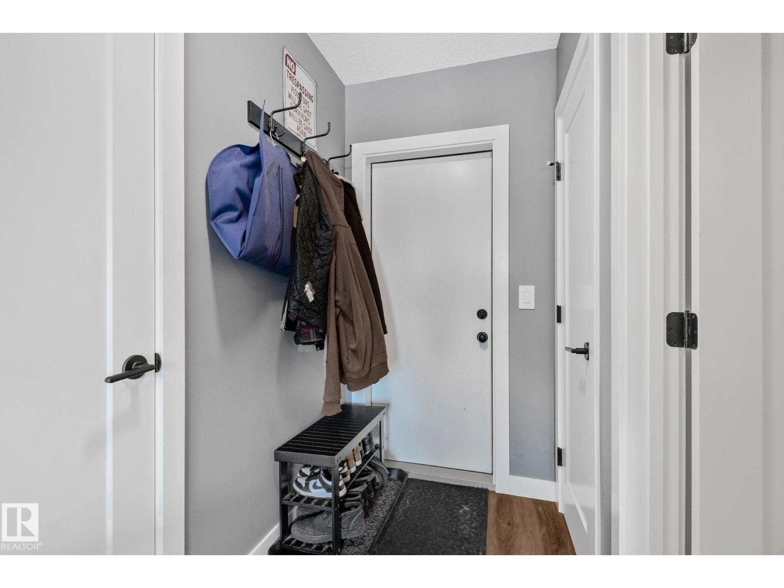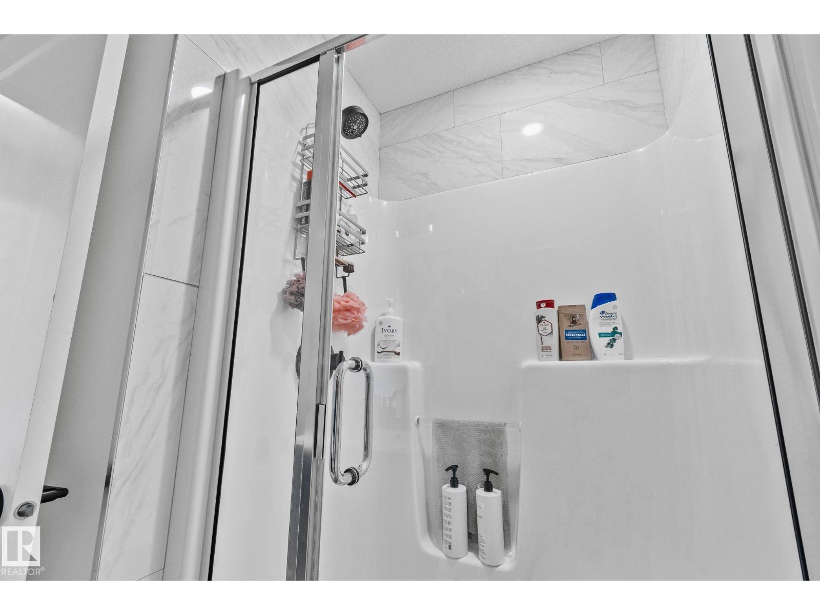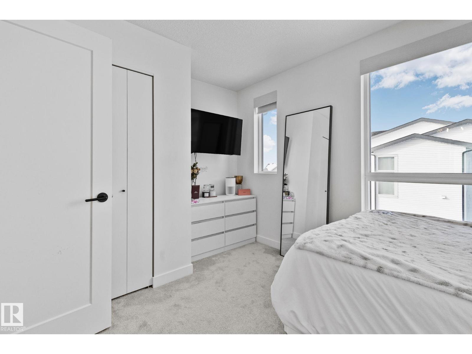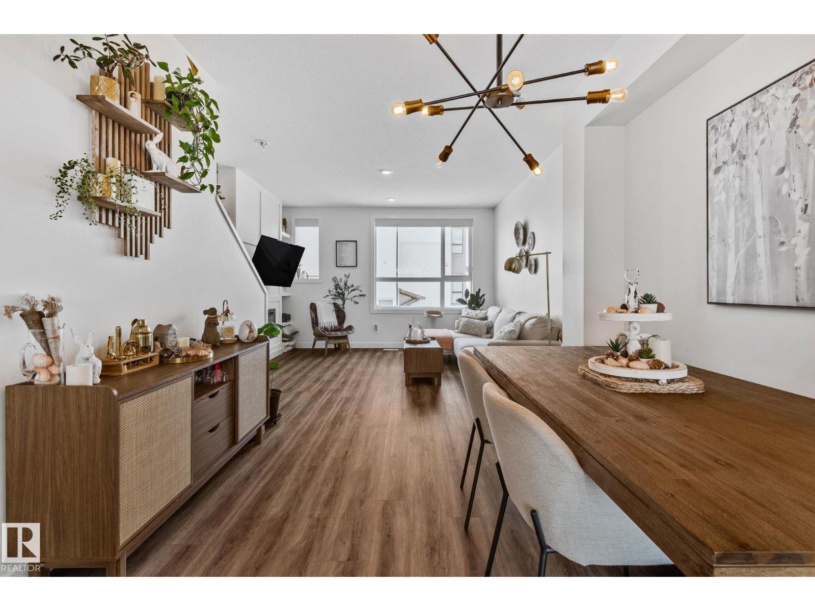 This beautifully upgraded 3-level townhouse is ideally positioned second from the end unit and tucked away at the back of Cobalt Beach, offering extra privacy and a serene setting as it backs onto green space. The open-concept main floor features a bright kitchen, dining area, and living room centered around a custom-mantel fireplace with built-in shelving. A convenient 2-piece bathroom completes the level. Upstairs, you'll find two spacious primary ensuites, each designed with floating counters, quartz surfaces, upgraded black-and-gold hardware, and tiled showers—one with a tub/shower combo. A laundry closet adds everyday convenience. The ground floor includes a separate-entrance bedroom and a full 3-piece bathroom (with a heated floor) for guests or extended family. Additional upgrades include quartz throughout, designer lighting, and air conditioning. As part of the HOA, residents enjoy access to Jubilation Beach, creating a perfect blend of comfort, style, and lifestyle amenities. (id:63190)