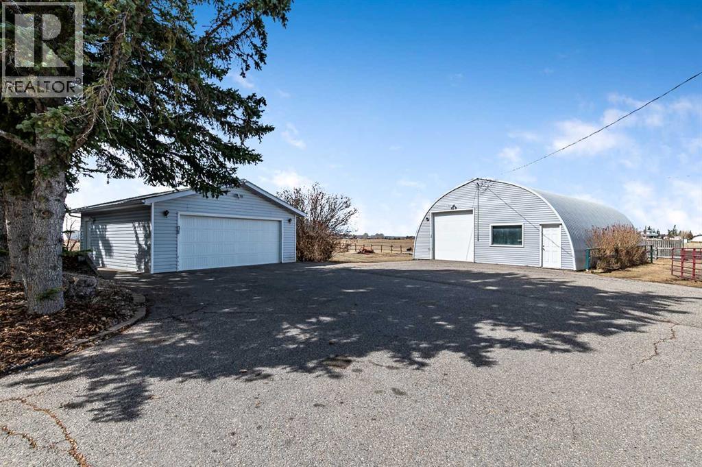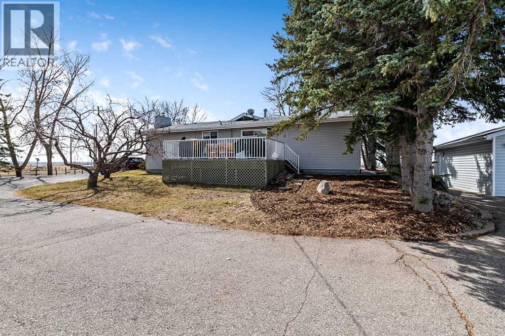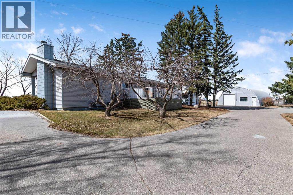 Well its " Spring" and what a family needs is this sweet acreage between Okotoks and High River just off HWY #2!! ROCKY MOUNTAIN VIEWS till no end ,Paved to your door ,SOLAR power to save you $$$ !!! This home and this amount of acreage is perfect to " Grow your own "!! beef, hay, horses, garden!! Several paddocks, waterers, shelters, cross fenced, good gates, out door arena and beautifully treed yard !! This 1432 sq ft home sits very nicely tucked under the trees for privacy with huge deck out to the East to enjoy your morning coffee !! If you feel the heat in the summer, we have A/C!!! Very nice flow to the home with sunken living and family rooms. Owner currently uses the one large room as a dining room which could be also a Family room. Fireplace in the living room and a nice little sitting area facing out the patio doors... Love it !! All new Windows and doors in late 2023, so you are good to go when you add on the SOLAR power and your cheque book will be happy !! Solar was installed in April 2024 and it is a 13.5 Kwh system and they are part of the Solar Club . Both Natural gas and electric total charges (including distribution) have been covered in full by the solar since March of 2025 and they have built up a credit . The shop is awesome for there is room for a few pieces of equipment, there is a couple of work benches, work area and then a large loft area above for storage or hay. At the back of this 32 X 48 Quonset is the barn and all access out to paddocks on the north side. Great Building !! Detached garage is insulated and ready for heat if you need. Property is very well located for any one to commute but yet live a great country life with a lot of land !! Owners have hayed approx 8.5+- acres and have been very successful with their crops. Self sufficiency is what we are looking for these days, and this one checks a few boxes for sure !!! NOT only do you have 20 acres to do what you want with close to many amenities , but you also h ave about a 5 minute walk up the road to Alderwood Community Association's recreational area!! Community use with arena,, tons of grass to run, a BBQ area, trees, trails, play centre.. Its Awesome.. everyone enjoys this park in the community and respects it. It is maintained 100% and a wonderful neighbor to have!! Join the community Pot luck once a year !! Fun stuff !! (id:63190)
