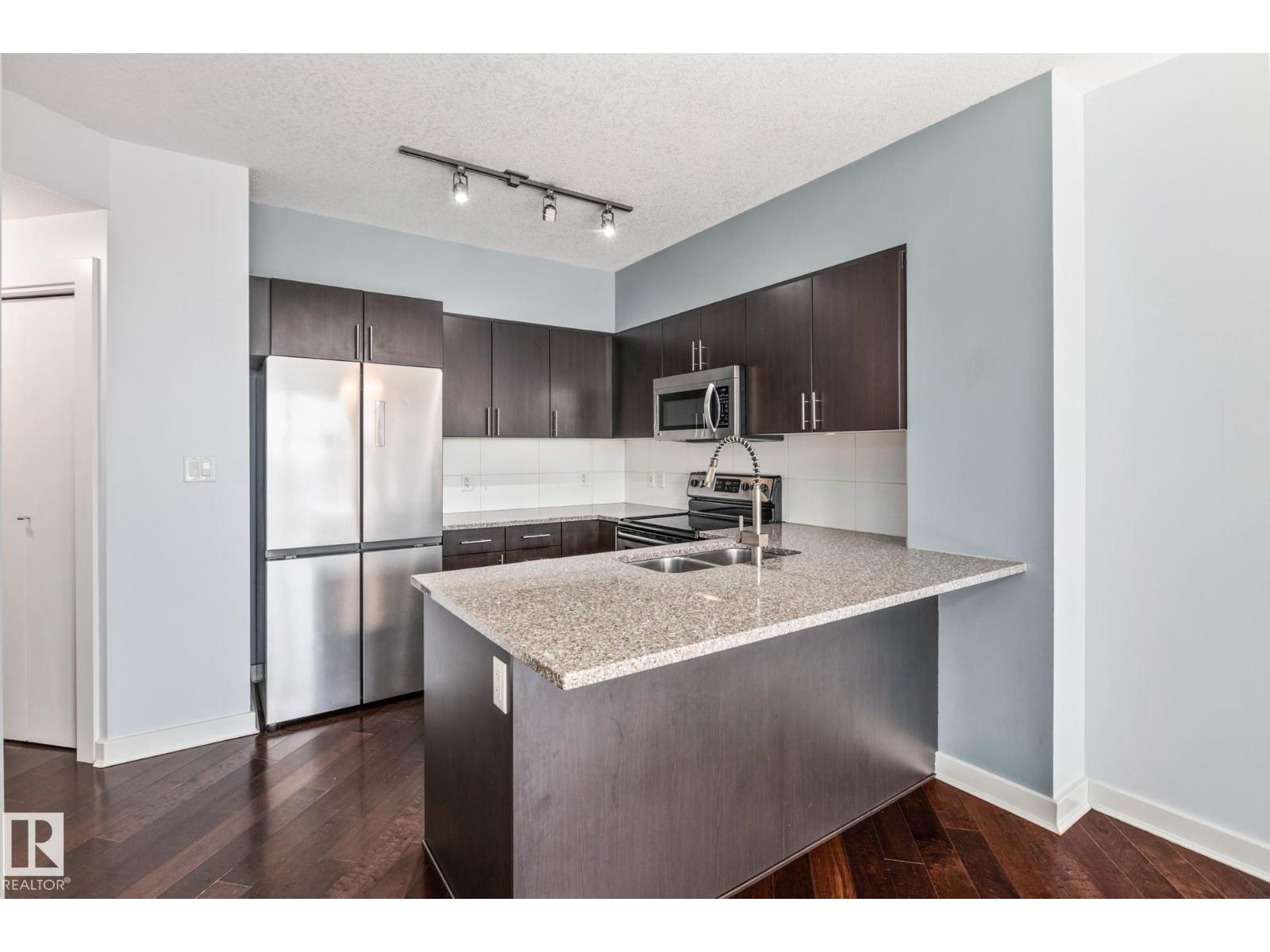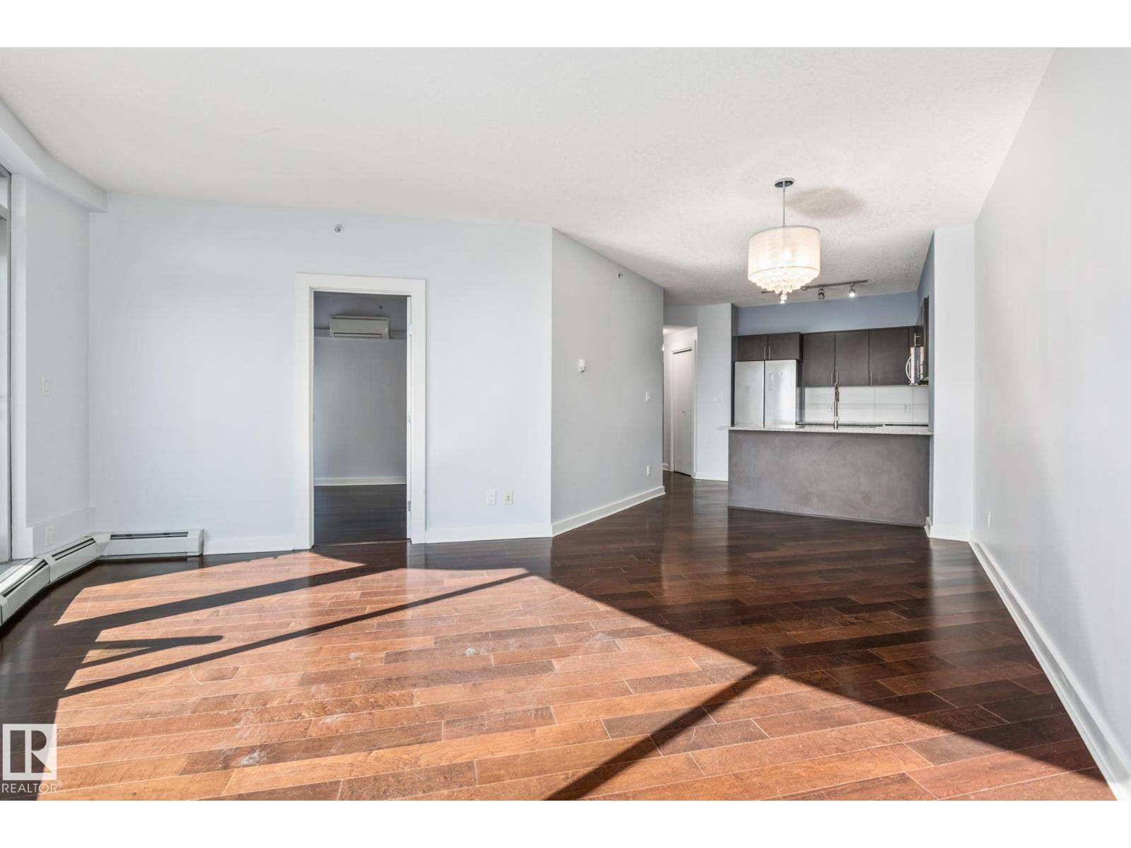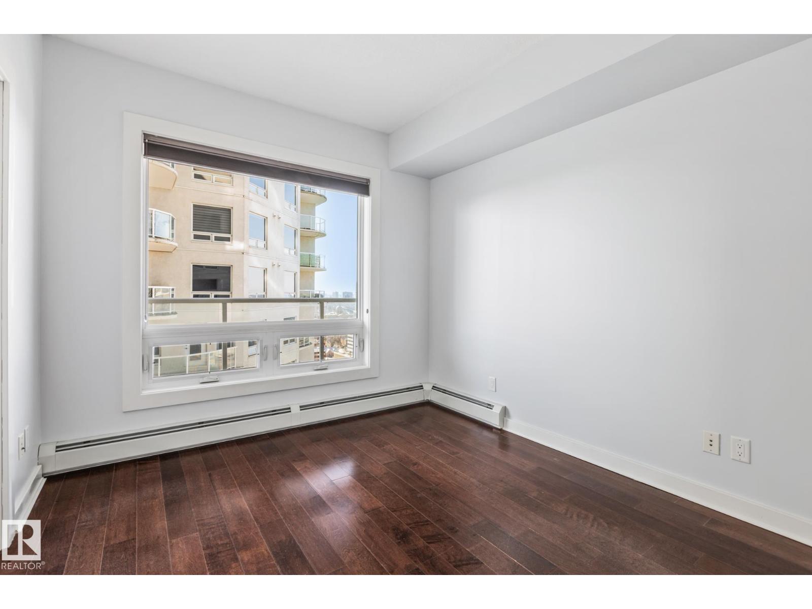 Experience luxury urban living in the heart of Edmonton’s vibrant 104 Street. This stunning south-facing condo in Icon II offers a sophisticated lifestyle with the farmers market, river valley trails, and top-tier dining right at your doorstep. Inside, gorgeous engineered hardwood floors span an open-concept layout, complemented by 9ft ceilings and floor-to-ceiling windows that bathe the home in natural light. The gourmet kitchen features modern cabinetry, granite countertops with an eat-in bar, and upgraded appliances. Retreat to the primary suite featuring built-in A/C, blackout blinds, and a walk-in closet with premium California Closet organizers. The spacious second bedroom is perfect for guests or a home office. Additional highlights include two full bathrooms, in-suite laundry, and a massive south-facing balcony with a gas hookup. Complete with secured titled underground and heated parking with visitor stalls, this premier residence offers breathtaking city views and unmatched convenience. (id:63190)
