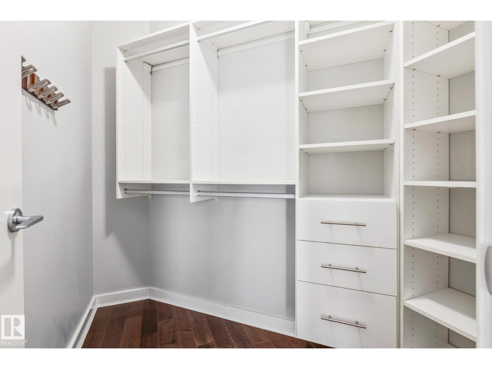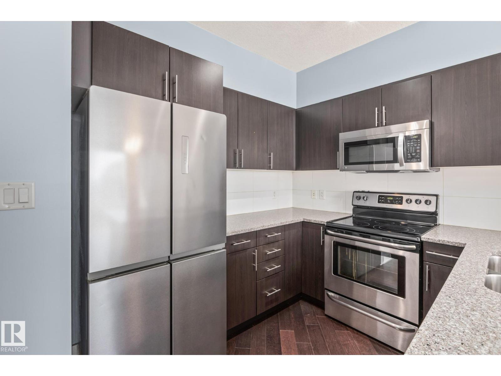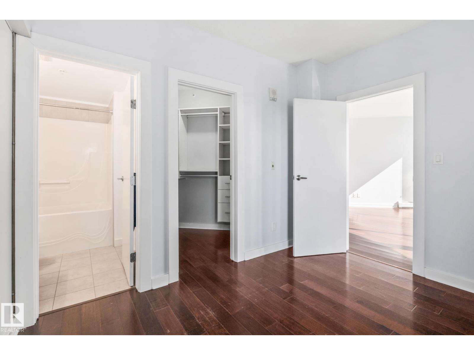 Experience luxury urban living in the heart of Edmonton’s vibrant 104 Street. This stunning south-facing condo in Icon II offers a sophisticated lifestyle with the farmers market, river valley trails, and top-tier dining right at your doorstep. Inside, gorgeous engineered hardwood floors span an open-concept layout, complemented by 9ft ceilings and floor-to-ceiling windows that bathe the home in natural light. The gourmet kitchen features modern cabinetry, granite countertops with an eat-in bar, and upgraded appliances. Retreat to the primary suite featuring built-in A/C, blackout blinds, and a walk-in closet with premium California Closet organizers. The spacious second bedroom is perfect for guests or a home office. Additional highlights include two full bathrooms, in-suite laundry, and a massive south-facing balcony with a gas hookup. Complete with secured titled underground and heated parking with visitor stalls, this premier residence offers breathtaking city views and unmatched convenience. (id:63190)