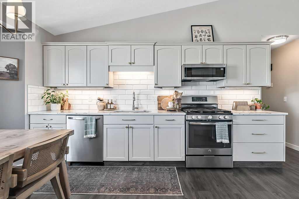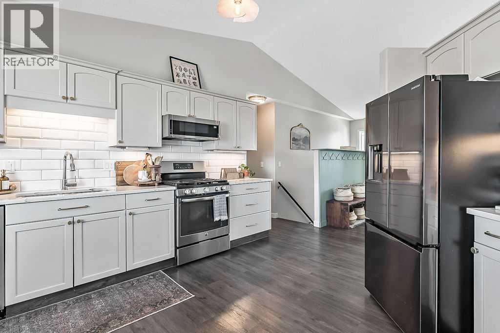 Welcome to this fantastic family home in a quiet SE High River location, just steps from Sunshine Lake and the scenic Happy Trails walking paths. Set on a peaceful street, this property offers the perfect blend of small-town charm and everyday convenience, with parks, playgrounds, and Holy Spirit School all nearby. Sitting on a large pie-shaped lot, there is no shortage of outdoor space, whether it's kids playing, hosting summer gatherings, or simply enjoying the yard. The detached double garage and rear alley access add both functionality and flexibility. Inside, the home offers over 2,000 sq ft of developed living space, with 1,150 sq ft above grade. The main floor features thoughtful renovations, creating a warm and inviting space for everyday living. You'll find 3 bedrooms and 2 bathrooms, ideal for families or those needing extra space. The mostly finished basement adds incredible value, with 2 additional bedrooms, an office, and plenty of room for family activities. The bathroom is already framed, plumbed, and drywalled is available to complete, just waiting for your finishing touches. With quick east access out of town, this is an excellent option for commuters while still enjoying everything High River has to offer. (id:63190)