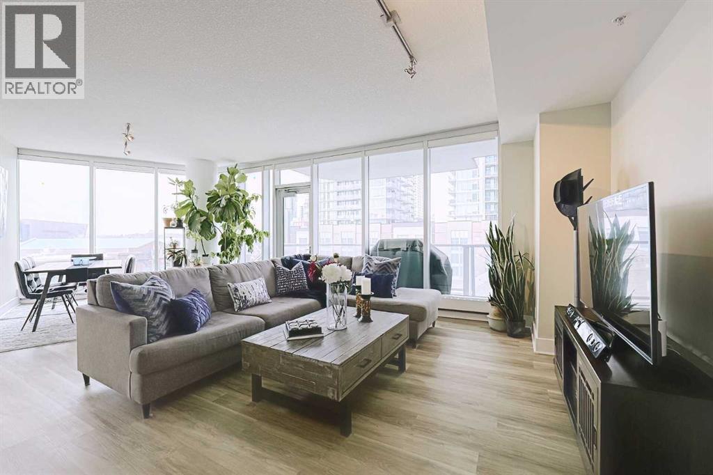 Your sweet spot in Victoria Park, the heart of Beltline. A delightfully walkable location just steps from downtown Calgary's brand new event centre, opening in the Fall of 2027! This luxurious two-bedroom, two-bath condo in the coveted Arriva building is the definition of stylish living. With over 1,014 square feet of living space, this SW-facing suite is drenched in sunshine and boasts soaring 9-foot ceilings. Floor-to-ceiling windows provide jaw-dropping views of the city, Calgary Tower and Saddledome. Walk to concerts and events, Cowboys Casino and Studio Bell. Shopping nearby. Whip up culinary masterpieces in the expansive kitchen, featuring sleek quartz counters, panelled fridge and dishwasher, and high-end Miele stainless steel appliances. The upgraded vinyl plank floors add a touch of elegance, making every inch of this space feel oh-so-inviting. The huge master suite is a dream, complete with a walk-through closet and a spacious private ensuite. Your guests will feel right at home with a 3-piece bath just outside the guest room door. With a concierge at your service (keeping your food and parcel deliveries safe), a pet-friendly vibe, and a well-managed condo board, you’ll be living your best life close to the Stampede grounds, public transit, delicious restaurants, and fabulous shopping. Perks include heated underground parking, bike storage room and a storage locker for the extras. Turnover at Arriva is low, so you know you’ve found something special! Schedule your appointment to view. We can't wait to show you around! (id:63190)
