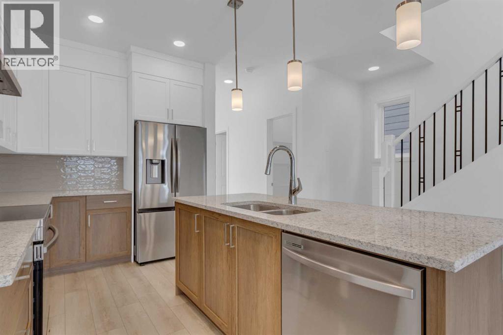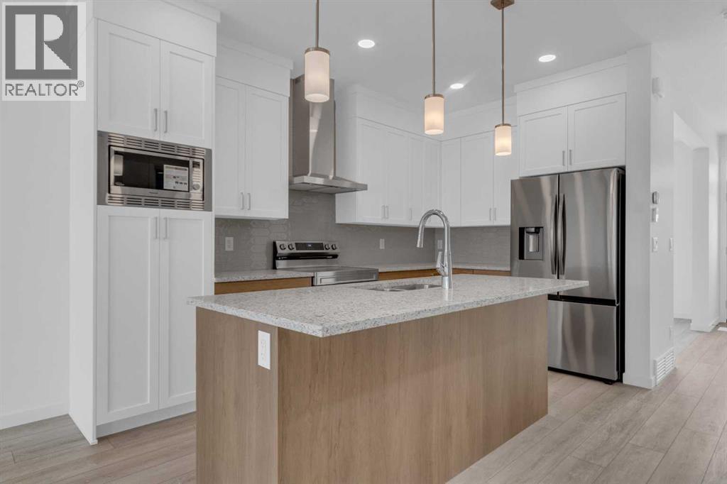 Introducing The Cohen; An amazing Comm Brand new attached by Excel Homes offering 1743 sq ft above grade, with a Fully developed, two-bedroom legal suite, with private separate entrance. This beauty is perfectly situated in Seton ridge, around the corner from a massive playground, sports field and future school. SETONRIDGE, Calgary’s newest urban hub directly south of Seton with sweeping views of the Bow River Valley And minutes from the bustling Seton Urban District with its restaurants, theatres, shopping, and essential services. Residents will love access to SHOA Club, A 14,000 square foot recreation facility. Step into a Life of luxury and convenience where every detail has been meticulously crafted for comfort and style. Enjoy the benefits of living in an established neighborhood that brings a plethora of amenities right to your doorstep. Enjoy swift access to major highways. This home offers a sprawling 1743 square feet of thoughtfully designed living space perfect for both families and entertaining. The open floor plan, complemented by neutral designer tones, creates a welcoming atmosphere that is both elegant and comfortable. The chef quality kitchen stands as the heart of the home, equip with ceiling height cabinets, two banks of pot/pan drawers, an upgraded stainless-steel appliances, including chimney fanned a built-in microwave. The engineered stone countertops, a large island with seating, and a convenient pantry Make it a dream kitchen for those who love to cook and entertain. The main floor also features versatile luxury vinyl plank flooring. On the main floor you will also find a flex room that can be used as a home office, guest bedroom or playroom, and a half bath for convenience. Up to the second level where leisure meets luxury in the large central bonus room featuring vaulted ceilings and pot lighting: Ideal for movie nights and family gatherings. The primary bedroom is a true retreat boasting a walk in closet and a spa like ensuite with stone vanity tops, dual sinks, and double size shower. Two more generously sized bedrooms provide ample space and easy access to the main bathroom. Convenience continues with a laundry room strategically located on the same floor. The possibilities extend into FULLY DEVELOPED, TWO BEDROOM, TWO BATHROOM BASEMENT SUITE. Additionally, your suite is built to upstairs standards & features a full kitchen w/lots of storage cabinets, SS appliances, PRIVATE laundry, vinyl plank flooring. Don’t miss the chance to own this never lived in gem w/quick possession available. This home will included front sod, gravel to the side yard and a 20 x 20 gravel parking pad. This is a Certified Built Green home w/platinum rating! (id:63190)