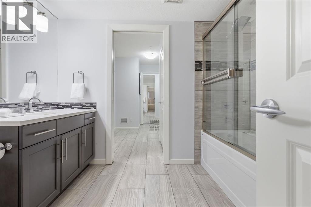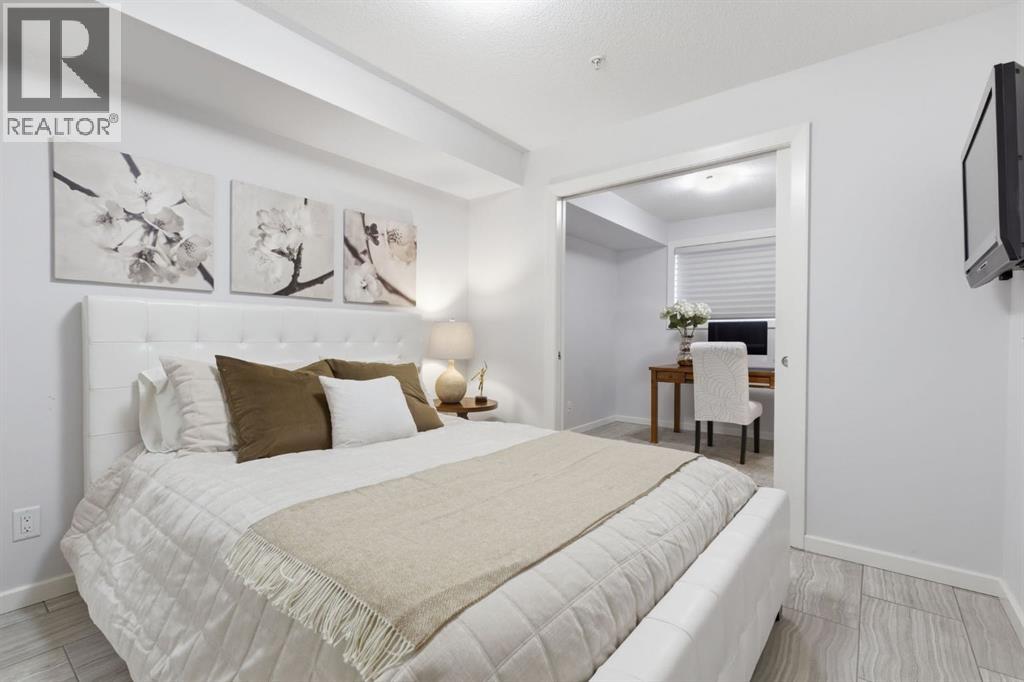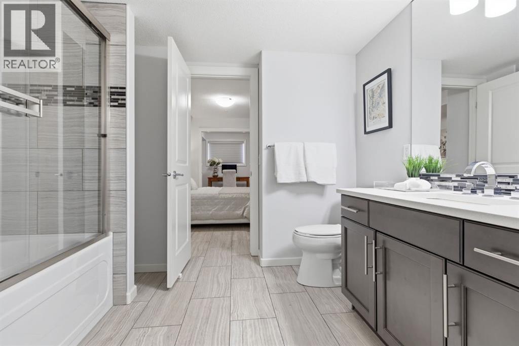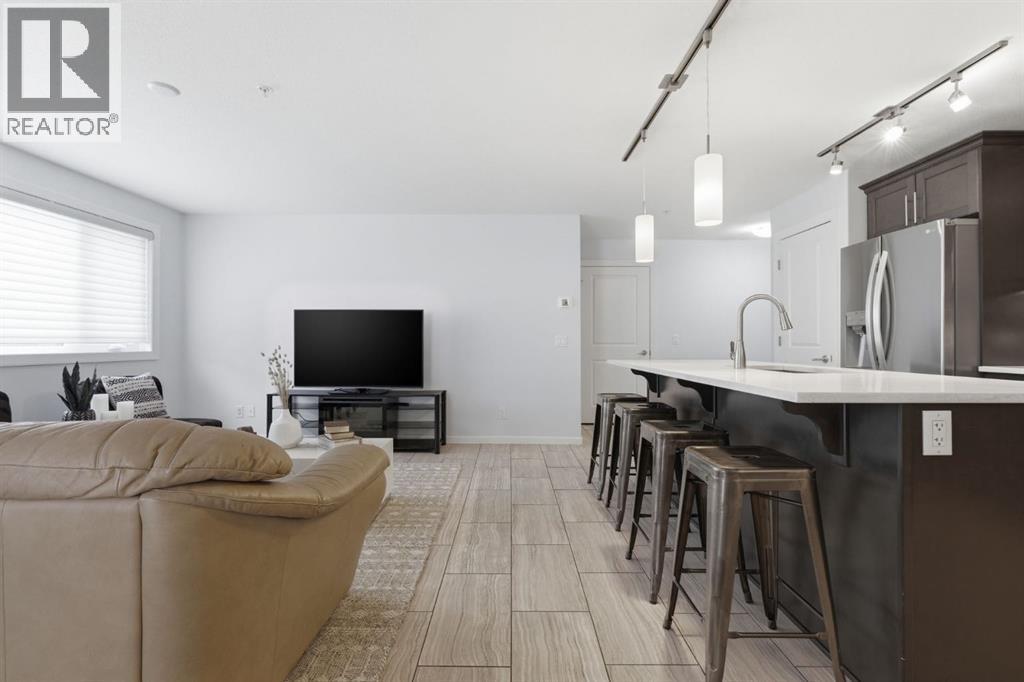Welcome to this beautifully maintained 2-bedroom, 2-bathroom plus den corner unit in a highly desirable 18+ building in Kincora. Offering 1,153 sq. ft. of bright, open-concept living space, this home is filled with natural light from expansive corner windows and offers a private setting with no immediate neighbours.The modern kitchen features quartz countertops, stainless steel appliances, a pantry, and additional custom-built cabinetry for extra storage, along with custom window coverings. Additional highlights include two titled parking stalls, two storage lockers, and a private balcony with a gas BBQ hookup—perfect for summer evenings. Enjoy year-round comfort with air conditioning.Ideally located just minutes from Beacon Hill Shopping Centre with easy access to Costco, Walmart, restaurants, and major amenities. A perfect blend of comfort, convenience, and low-maintenance living. (id:63190)