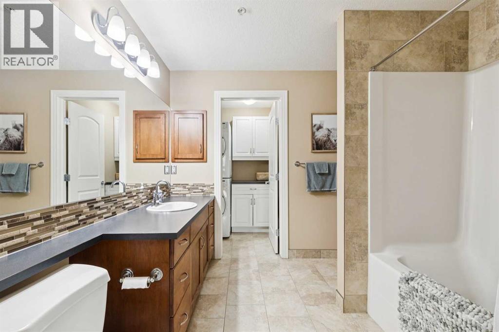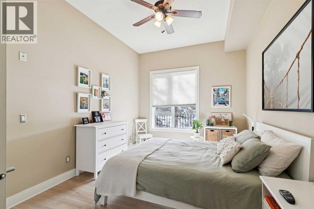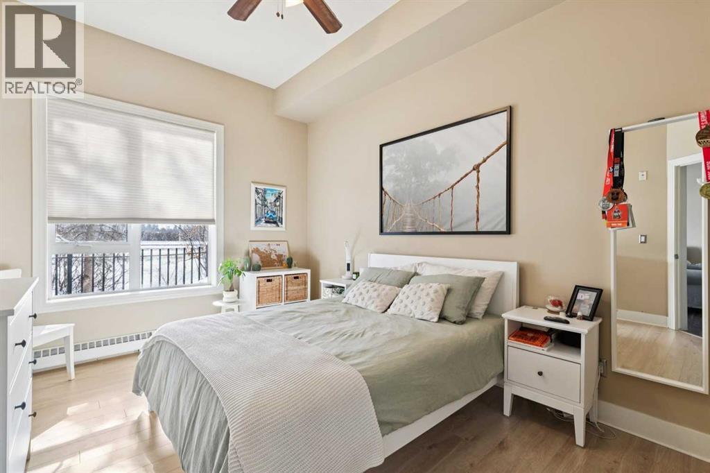 Discover your next home or investment in this exceptional, fully furnished Varsity condo, ready for occupancy preferably mid-June. Located just a short walk from the University of Calgary, University District, Brentwood shopping, and various transit options, this property offers unparalleled convenience. This is a pet friendly building but fully grown-up, pet cannot exceed 15 kg or 33 lbs. You can have up to 2 cats, 2 dogs or 2 birds.The interior features over $35,000 in premium upgrades, characterized by high ceilings and expansive windows that fill the open layout with natural light. Durable laminate flooring flows through the main living spaces and bedrooms, while the two ensuite bathrooms are finished with practical ceramic tile. The kitchen is a central highlight, equipped with medium-toned maple cabinetry, black appliances, and a curved island with seating for three. Nearby, a dedicated computer area with ample built-in storage provides an organized space for remote work or studying.Living and entertaining are made easy with a living room that opens onto a private patio, where mature trees provide a natural screen for outdoor relaxation. The layout is perfectly suited for roommates or guests, featuring two primary bedrooms each with their own ensuite. One bedroom includes a ceiling fan and walk-in closet, while the other offers a walk-through closet leading to a 4-piece bath that connects directly to the laundry room.Additional benefits include a titled underground parking stall in a heated parkade and a titled storage cage for the winter months. This condo is a perfect opportunity for first-time buyers, University of Calgary faculty and students, or medical professionals working at the Foothills or Children's Hospitals. Schedule your showing today! (id:63190)