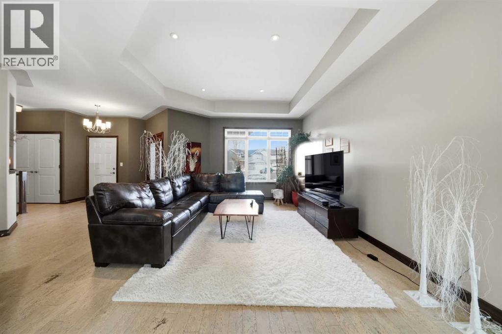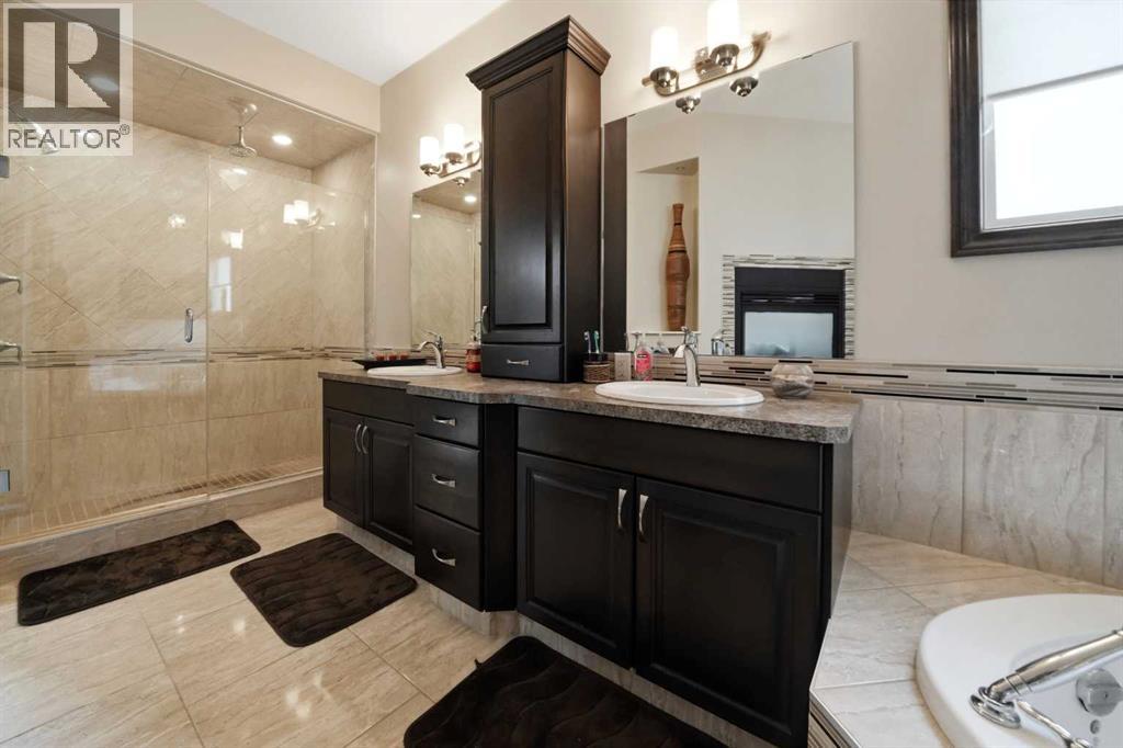 11 Voisin Close ~ A fully finished former show home located in the desirable neighbourhood of Vanier Woods offering 4 bedrooms, 3 bathrooms and a double heated garage. The open concept main floor features cork flooring, a tray ceiling, updated paint and a very functional kitchen. The beautiful kitchen showcases stainless steel appliances including a gas stove, a corner pantry, granite countertops and abundance of birch cabinets. The dining room makes entertaining easy with access to the South facing backyard with a covered deck with a BBQ gas line and additional deck space plus fully fenced yard. The main floor is home to two bedrooms including the oversized primary suite which is a true oasis. The primary is equipped with walk-in closet, double sided fireplace and luxurious ensuite featuring a double vanity, air jet tub and separate tile shower. The main floor laundry is an added convenience (new washer/dryer set) plus built in cabinets. The developed basement offers a huge recreation room with a wet bar and functional in floor heat. Two large bedrooms and a 4pc bathroom complete the lower level. Notable features include an aggregate driveway, custom blinds, furnace and ducts were just cleaned in March 2026, and an oversized garage with in-floor heat. The amazing location with a green space across the street is the cherry on top! (id:63190)