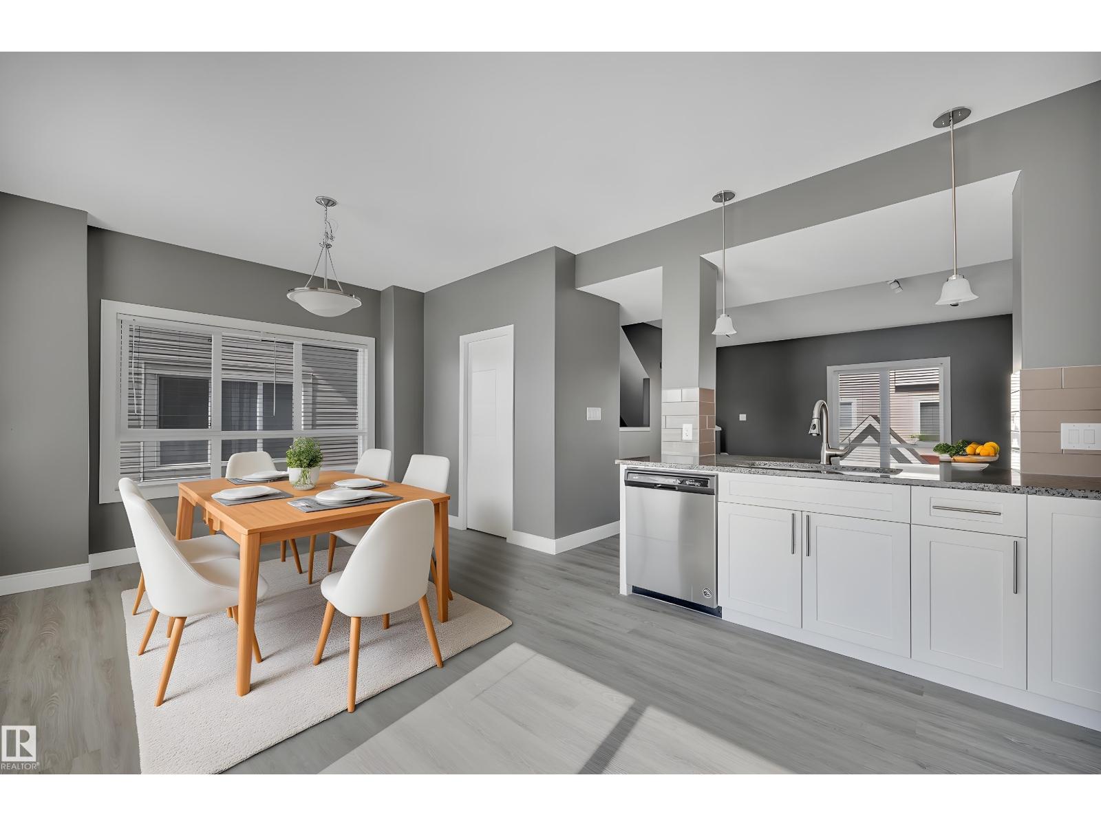 Bright end-unit townhome – 1600 sqft offering space & style with a great layout! This home features 4 bedrooms, including a main floor bedroom – perfect for guests or a home office. The second level is bright, with a spacious living room, an L-shaped kitchen with peninsula + bar seating, and a sunny south-facing patio with gas line for your BBQ. Quality finishes throughout include durable vinyl plank flooring, granite countertops, stainless steel appliances and the comfort of air conditioning. Upstairs, you’ll find 3 bedrooms, including a generous primary with walk-in shower and dual sink ensuite, plus convenient upper-level laundry. Access to the double attached garage (19'1 x 18'10) is on the main level. Professionally cleaned with carpets just steam cleaned this home is move-in ready with immediate possession available. Great value for the size! (id:63190)