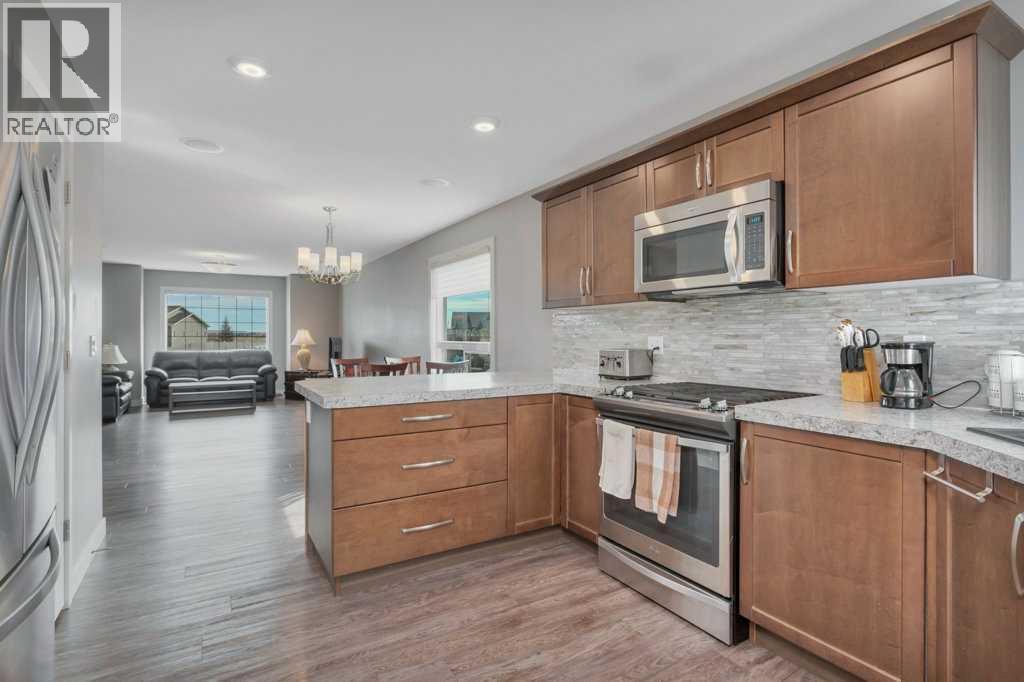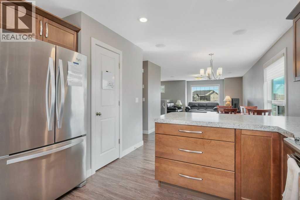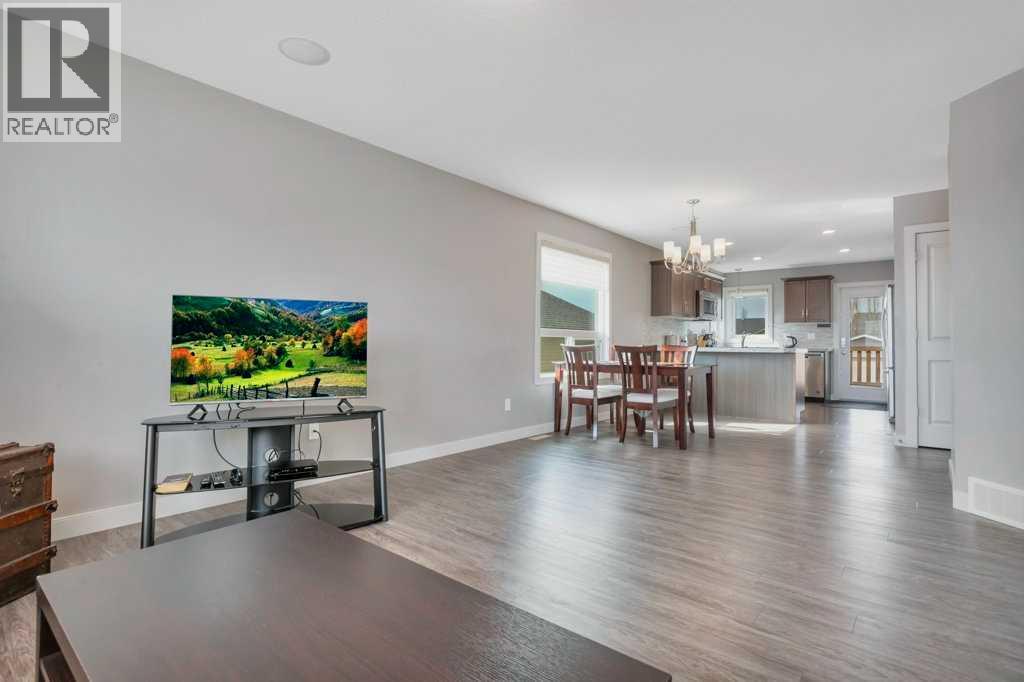A STYLISH, WELL CARED FOR HOME IN BLACKFALDS! Step inside this four bedroom, three bathroom home and experience an inviting open-concept layout. The main floor is designed for both comfort and function, featuring a bright living area with large east exposed windows that allow for lots of natural light. The kitchen is complete with modern finishes, tile backsplash, gas stove, ample cabinetry, pantry and an eating bar which overlooks into the dining/living space. It’s all a perfect space for meal prep and gathering with family and friends. The primary bedroom offers a private retreat with its own three piece ensuite and double closets, while a second bedroom and four piece bathroom complete the main level. Head to the lower level which features the finished basement with a large family room with surround sound speakers, two bedrooms and three piece bathroom. Garden door off the kitchen area flows to the southwest exposed backyard, with a nice size deck with outdoor speakers. The back yard is partially fenced and has a large gravel parking pad with room to build a garage. Other extras include: central AC, in-floor heat and built-in speakers with amp. Situated in a family-friendly neighborhood, this home is just a short walk to playgrounds, schools, and walking trails. With a thoughtful layout and a prime location, this home is sure to be just what you've been looking for. (id:63190)