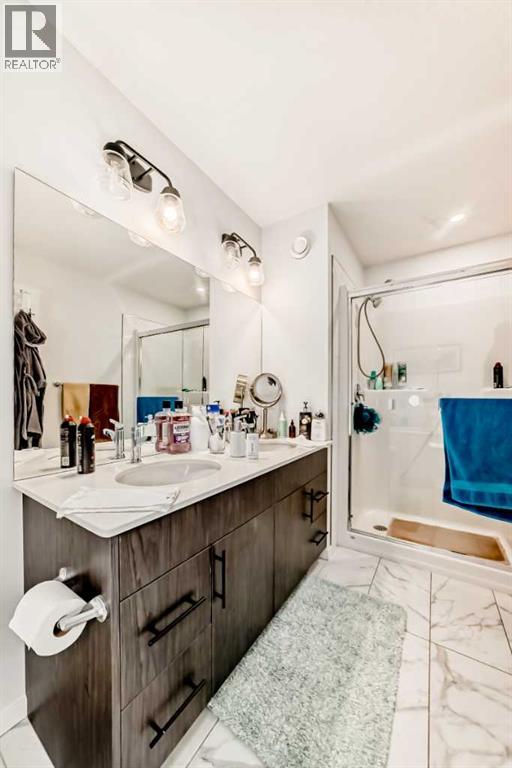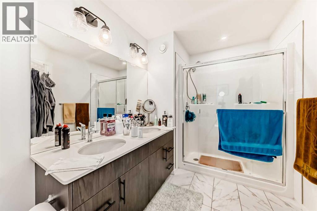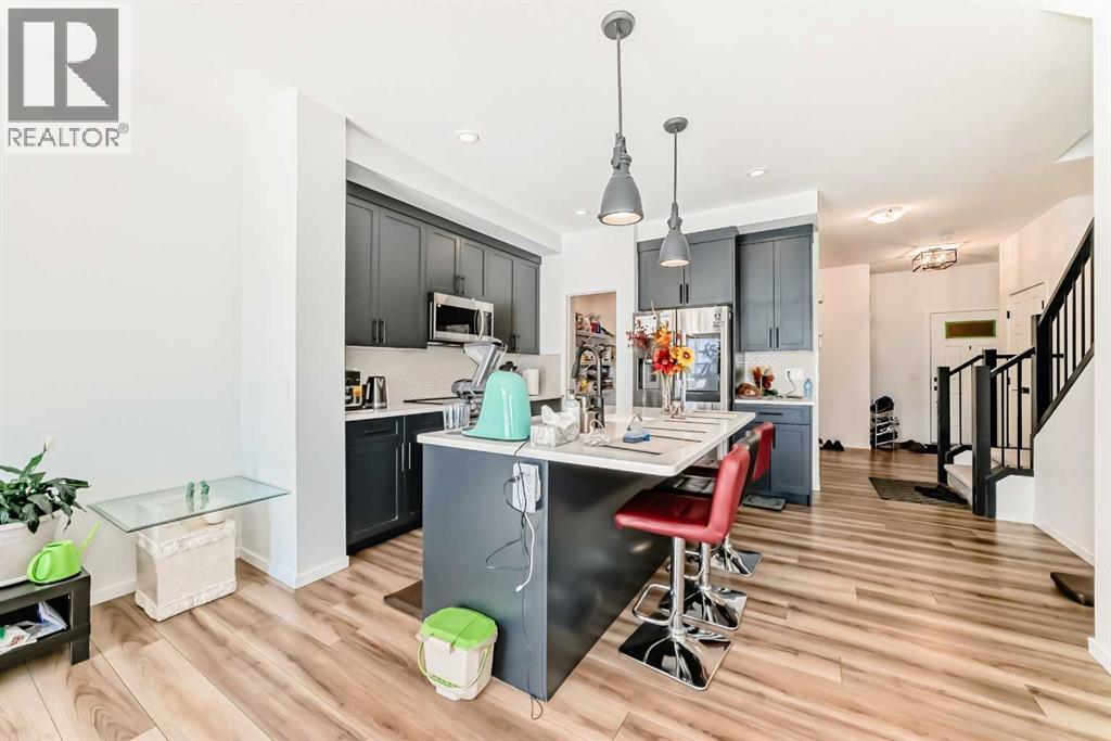 Welcome home to this immaculate three-bedroom semi-detached home in Walden. GENEROUSLY SIZED BEDROOMS, this home provides ample space for the whole family. On the open-concept main floor, you will find a beautifully designed kitchen with UPGRADED APPLIANCES, gorgeous QUARTZ COUNTERTOPS, and a spacious PANTRY. The LARGE WINDOWS in the living and dining room offer beautiful NATURAL LIGHT, and the UPGRADED LVP FLOORING adds to the elegance of the space. Step outside into the beautifully Backyard, featuring a spacious deck, white vinyl fence, the upper floor also features convenient UPSTAIRS LAUNDRY, a WALK-IN CLOSET and a DOUBLE-VANITY BATHROOM. A SEPARATE SIDE ENTRANCE offers the opportunity to convert the basement with roughed-in plumbing into a SECONDARY Unit, subject to approval and permitting by the City. The spacious DOUBLE ATTACHED GARAGE completes this beautiful home. A PARK AND GREEN SPACE are located conveniently across the street, and popular SHOPPING AND DINING districts are just a few minutes away. Don’t miss out on this gorgeous home in one of Calgary’s most desirable communities! (id:63190)