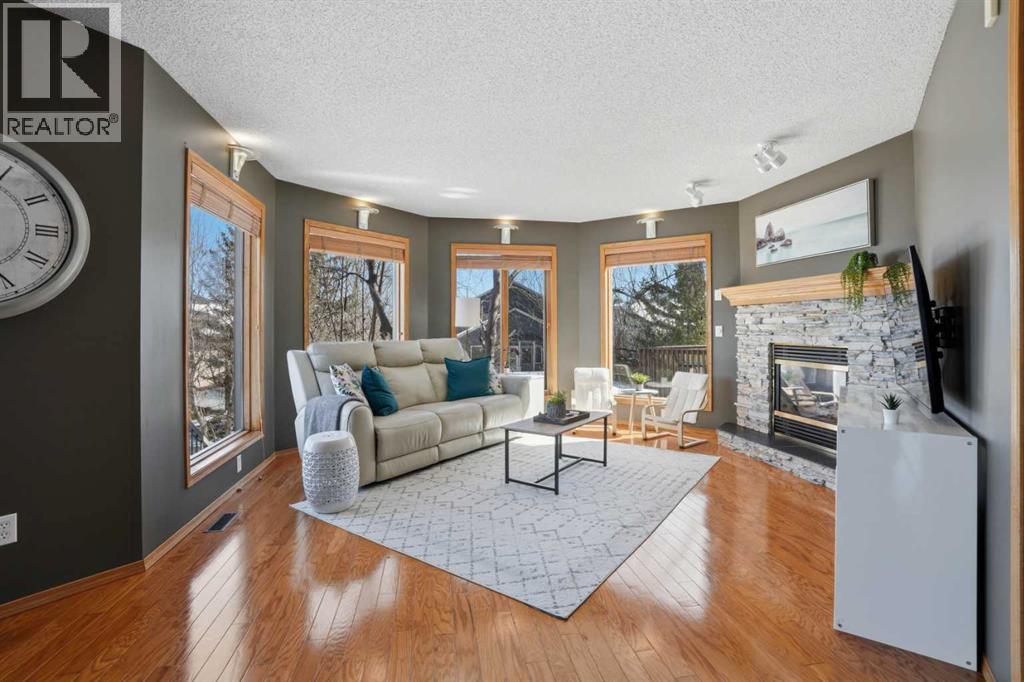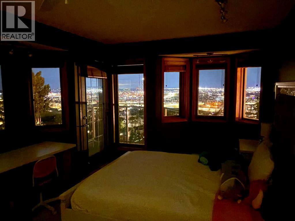 Welcome to this one-of-a-kind, custom-built home situated on a massive pie-shaped lot in Calgary’s sought-after Edgemont community. Backing onto lush green space with breathtaking, far-reaching views, this is your own private oasis. Enjoy a backyard surrounded by nature, a wraparound dura deck, and a charming Juliette balcony—offering the best of all worlds! Step inside and feel instantly at home, greeted by soaring ceilings and an abundance of natural light and beautiful hardwood floors. The main floor features a spacious living room, a formal dining area with a pass-through to the bright white kitchen, complete with ample storage, a gas stove, and a corner sink perfectly positioned to take in the view. Off the kitchen, you’ll find a cozy breakfast nook and a welcoming family room with a corner gas fireplace, more sunlight, and sweeping city views. Also on the main level are a generous office space, a laundry room with sink, and a full 3-piece bathroom. Head upstairs via the stunning open-tread staircase beneath a massive skylight. Here, you’ll discover a 3-piece bathroom, two well-sized bedrooms, the primary suite with a 4-piece ensuite featuring heated floors and a walk-in closet, plus an extra-large fourth bedroom with its own walk-in closet and access to the Juliette balcony overlooking the city. The basement boasts two large bedrooms, a 3-piece bathroom, a computer or exercise area, a spacious rec room, and more storage than you’ll know what to do with. Step outside to your private retreat, where there’s plenty of space to run, play, and enjoy quality family time. Additional features include LED exterior lighting, central air conditioning, and two furnaces and NO POLY-B! Do not let this opportunity pass you by, book your viewing TODAY! (id:63190)