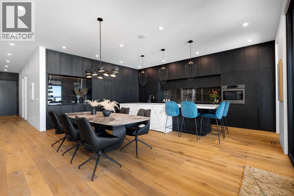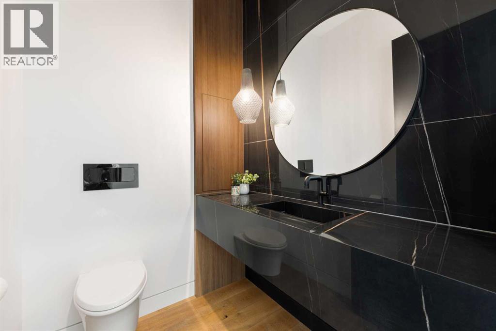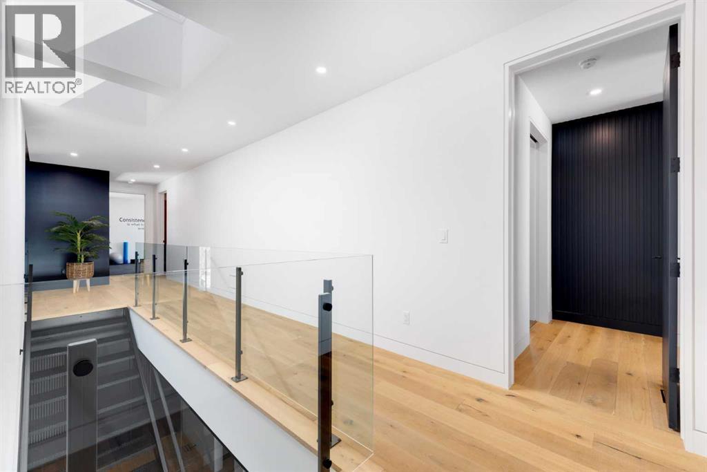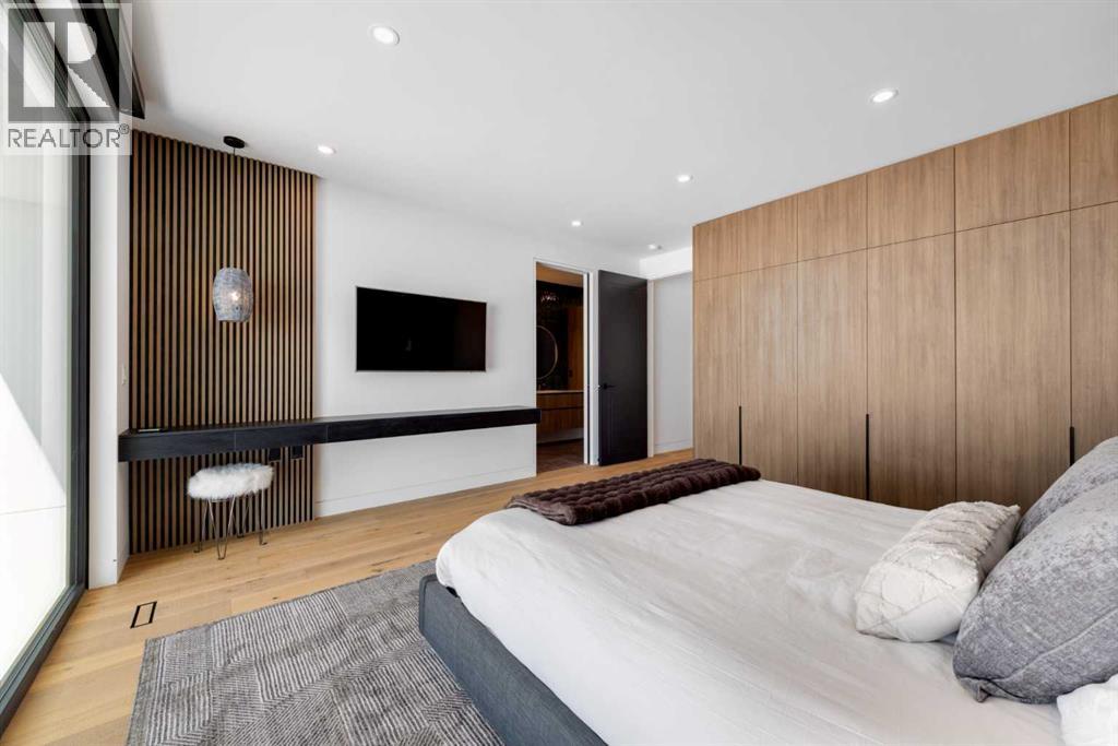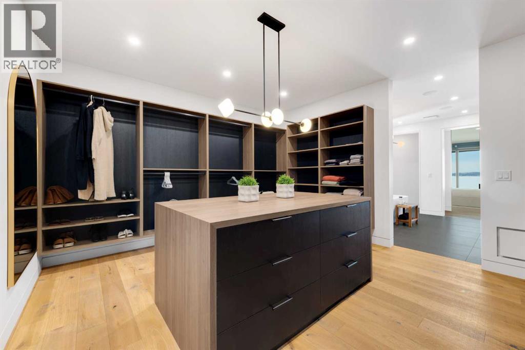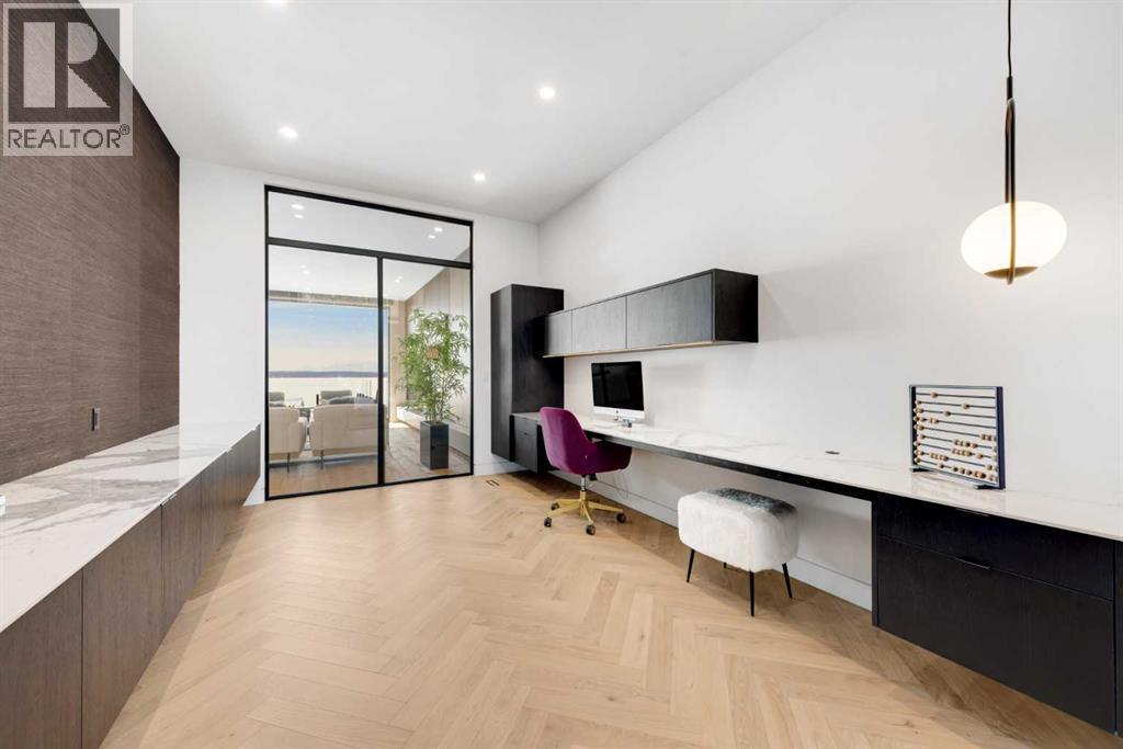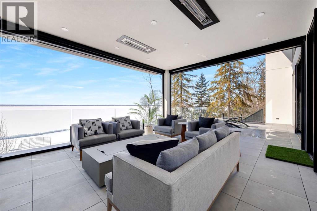 Presenting The Cliffs, a breathtaking custom lakefront residence by Award Winning Custom Home Builder: Square Structures. Designed to live in harmony with its surroundings, this architectural statement captures uninterrupted, south-facing lake views from every level, allowing light, water, and design to exist in perfect balance.Expansive walls of floor-to-ceiling glass dissolve the boundary between indoors and out, allowing the landscape to become part of everyday living. This 3890 sq.ft residence is expanded with 1,700 square feet of outdoor living space, including a fully screened outdoor lounge with fireplace, overhead heaters, and integrated media, an inviting setting for evenings by the water, regardless of the season.A refined palette of materials and meticulous craftsmanship define the interiors. Wide-plank white oak flooring grounds the open-concept main level, where a beautifully appointed living space flows effortlessly into the streamlined kitchen. With an eye for both form and function, the kitchen features porcelain countertops, integrated appliances, an induction cooktop, built-in coffee station, ice machine, and a discreet walk-through pantry with full-size refrigerator and freezer, all thoughtfully curated for seamless entertaining.The primary suite is a private sanctuary, offering direct access to a lake-facing balcony, a gas fireplace, walk-in closet and a spa-inspired ensuite with dual vanities, a walk-through shower, and custom tilework, all designed to calm and restore the soul.Throughout this residence, every detail has been considered: a dedicated home office, a private fitness studio with a wraparound balcony, four additional bedrooms, and a walk-out lower level complete with a family room and immersive theatre experience. In-floor heating and automated blinds on every level, a triple attached garage and lakeside outdoor storage provide comfort and ease, while professionally designed landscaping creates an invitation to the water’s edge. From sunrise reflections to fireside evenings, The Cliffs offers a lifestyle defined by a connection to nature and the moments that matter most. (id:63190)