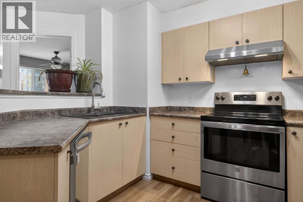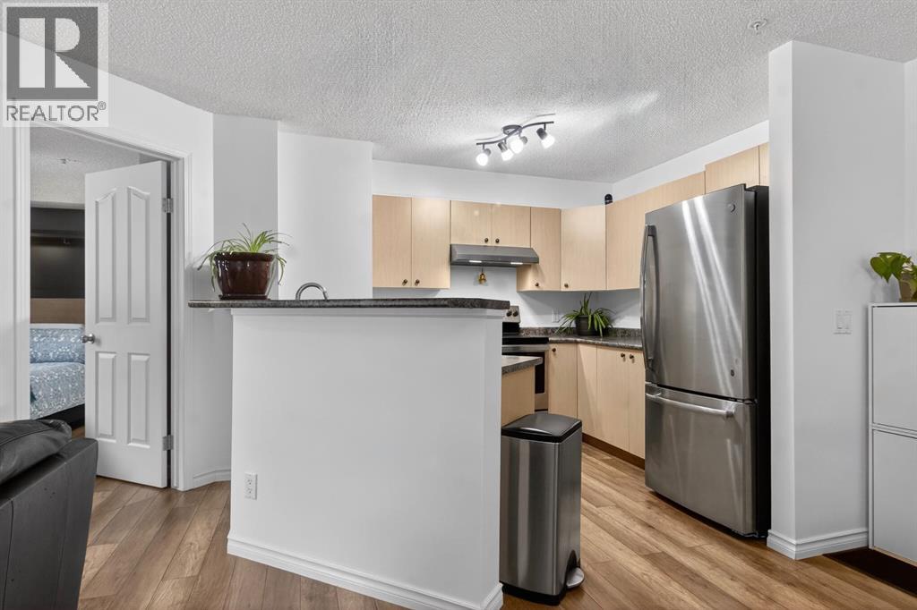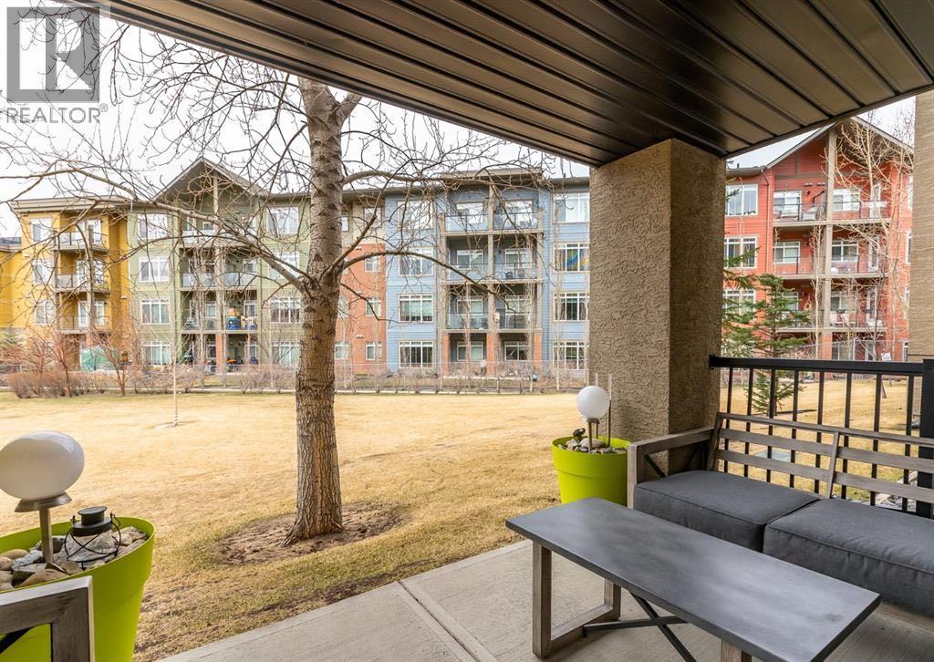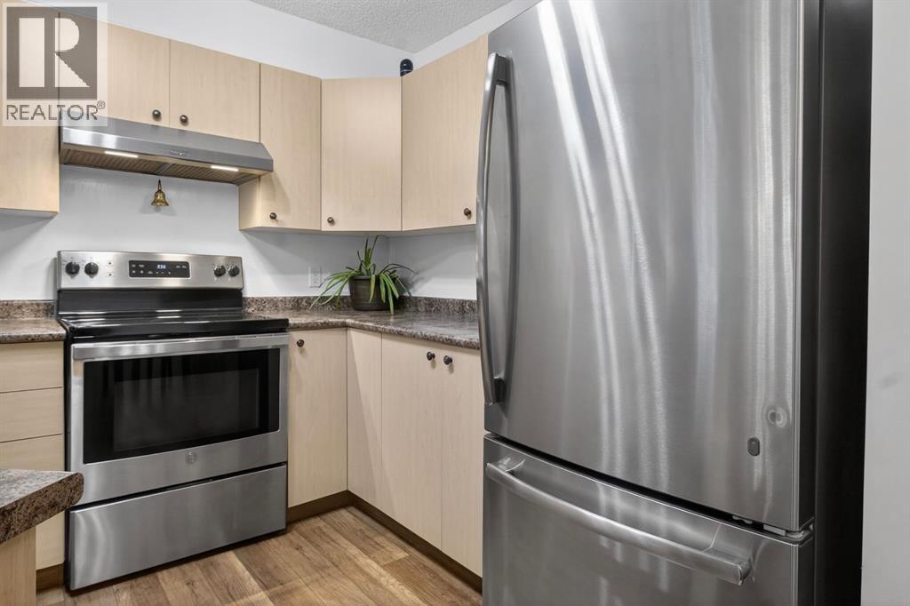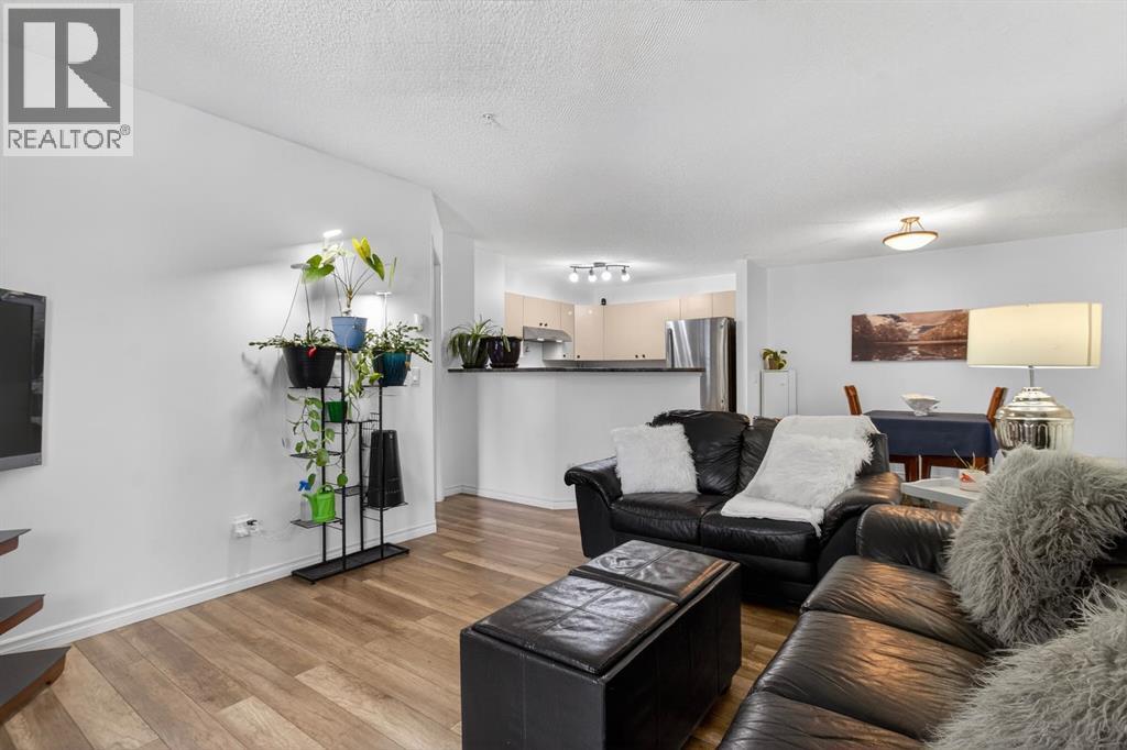 **OPEN HOUSE APRIL 26, 2026 FROM 1:00 P.M. - 3:00 P.M.** Welcome to Mackenzie Pointe backing onto green space, all utilities are included with the condo fees. This beautifully maintained ground-floor 2 bedroom, 2 bathroom condo offers incredible value with two parking stalls (titled underground + assigned outdoor) and a titled storage locker. Step inside to a bright, modern interior featuring upgraded laminate flooring and fresh paint throughout. The welcoming entryway offers excellent functionality with two closets, including one with in-suite laundry. The open-concept layout creates a seamless flow, perfect for both everyday living and entertaining. The spacious kitchen is thoughtfully designed with light-toned cabinetry, a breakfast bar, and newer stainless steel appliances. Overlooking the dining and living areas, it allows you to stay connected while hosting or enjoying a quiet night in. The living room is filled with natural light from a large sliding glass door that leads to your private, covered northwest-facing patio, backing onto beautiful greenspace and mature trees, a peaceful setting to relax and unwind. The generous primary suite features a bright window, walk-in closet, and a private 4-piece ensuite. The second bedroom is ideally located on the opposite side of the unit, complete with its own 4-piece bathroom, perfect for guests, roommates, or added privacy. Additional highlights include, ground-floor convenience, all utilities included, titled underground parking (truck-friendly), second outdoor stall steps from the entrance, titled storage locker, private covered patio backing greenspace. Move-in ready and offering exceptional comfort and convenience, this is one you won’t want to miss. Book your private showing today! (id:63190)