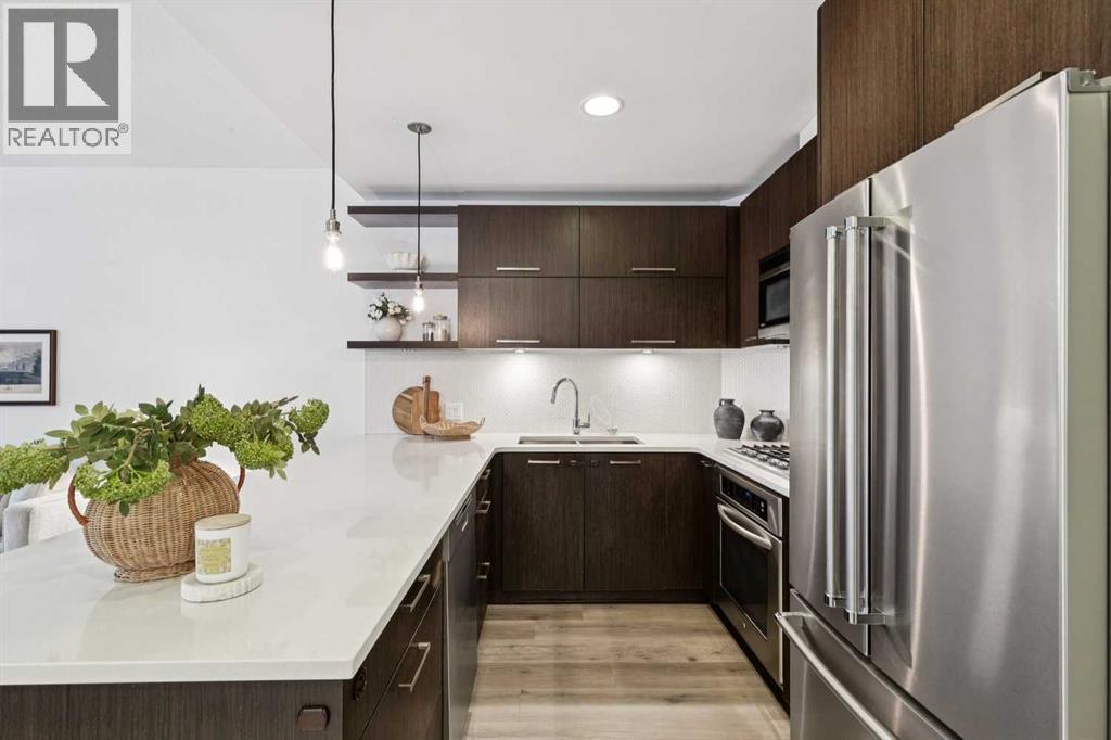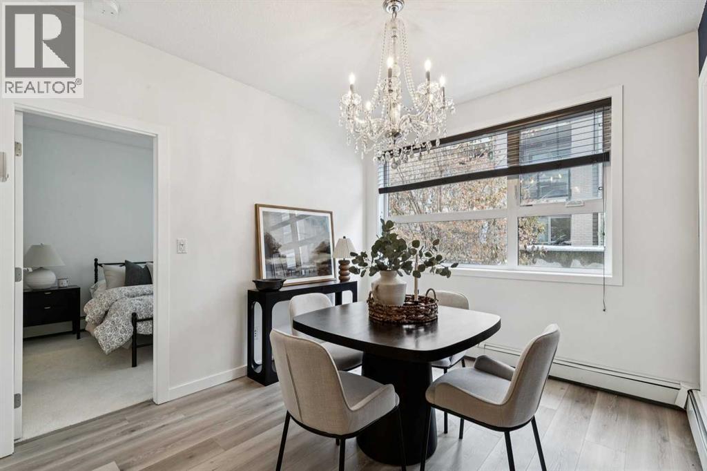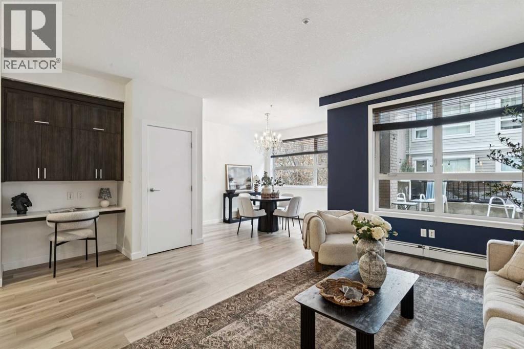 Welcome to this spacious ground-floor condominium in the established community of Renfrew, offering over 900 square feet of well-planned living space. The unit has been refreshed with new paint and brand new flooring throughout, including luxury vinyl plank in the main living areas and plush carpet in both bedrooms. The kitchen features quartz countertops and a high-end appliance package, including an updated refrigerator and dishwasher. The in-suite laundry features a brand new washer and dryer. A custom built-in desk with upper cabinets creates a practical workspace while adding additional storage. The layout also includes a large in-unit storage room, ideal for keeping seasonal items and everyday essentials organized. As a ground-floor unit, the patio is generously sized and opens directly onto the building’s courtyard, offering easy outdoor access and a great option for pet owners. Two titled parking stalls are positioned side by side, adding everyday convenience. Residents have access to a fitness room along with underground visitor parking. Renfrew is known for its elevated setting and quick access to the downtown core. From here, you are close to the restaurants and amenities along Edmonton Trail and within walking distance to Bridgeland, offering a wide variety of local shops, cafes, and dining options. This well-maintained unit in a convenient inner-city location is ready for its next owner to move in and enjoy. (id:63190)