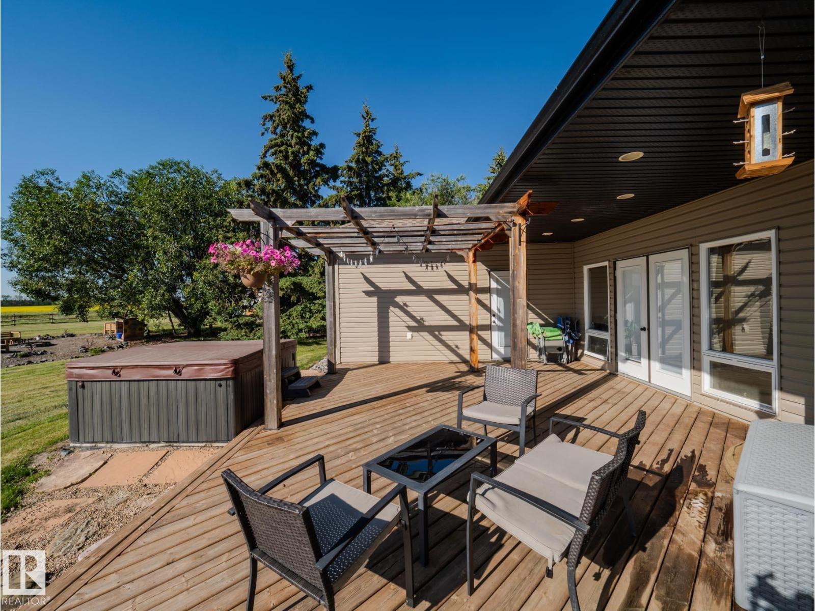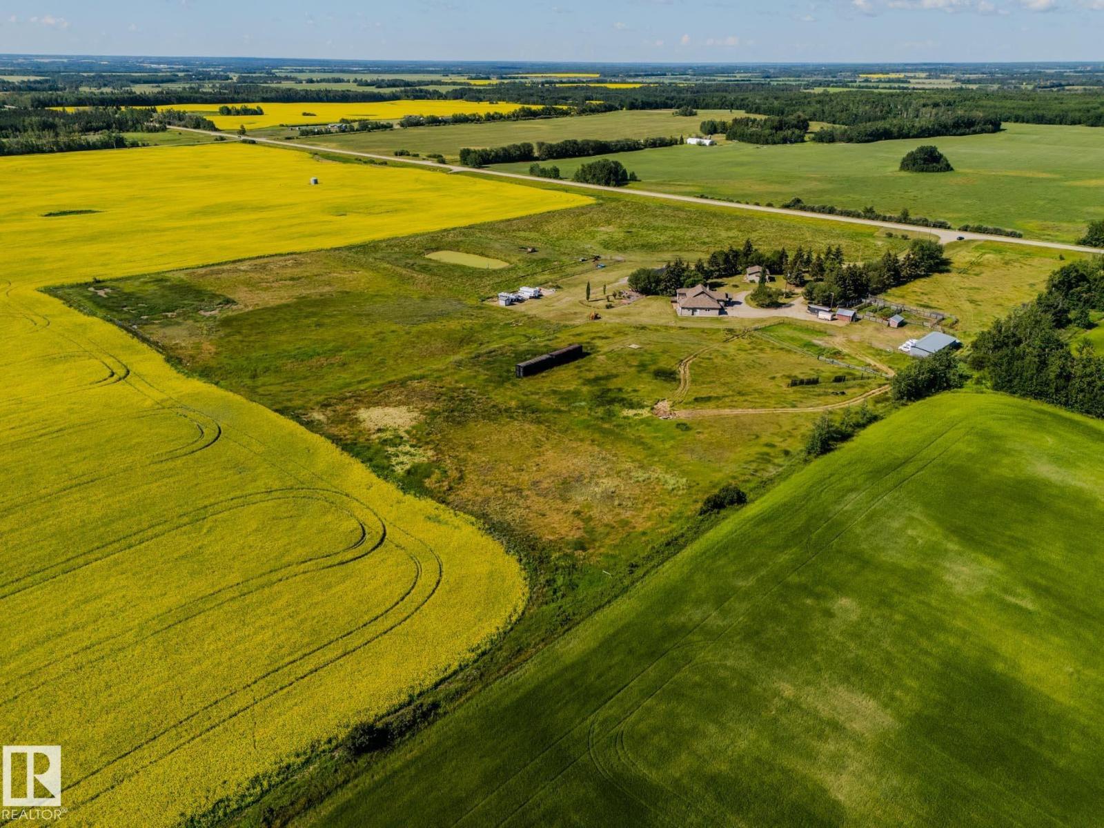 Welcome to this amazing property in Lac Ste Anne County! This home was custom built with you in mind! The grande foye has a dual sided fireplace to greet you. It has amazing beam vaulted ceilings and a beautiful cherry kitchen with a walk-through pantry. The primary bedroom has a huge 5 piece ensuite and two separate walk in closets. The second and third bedroom across the living space features a 4 piece bathroom and pocket doors for privacy. There is a detached shop with extra rooms with many possibilities, and a pole shed for extra storage. This is a dream property for horse and animal lovers, it has multiple water bowl locations, a dugout and is cross fenced. The landscape here is beautiful! The trees, rocks and flower beds will make you feel right at home. There is a second site on the property for a second dwelling as well! (id:63190)