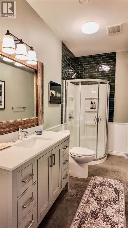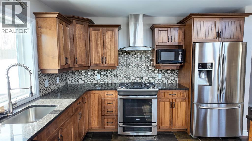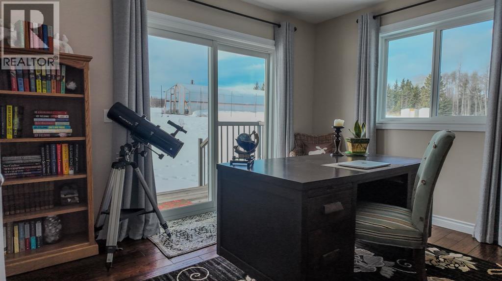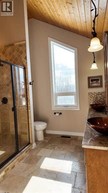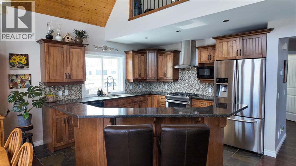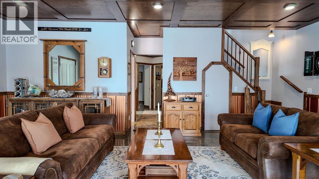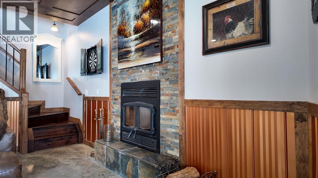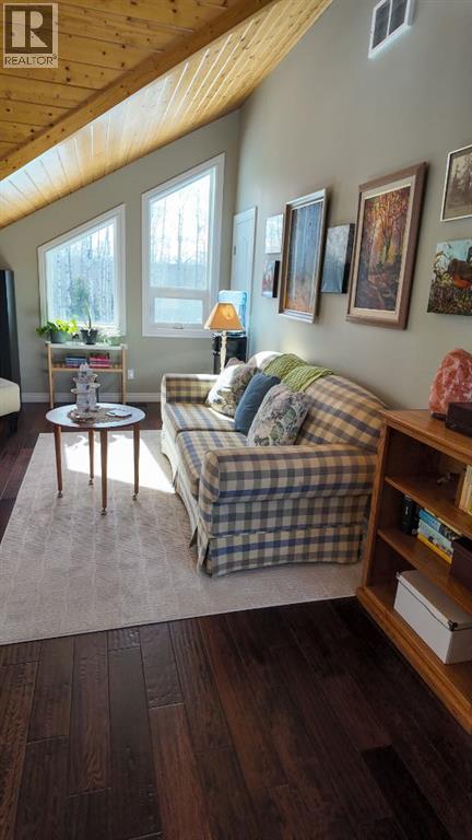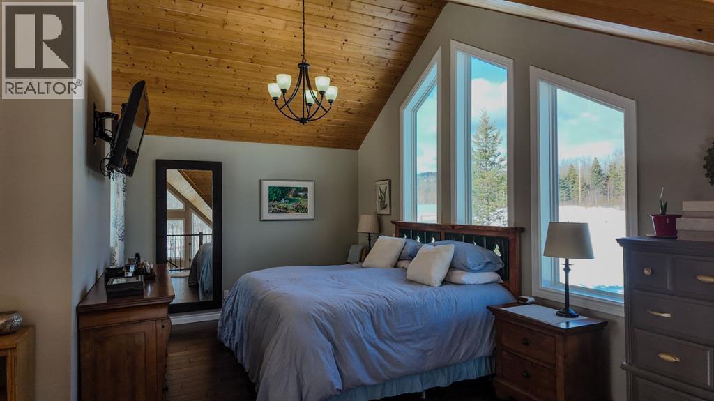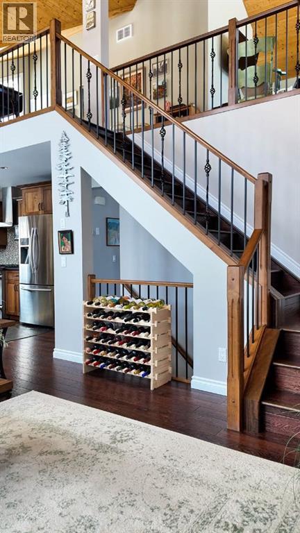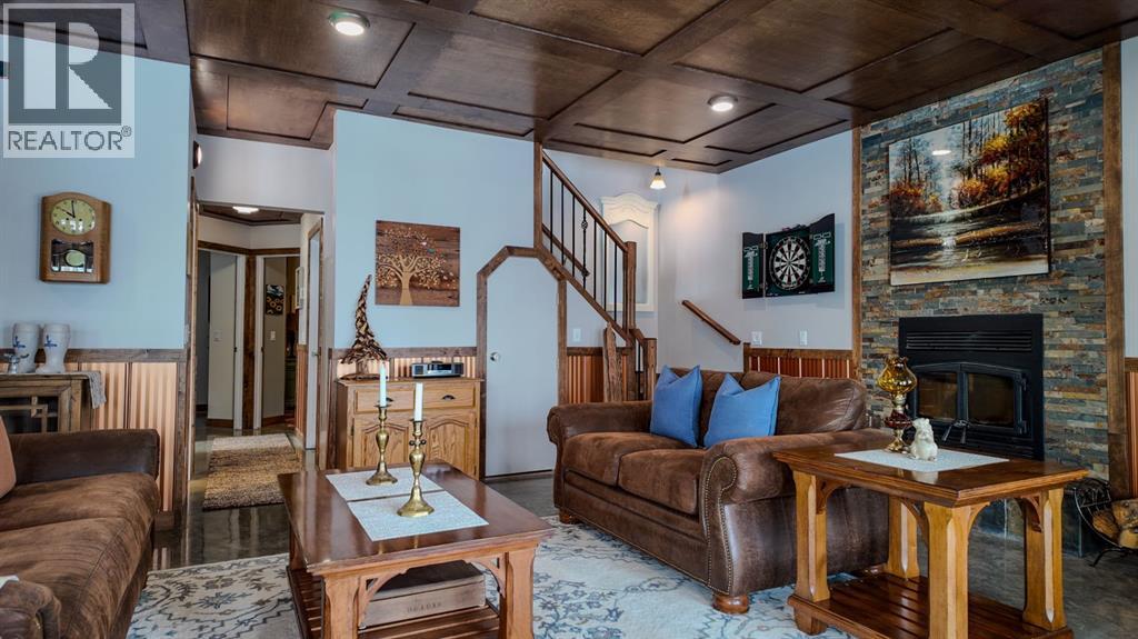 Set on 7.24 beautifully developed acres, this stunning 1.5-storey A-frame home with a walk-out basement offers a rare combination of striking architecture, upscale finishes and functional acreage living. The home features 5 bedrooms and 3 bathrooms, thoughtfully designed to offer both space and privacy. Soaring vaulted ceilings and a dramatic A-frame feature wall create an impressive main living space, while triple-pane windows flood the home with natural light and showcase the quality craftsmanship throughout.The interior features engineered hardwood flooring, slate tile accents and rich dark maple cabinetry carried through the kitchen and bathrooms. The kitchen is both stylish and practical, complete with quartz countertops, stainless steel appliances and central vacuum floor sweeps, all open to the main living and dining areas. A gas fireplace adds warmth to the living room, while the walk-out basement offers additional living space with a cozy wood-burning fireplace.In the lower level, walnut ceilings and matching trim have been carried through to create a seamless, cohesive design that ties the entire home together beautifully. This level also extends the living space with comfort and warmth, enhanced by in-floor heating throughout.The loft is dedicated to a private primary retreat, featuring a reading area overlooking the main floor, a walk-in closet and a well-appointed ensuite with double vanities and a tiled walk-in shower. The main bathroom also includes a deep soaker tub and in-floor heat, with additional in-floor heating in the walk-out level.Recent upgrades include a new well (May 2025), water softener, washer and dryer and central vacuum system. The exterior is finished in durable Hardie board siding and surrounded by decking on three sides, including private access from one of the bedrooms and two gas hookups for BBQs.Previously used for commercial organic gardening, the property features a fully fenced 150’ x 300’ garden and greenhouse area, inc luding a 12’ x 50’ greenhouse plumbed for water. Established plantings include strawberries, apple trees, Saskatoon bushes, cherry trees, raspberries, haskap and asparagus.Additional improvements include two insulated, powered sheds (18’ x 20’ and 14’ x 24’, one with air conditioning), a 20’ x 30’ Quonset, chicken coop and a fully serviced RV site with power, sani-dump and water nearby. There is also an 8’ x 8’ powered dog house with a window, man door and doggy door. A 40’ high cube sea-can (9’6” high) with an attached 8’ x 14’ lean-to is negotiable, complete with electrical panel, LED lighting and outlets. A truly unique opportunity offering refined country living with exceptional versatility and space to grow. (id:63190)