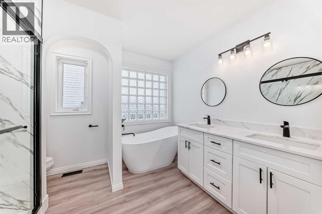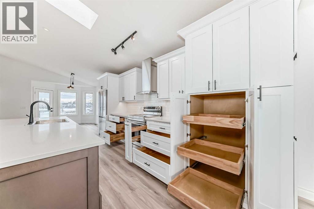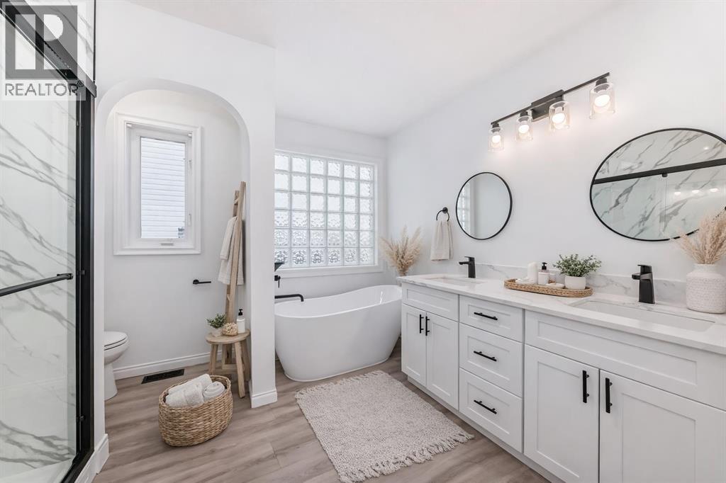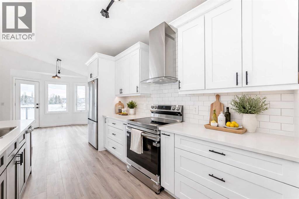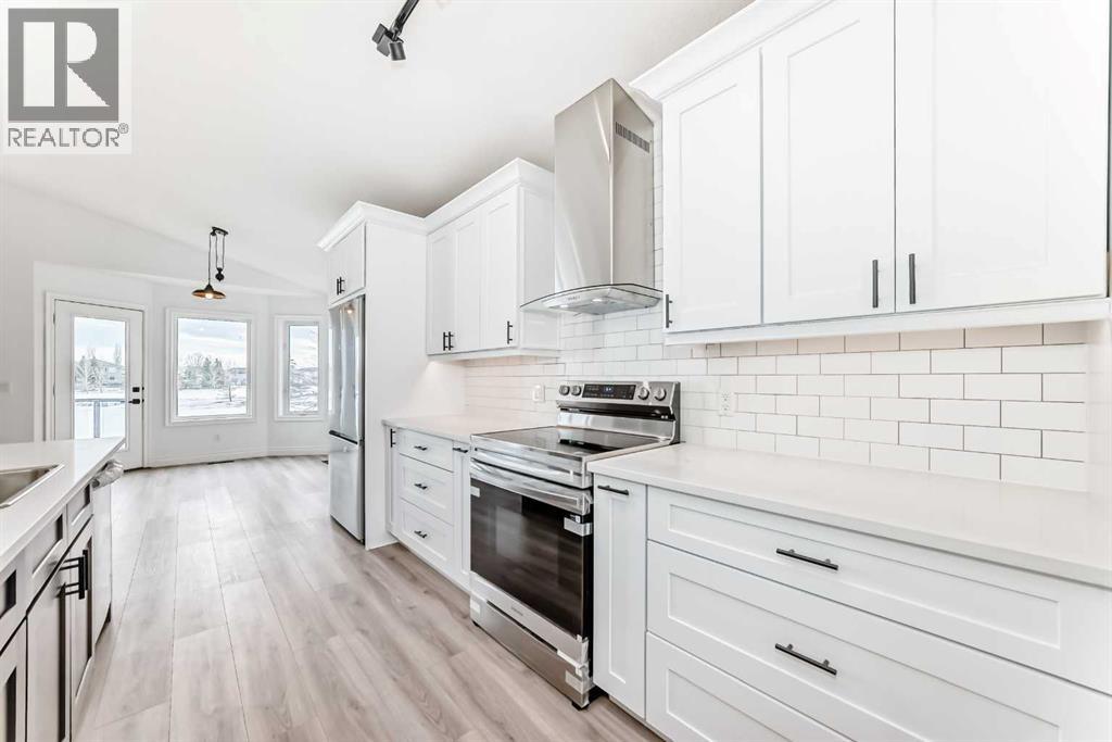 Hello, Gorgeous! Welcome to 228 Woodside Crescent NW in Airdrie… a beautifully renovated bungalow backing directly onto the Woodside Golf Course. Offering over 2,500 sqft of total developed living space, this home combines the ease of main-floor living with thoughtful updates and a truly exceptional setting.The main floor has been completely redone, featuring a bright, open layout with new flooring, fresh paint, and a stunning new kitchen complete with quartz countertops, stainless steel appliances, pullout storage, and an oversized island. The living and dining areas flow seamlessly together, with large windows framing peaceful golf course views and filling the home with natural light. A versatile front flex space adds additional functionality, perfect for a sitting area, home office, or reading nook.The primary bedroom offers a private retreat with a walk-in closet and a beautifully updated 5-piece ensuite. A second bedroom, full bathroom, and convenient main-floor laundry complete this level.The fully developed basement expands your living space with a large recreation area, third bedroom, full bathroom, and additional storage. A second laundry setup adds flexibility for guests or multi-generational living.Extensive upgrades provide peace of mind, including a fully renovated upper level, new kitchen, updated bathrooms, new appliances, replaced Poly B plumbing, and a new hot water tank. The oversized double garage adds everyday practicality.Step outside to a private backyard backing directly onto the golf course, offering open views and a serene outdoor setting that’s hard to find.Located in the established community of Woodside, close to walking paths, parks, and amenities, this home is ideal for buyers seeking a move-in-ready property with an active lifestyle and a premium location. (id:63190)