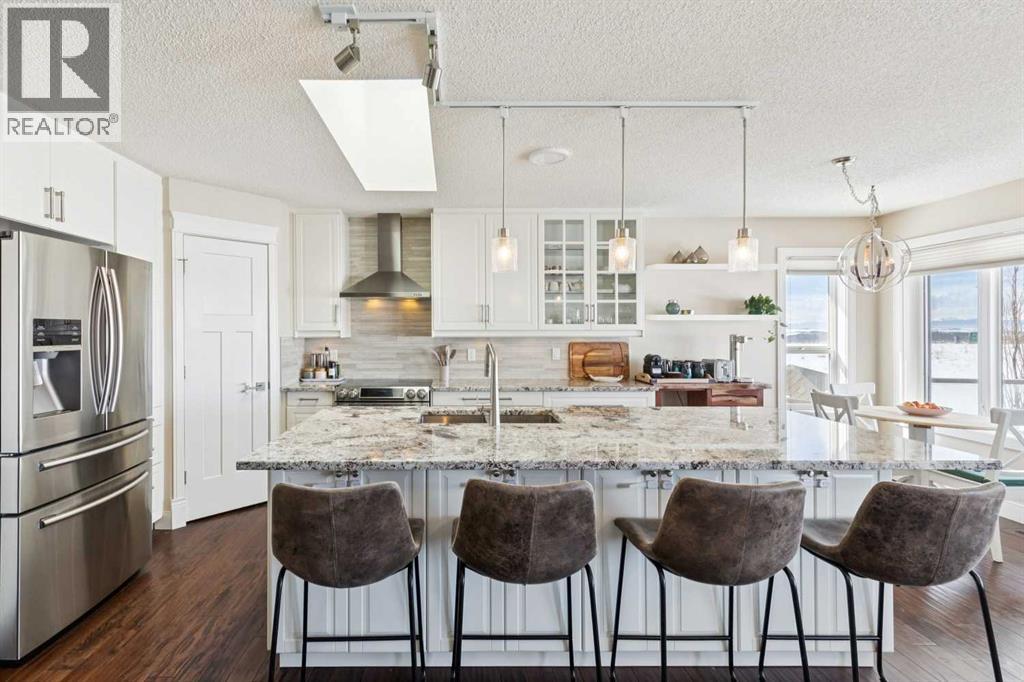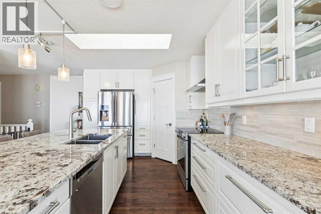 BEAUTIFUL MOUNTAIN VIEWS from this large, UPDATED WALKOUT BUNGALOW on a HUGE OVERSIZED PIE LOT in the desirable community of Scenic Acres!Step inside to a spacious FORMAL LIVING AND DINING ROOM, perfect for entertaining, highlighted by VAULTED CEILINGS and an abundance of natural light. The thoughtfully designed main floor features two living areas, including a rear family room that flows seamlessly into the fully renovated kitchen, where you can enjoy stunning mountain views right from your kitchen and living room windows.The kitchen showcases granite countertops, smooth white cabinetry, stainless steel appliances, a skylight, and large windows that fill the space with natural light. Step out onto the large balcony and take in the PANORAMIC MOUNTAIN VIEWS, perfect for relaxing or entertaining.The primary bedroom offers breathtaking MOUNTAIN VIEWS and features a beautifully updated ensuite bath. The main level also includes a spacious second bedroom, a beautifully renovated full bathroom, a private office with skylight, plus a convenient laundry and mud room area.The NEWLY RENOVATED WALKOUT BASEMENT offers exceptional additional living space, including a large recreation room, bar with refrigerator and sink, two generously sized bedrooms, a fitness area, and a stylish full bathroom—perfect for guests. Even with all this finished space, there is still ample storage. With almost 3,400 SQUARE FEET OF DEVELOPED, USABLE SPACE, this home offers incredible flexibility for families of all sizes.Additional updates include a recent roof, two newer furnaces, a new hot water tank, central A/C, vacuum system, fresh paint, updated baseboards and doors, Poly B replaced with PEX conversion throughout, and BIRCH HARDWOOD flooring on the main level. The double attached garage offers ample storage and includes a conveniently installed EV outlet. Plenty of room for two vehicles. Nestled on a friendly cul-de-sac, this home offers access to walking paths and is conveniently c lose to schools, transportation, shopping, and amenities. Added convenience includes timed underground sprinklers, plus a private backyard complete with a shed and gazebo. Outside, you’ll truly appreciate the privacy of having no neighbors behind, along with a massive fenced backyard, perfect for enjoying daily sunsets over the mountains. Book your private showing today! (id:63190)