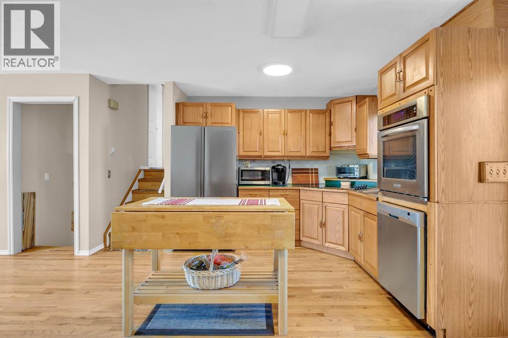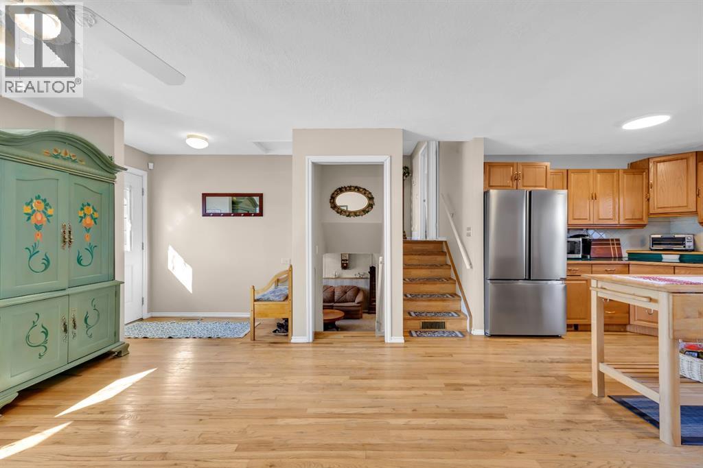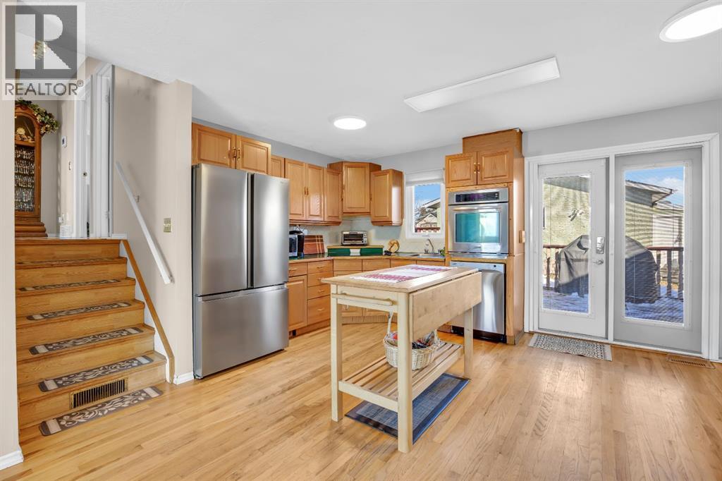 Welcome to 36 Alpine Crescent. Nestled in a quiet, non through road , in the mature community of Airdrie Meadows. This bright spacious 3 level split has so much to offer its new family. The main floor greets you with an open floor plan flooded with natural sunlight. Hardwood floors usher you into the front sitting room. Large dining room area with a built in pantry & French doors leading to your outside oasis. The kitchen is open to the dining & sitting rooms making interaction with family & guests during meal preparation optimal. Newer stainless steal appliances including the built in wall oven, dishwasher (2025), refrigerator (2025) & countertop range (2020). Upstairs you will be introduced to the spacious primary bedroom with closet built ins. The second & third bedroom. And, the 4 pc main bath with updated vanity & light fixtures. The lower level rec room boasts 2 large windows which keeps the natural light flowing throughout this warm welcoming space. This is where families gather & memories are made. This large open area is ideal for family movie/games nights & has plenty of space to accommodate an office or study area. The extended laundry & utility area offers plenty of additional storage while the massive crawl space will ensure that your garage is never cluttered with unnecessary items. This area is also home to a cold storage room. Ideal for canning or wine. There is plenty of space in the utility room to install a second bathroom & a portion of the rec room could be converted to a bedroom if desired. Ask your mortgage broker about the purchase plus improvements program. Outside the rear French Doors you will enter your garden oasis. The massive 3 tiered deck is ideal for entertaining or kicking back & enjoying those warm summer nights. Step into your very own Secret Garden...where the magic of imagination awaits you. Creatively thought out flower beds & design. A secluded lower patio with a beautiful arched entry. Extensive storage under the deck. Storag e shed. Side storage shed. And, an oversized garage measuring almost 22 x 24 ft. Fully insulated with 220 wiring. This large lot could also accommodate an RV pad with some alterations. Additional upgrades include a stunning wrought iron side gate. Windows & doors replaced app 20 yrs ago. Furnace replaced app 2010. Hot water tank replaced app 2015. Roof replaced app 2014. Phantom screens at the front & rear doors. Vacu Flo & Water softener. This home is conveniently located within walking distance to 4 different schools. Churches. The Kinsmen Park & Arena. The Urgent Centre & downtown Airdrie. Quick access to highway 2 for those who commute. This is a great starter home for a single person, couple, or small family. Under $475,000 with no condo fees! Contact your favourite agent today to call this home your own. (id:63190)