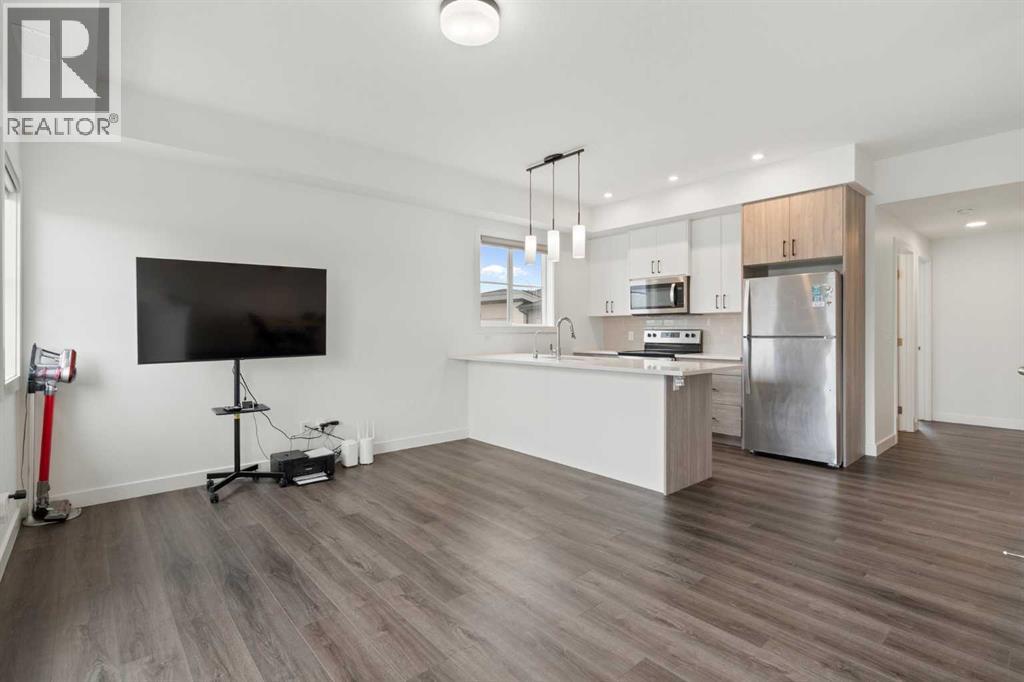 Welcome to this beautifully maintained top-floor corner unit in the highly sought-after community of Springbank Hill. This thoughtfully designed home offers a bright and functional layout, perfect for modern living. The unique top-floor design features a spacious, separate dining area rarely found in similar units, along with a versatile entry-level office/den—ideal for working from home. Upstairs, the open-concept living area is filled with natural light and flows seamlessly to a large balcony with a gas hookup, perfect for outdoor entertaining. The upper level includes two spacious bedrooms, including a private primary retreat with a walk-in closet and ensuite, along with a second bedroom, full bathroom, and convenient in-suite laundry. Additional highlights include a private attached garage and gas BBQ line. Enjoy nearby shopping and dining at Aspen Landing Shopping Centre, plus close proximity to top schools such as Webber Academy, Calgary Academy, and Rundle College. Commuting is easy with quick access to Stoney Trail and the nearby 69 Street CTrain Station. Move-in ready and ideally located, this home is perfect for families, professionals, or investors. (id:63190)