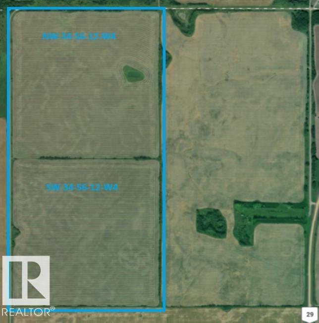 Seeded and ready for spring! This package includes 4 quarters totaling nearly 622 acres with over 600 arable acres! NW-1-56-12-W4 was seeding to hay in 2024 and NE-1-56-12-W4 was seeded to hay in 2025. NW-34-56-12-W4 was seeded to 90% alfalfa/10% Timothy (dairy hay) in 2025 and has a dugout on the property. SW-34-56-12-W4 also was seeded with the same mix of alfalfa (dairy hay) in 2025. All four quarters are high quality and have given above average cash crop yields in previous years. Located roughly 1 ½ hours northeast of Edmonton and just 10 minutes north of Two Hills the land is easily accessible just off highway 29. This is a great opportunity to expand your farm operation for the spring! (id:63190)
