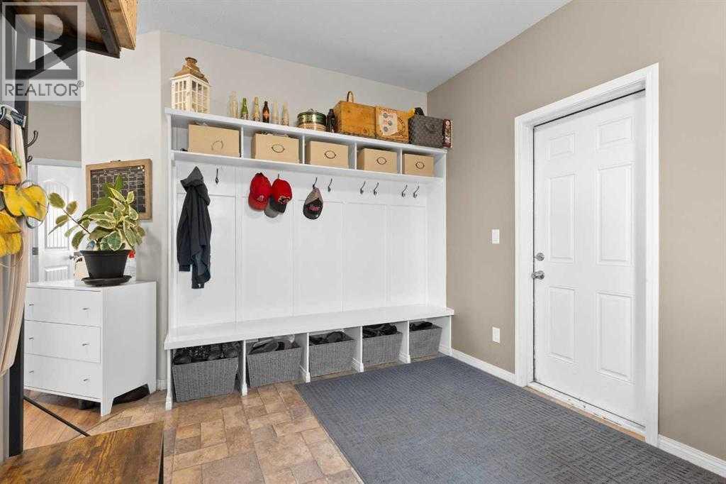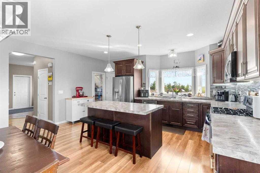 This beautiful 2,500 sq. ft. two-storey home, built in 2020, is located on a sprawling 50.14-acre parcel just East of Olds on Highway 27. As you enter, you're welcomed by an open concept layout with 9-foot ceilings. The living room features a cozy gas fireplace, perfect for those chilly evenings. The kitchen boasts ample cabinetry, a large walk through pantry, a movable island, and access to an East facing deck showcasing gorgeous views of the ravine. The main floor also includes a mudroom with laundry, a 2 pce bathroom, large bedroom with 4 pce ensuite with walk in closet (could be used as a main floor master) and access to a large attached garage (24x31). Upstairs, you'll find a spacious family room, ideal for kids or a secondary living area, along with four bedrooms. The master bedroom offers a spa like ensuite with a separate tub and shower. The upstairs is completed with a 4 pce main bathroom. The home includes a total of five bedrooms and 3.5 bathrooms, providing plenty of space for family and guests. The full, unfinished basement is framed and ready for your personal touch, with a roughed in bathroom and utility room featuring an oversized hot water tank and water softener. Outside, enjoy the tranquility of a garden area, fruit trees, raspberries and a natural treed area in the coulee, making this home very private. The property currently has 19 +/- cultivated acres producing and recent addition of a 16 x 24 Garage on skids. You don't want to miss calling this property your own!! Book your showing today!! (id:63190)