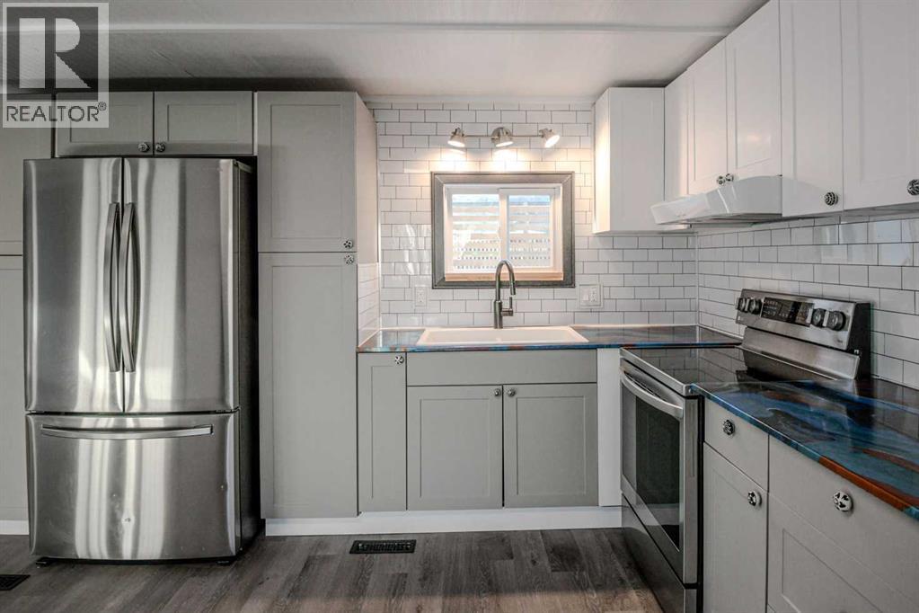 OPEN HOUSE Sunday April 26, from 12 - 3 pm! Welcome to Cherry Way in Greenwood Village! This stunning home has had many recent upgrades that you are sure to appreciate. The open concept layout is perfect for entertaining, with room for the whole family to enjoy. There is a new kitchen, with tons of cupboard space, with a double pantry, upgraded stainless steel appliances ready for the chef in the family to feel inspired. Down the hall you will find the primary bedroom with a door to a private deck, a great place to relax at the end of the day, continue on and you will find the fully appointed laundry area with new (2025) Maytag washer and dryer. The four piece bath has also been redone with a new tub surround and vanity, a great place to have a warm soak on a chilly day, at the end of the hall is an additional good sized bedroom, the heated front foyer offers a great flex space or additional storage. With two beautiful decks both with privacy screens, tons of built in planters for the garden enthusiast and a new back porch, you will be proud to call this home, there is even a large (10x10) storage shed and still room for two vehicles to park, and the additional peace of mind that this home has a brand new hardie board exterior with R5 Fanfold insulation to help keep you warm in the winter. With quick access to the new Farmers Market, Bowness Park and the highway to the mountains just outside your door, your new life is ready for you and it starts here! (id:63190)