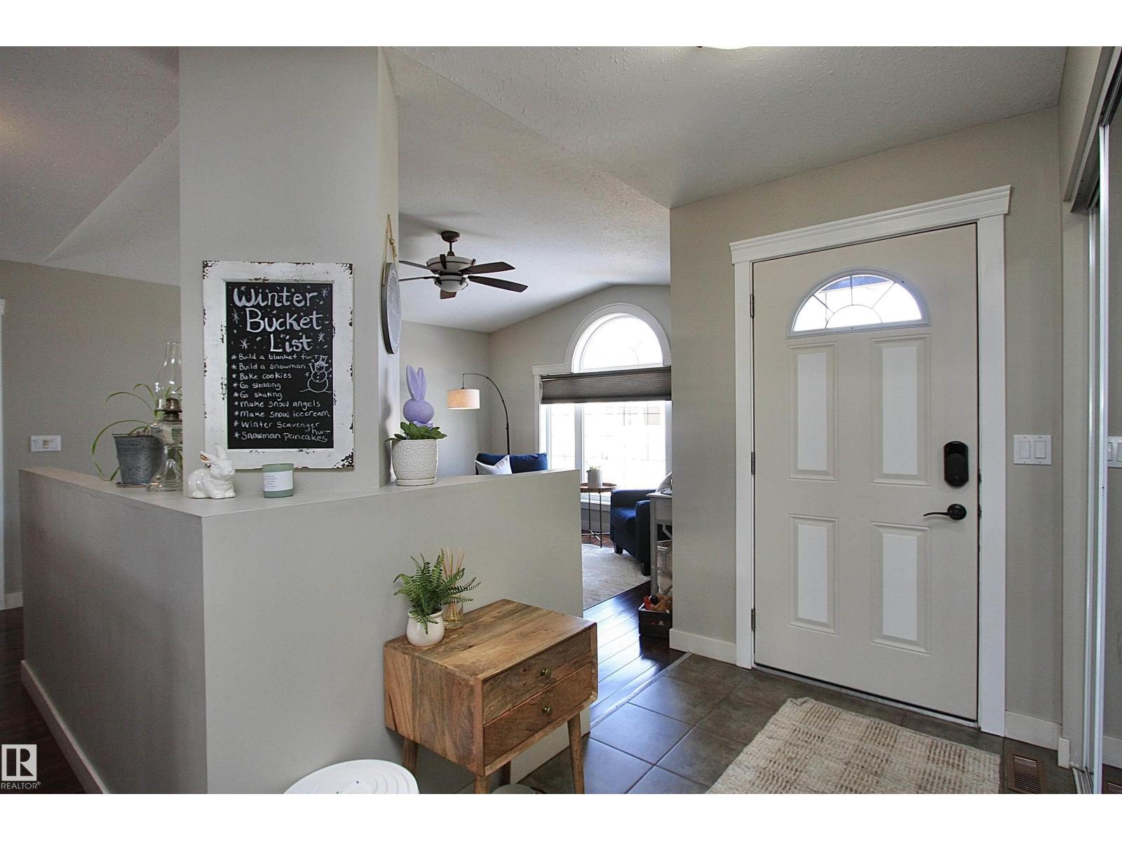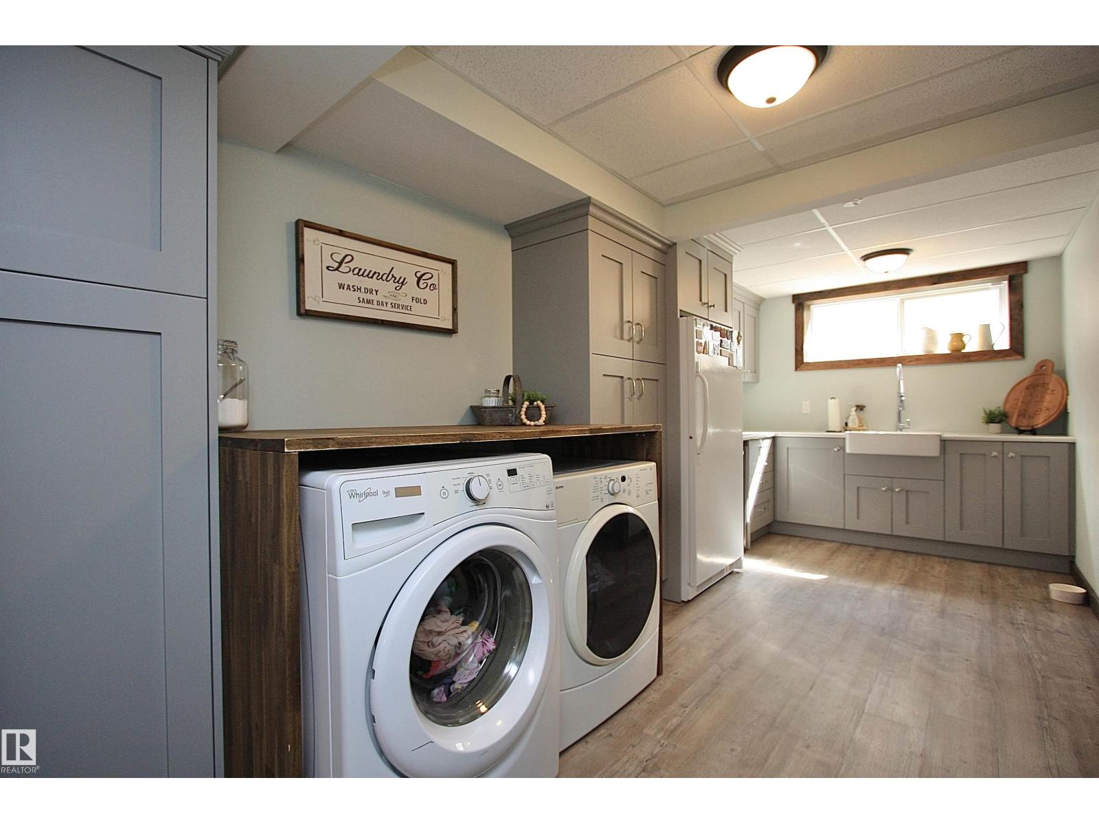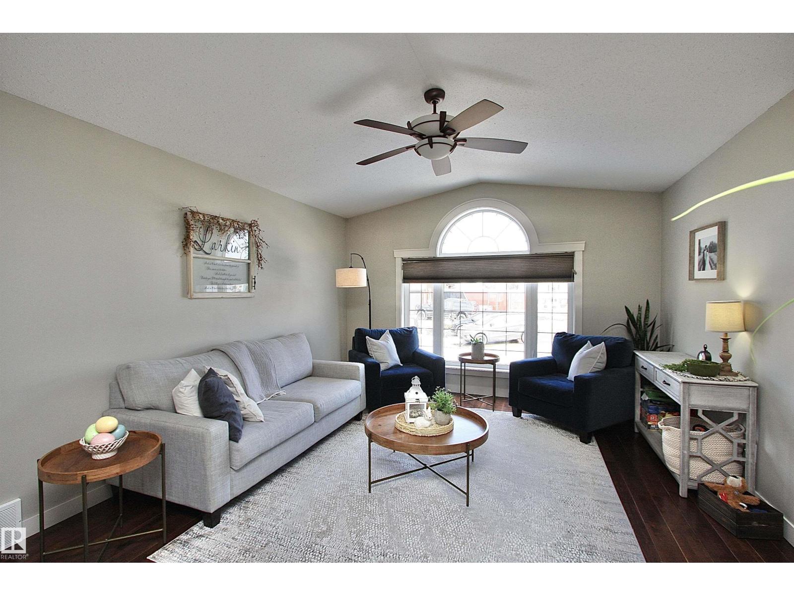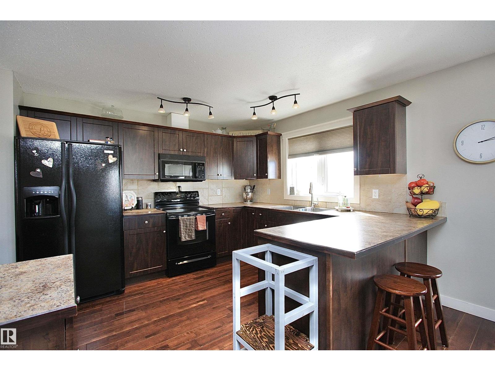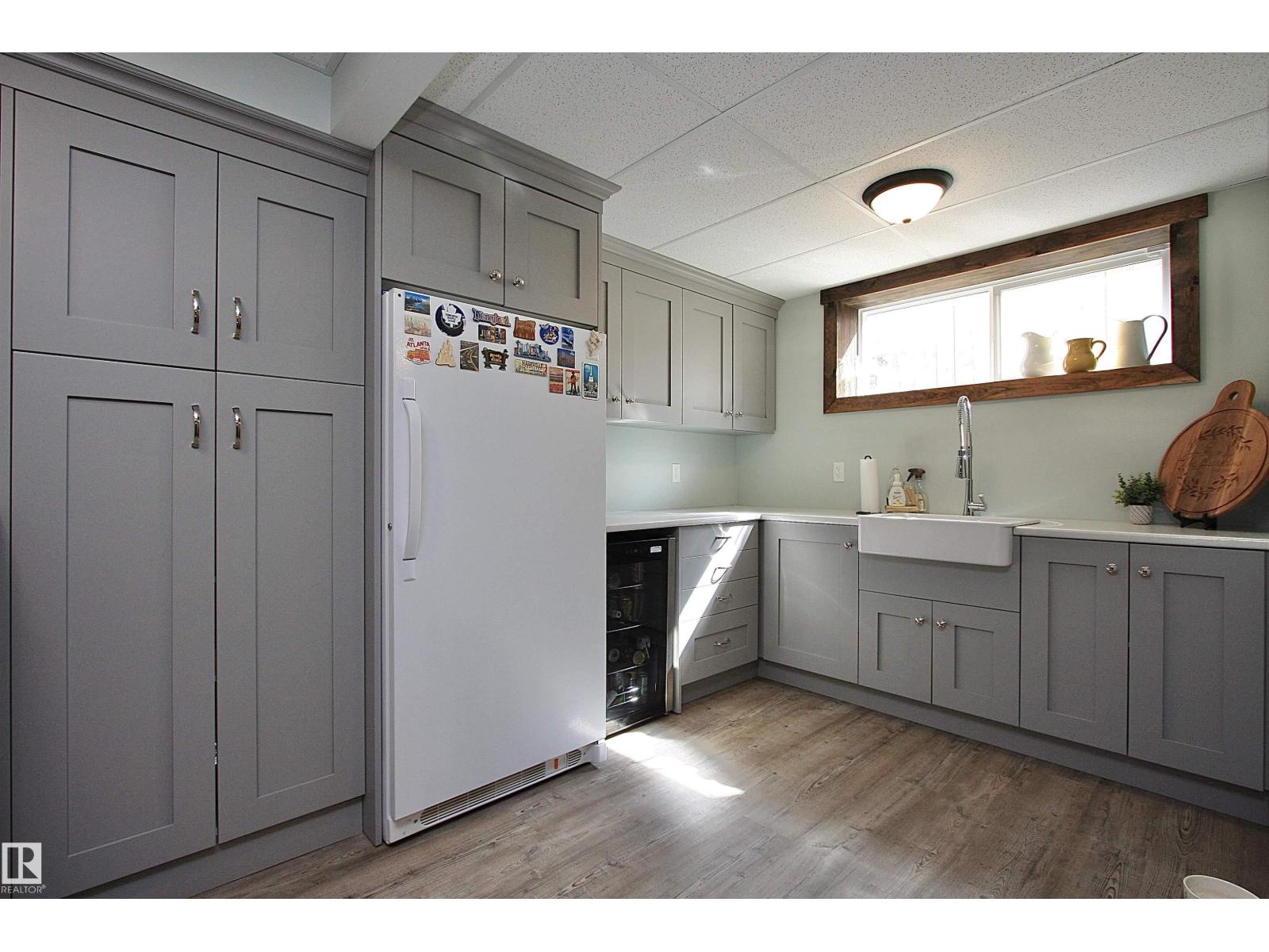 Welcome to Bashaw! Escape the hustle of the city and discover the charm of small-town living in Bashaw. This well-maintained 1,376 sq ft bungalow (built in 2006) offers 4 bedrooms and 3 full bathrooms, including a private ensuite. The bright main floor features vaulted ceilings, hardwood floors, a cozy gas fireplace, and large windows filling the kitchen, dining, and living areas with natural light. Enjoy a beautifully landscaped, gated yard on a generous 9,266 sqft lot with a water feature, firepit area, and plenty of room for kids and pets to play. Start your mornings on the covered front porch and end the day with BBQs on the covered rear deck. The insulated double detached garage and rear alley access provide exceptional RV parking. The lower level offers a large rec room, stylish laundry/bar area with new cabinetry, farm sink, and barn door, plus a flex room ideal for a home office or craft space and a spacious storage/utility room with shelving. Located in a quiet, family-friendly neighbourhood. (id:63190)