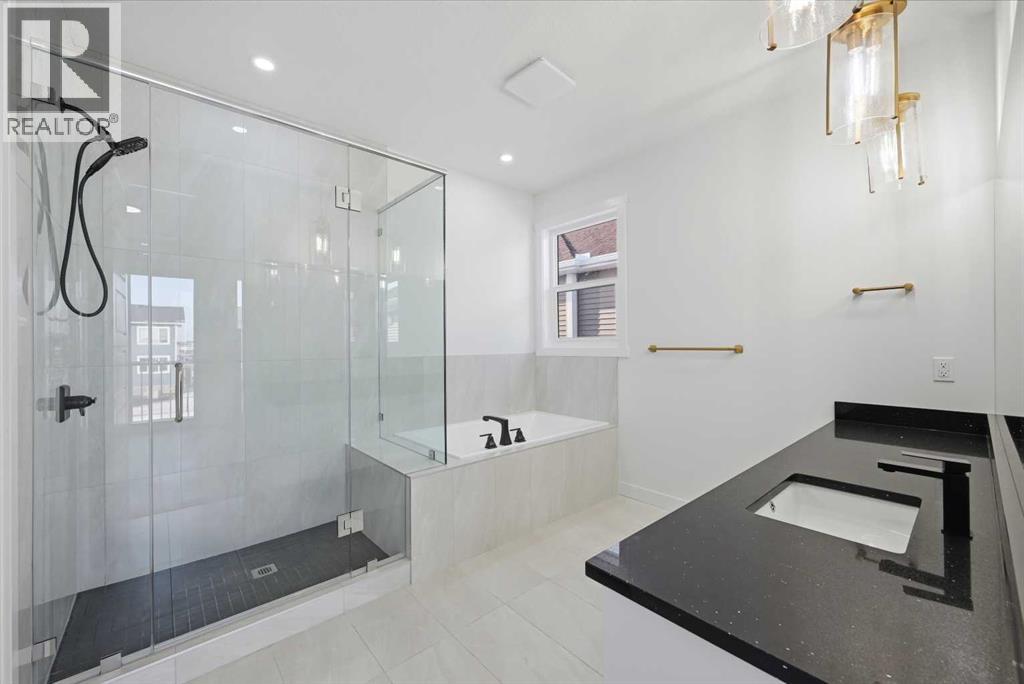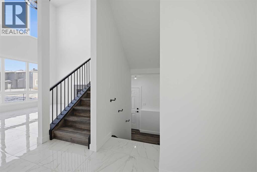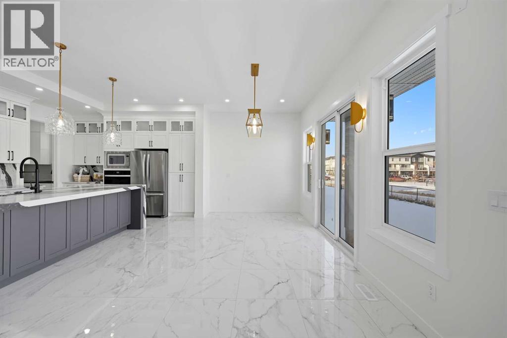 Welcome to this brand-new, custom-designed home in the vibrant Chelsea community of Chestermere—crafted with exceptional attention to detail and elevated modern living in mind. From the moment you step inside, the home’s thoughtful layout and premium finishes set a sophisticated tone, beginning with beautiful and luxurious tiles flooring throughout the main level, offering both durability and refined elegance. The elegant double doors lead to the grand foyer which opens into a striking open-to-above living area, where soaring ceilings, 8 feet doors, and abundant natural light create a dramatic and welcoming first impression. Just beyond, the open-to-above family room becomes the heart of the home, highlighted by a beautifully designed and an elegant fireplace—perfect for both everyday comfort and stylish entertaining. The chef-inspired modern kitchen, meticulously designed with upgraded built-in appliances, including a gas cooktop, built-in microwave, and built-in oven. Sleek cabinetry, premium finishes, and a functional layout make this kitchen a true showpiece. A fully equipped spice kitchen—complete with its own gas stove—adds exceptional convenience for gourmet cooking, meal prep, and hosting. A separate dining area provides an ideal space for family meals or formal gatherings, enhancing the home’s flow and functionality. The upper floor offers three well-appointed bedrooms, each featuring its own attached 4-piece bathroom, providing exceptional comfort and privacy. A separate 5-piece bathroom, an additional spacious bedroom, and a versatile bonus room complete this level, offering ample flexibility for relaxation, work, or entertainment. The laundry room is conveniently located on this floor, adding everyday practicality and ease. The basement has 9 ft ceiling and is unfinished and open to your ideas, offering a blank canvas to create the perfect space. The spacious triple car attached garage with 8 ft garage door is a perfect for car-lovers. Blending custom craftsmanship, premium finishes, and intelligent design, this exceptional home delivers an elevated lifestyle in one of Chestermere’s most desirable and fast-growing community. Prime Connectivity: Quick access to Stoney Trail, 17th Ave SE, and Calgary city limits—ideal for commuters. Family-Focused Amenities: Close to new schools, playgrounds, landscaped parks, and walking paths. Convenient Shopping: Minutes from Chestermere Station, Costco, Walmart, restaurants, cafés, and essential services. Recreation & Lifestyle: A short drive to Chestermere Lake for beaches, boating, walking trails, and year-round outdoor activities. Modern Community Planning: Wide pathways, green spaces, and a welcoming community feel designed for families and professionals alike. (id:63190)