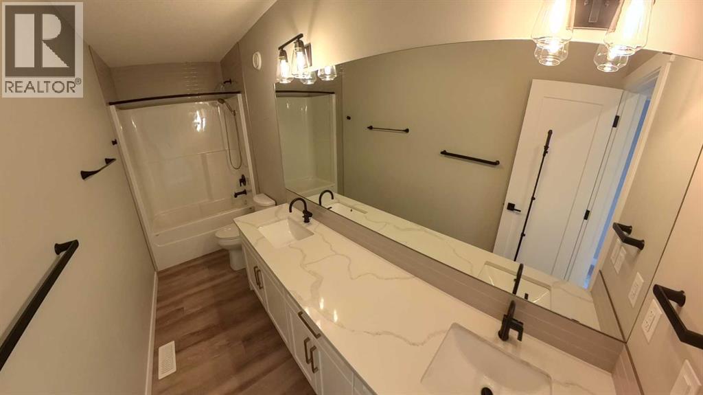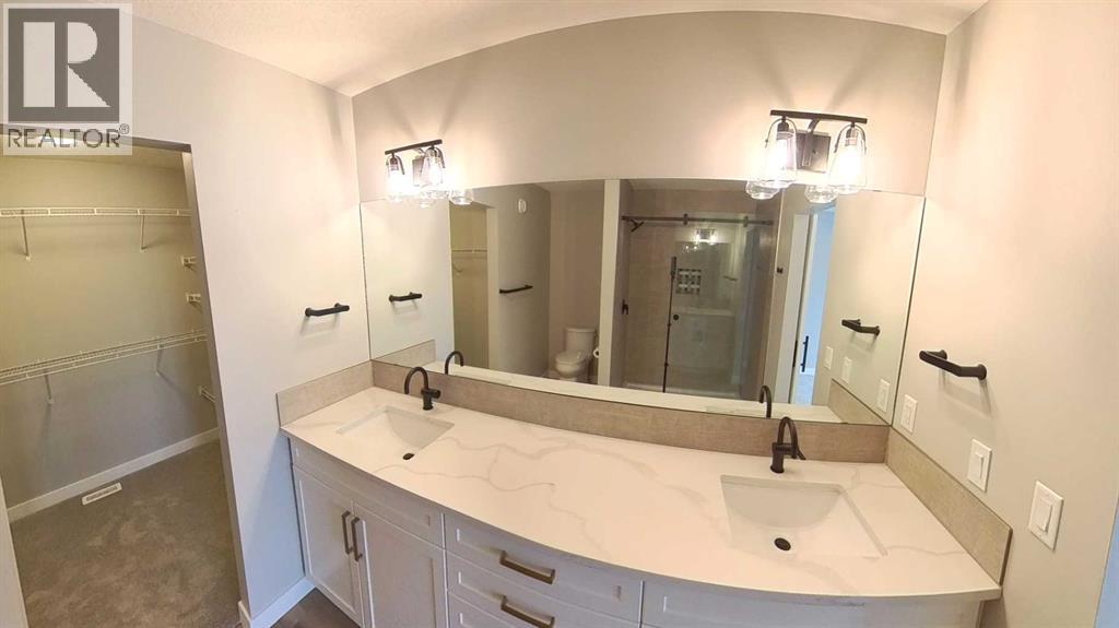 Welcome to the perfect blend of country serenity and urban convenience in the quaint community of Diamond Willow Estates. Located just minutes from Rocky Mountain House, this beautiful three-bedroom, two-bathroom home offers a lifestyle of comfort and style. The heart of the home features an expansive open floor plan where every corner of the great room captures your attention, from the statement gas fireplace to the oversized kitchen island. Large windows throughout the modern kitchen and living area flood the space with natural light, creating a warm and inviting atmosphere for daily living. Entertaining is effortless with seamless access from the living room to a large deck and a fully fenced yard, providing an ideal setting for family gatherings. The main floor is thoughtfully designed with two spacious secondary bedrooms, a convenient laundry room, and a five-piece bathroom featuring a large vanity. Tucked away as a private sanctuary, the master suite is a true dream, boasting a walk-in closet and an ensuite with a double vanity and a sleek glass-door shower. You can even enjoy your morning coffee on the deck directly from your bedroom while taking in the peaceful views of the meadow located right behind the property. Additional highlights include a two-car garage, a dedicated dog run, and a storage shed to keep your outdoor tools organized. Gardening enthusiasts will fall in love with the showstopping greenhouse that sits on the property. With a partially finished basement that is already plumbed for an additional bathroom, there is plenty of room to grow and customize this home to your needs. This property is a rare find that combines modern interior finishes with the tranquility of a meadow-side retreat. (id:63190)