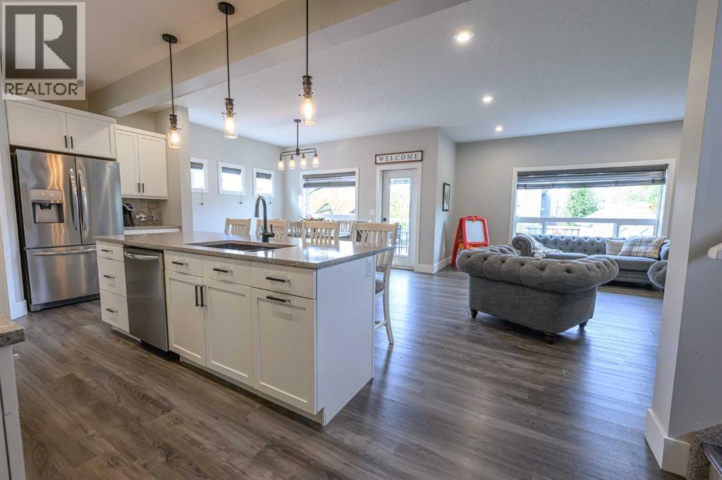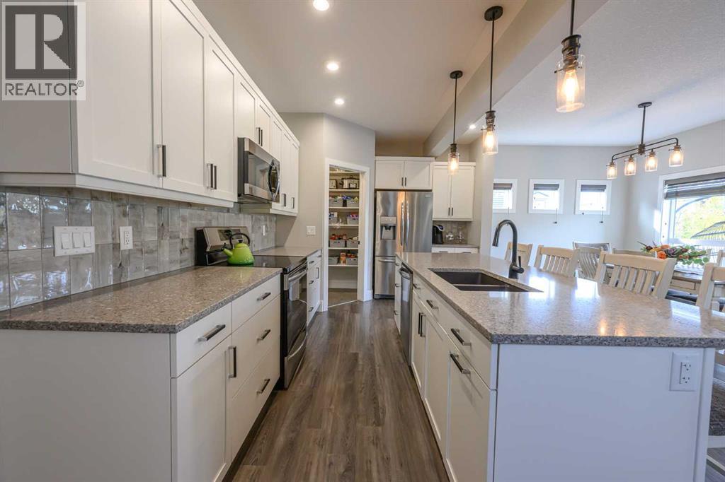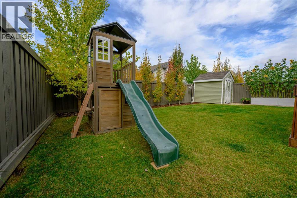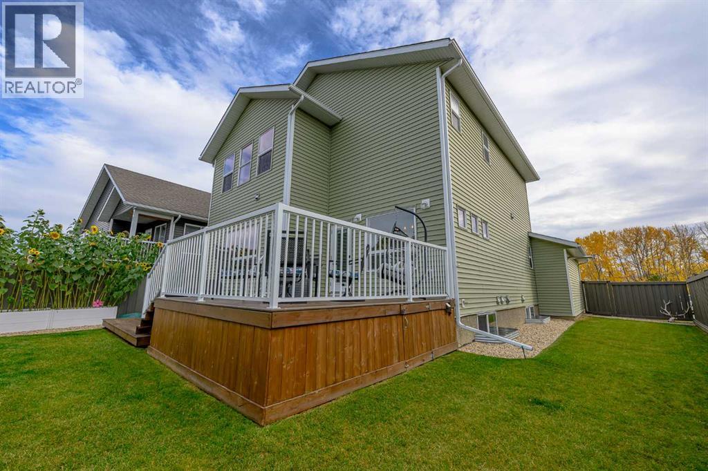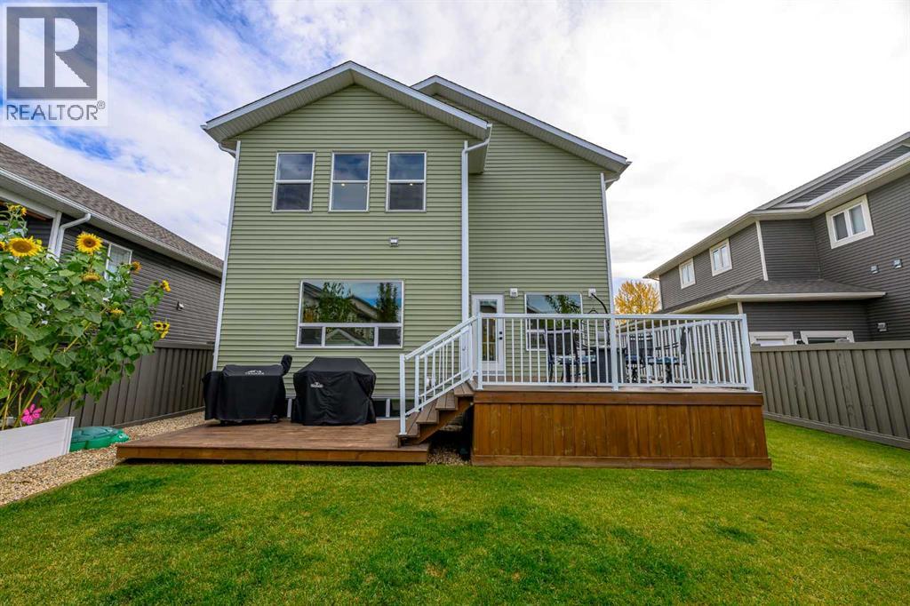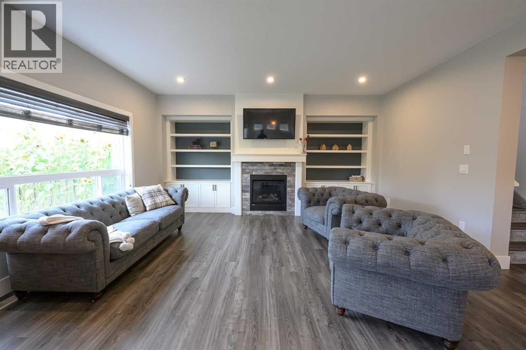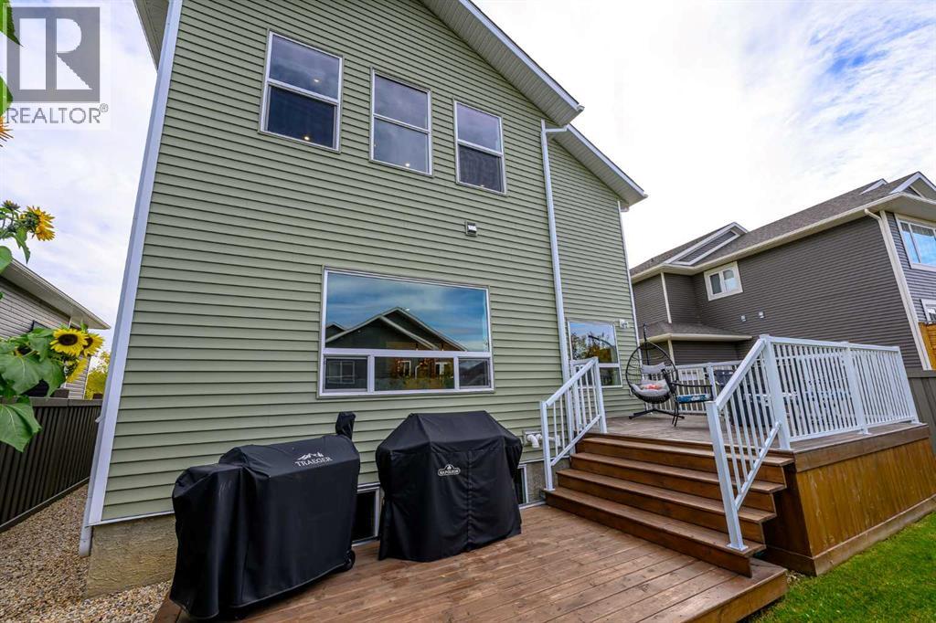 Welcome home to O’Brien Lake!Located in one of Grande Prairie’s most sought-after family neighbourhoods, this stunning fully developed home offers the perfect blend of comfort, style, and functionality. Just one block from the new École Louis Riel and with scenic walking trails right outside your front door, the location truly can’t be beat.Step inside to a bright and inviting main floor featuring an open-concept layout designed for modern living. The living room showcases a cozy gas fireplace, custom mantel, built-in shelving, and large windows that flood the space with natural light. The kitchen is beautifully finished with quartz countertops, a spacious island, ample cabinetry, and a convenient walk-through pantry. A standout feature is the oversized boot room, complete with plenty of storage and a built-in office space—perfect for busy families.Upstairs, you’ll find a generous bonus room, two well-sized bedrooms, a full bathroom, and a spacious laundry room. The primary suite is your private retreat, offering a walk-in closet and a spa-inspired ensuite with a soaker tub, tiled shower, and dual sinks.The fully developed basement brings the total living space to over 3,000 sq ft and includes a fourth bedroom, office, full bathroom, and a large family room—ideal for entertaining or relaxing.Additional features include air conditioning, a fully landscaped yard, a 10x10 shed, and a hot tub-ready deck complete with gas lines for your BBQ.This is the complete package in a prime family location—don’t miss your opportunity to call it home! (id:63190)