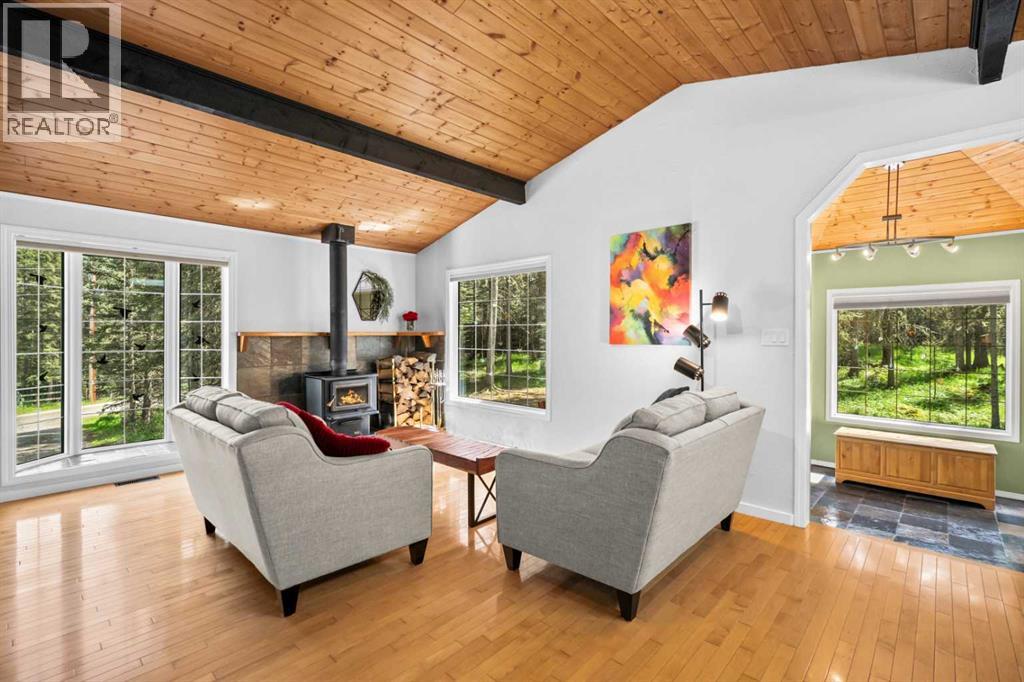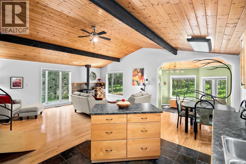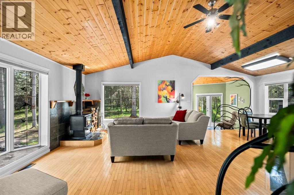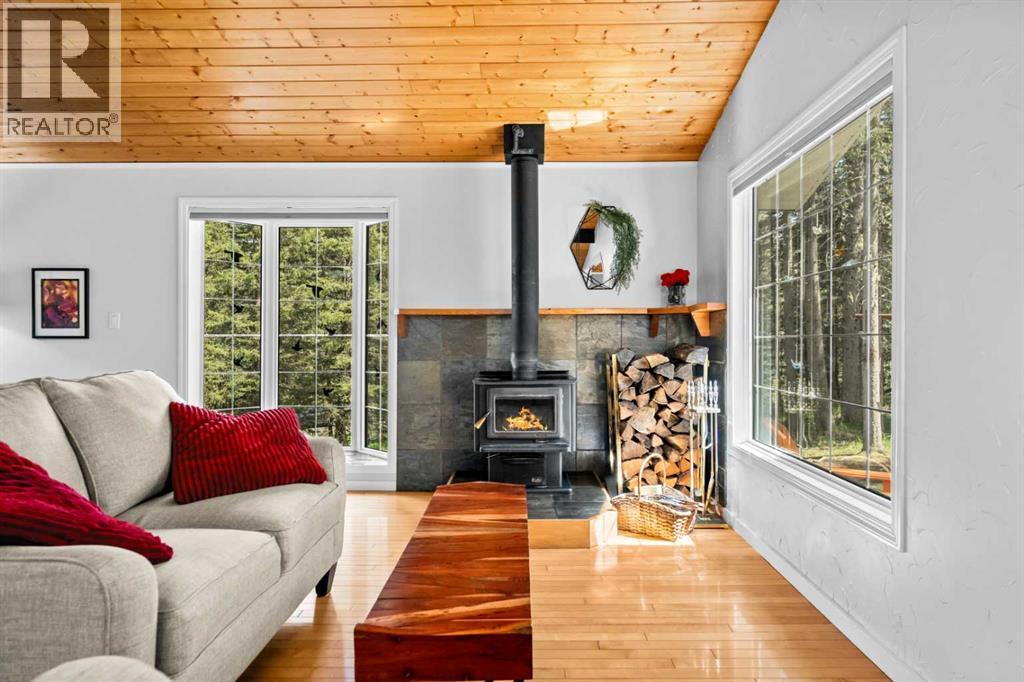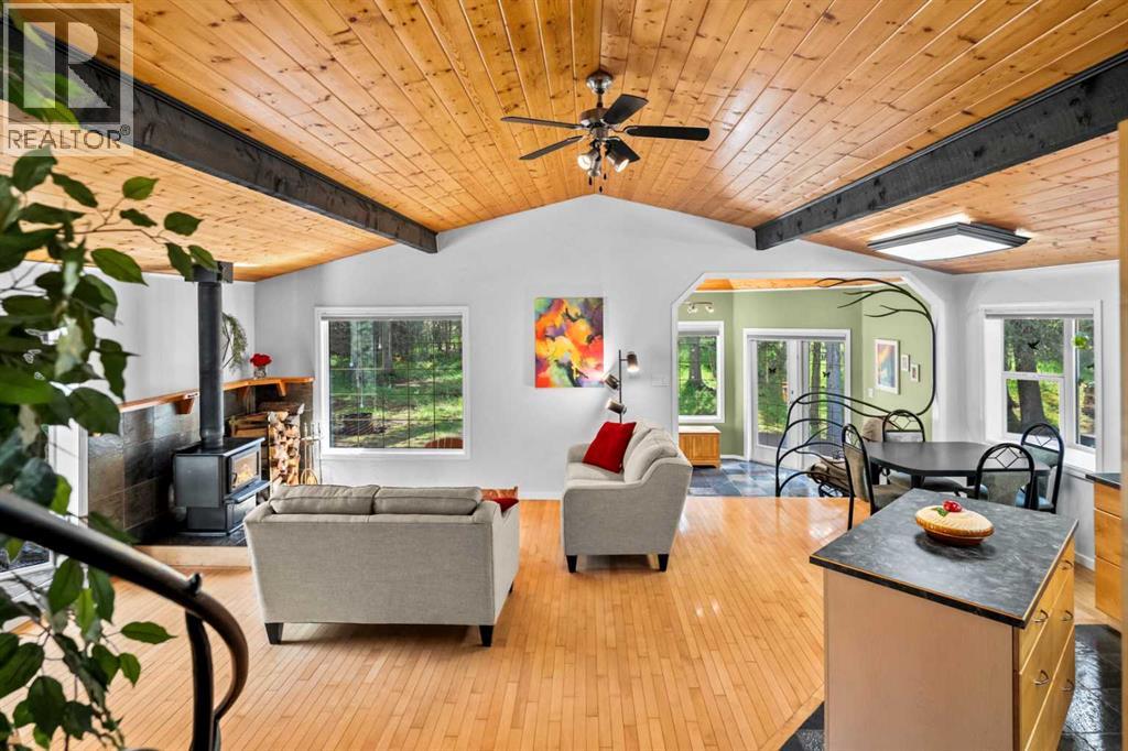 Welcome to this enchanting country acreage, nestled on the edge of a tranquil forest where sunlight filters through mature spruce and pine trees. This thoughtfully designed three bedroom plus den, two bath, three level split home set on 1.76 acres of peaceful woodland, just west of the picturesque hamlet of Water Valley. Offering a harmonious blend of natural serenity and modern convenience, this property is perfectly located just 45 minutes northwest of Calgary. Meticulously maintained and updated over the years, starting right from the studs, this home showcases craftsmanship and attention to detail at every turn. The natural woodwork throughout not only exudes a sense of timeless warmth but also complements the forested surroundings seamlessly. The open concept floor plan, paired with multiple flexible living spaces, provides the ideal layout to adapt to anyone's needs and lifestyle. One of the highlights of this home is the recently renovated lower walkout level. The primary bedroom, a true sanctuary of comfort, features soft, neutral tones, direct access to a private rear deck and a spa-like ensuite...this space is designed to provide rest and tranquility. Imagine beginning your mornings to the gentle songs of birds and ending your evenings by the comforting crackle of a real wood-burning stove. This is more than just a home—it is a retreat, a place where the extraordinary is found in everyday moments. Schedule your private viewing today of this one-of-a-kind property! (id:63190)