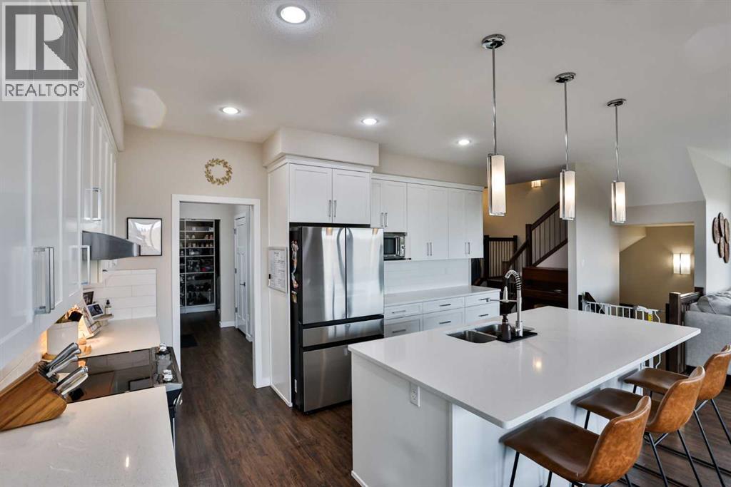 Stunning, Fully Developed Two-Storey in Legacy Ridge – This home is ideal for large families, offering six bedrooms—including four on the same floor, a rare find—along with 3.5 bathrooms, a front office, and dedicated gym area.Welcome to this exceptional home offering over 3,500 sq. ft. of developed living space in the sought-after community of Legacy Ridge. Built in 2017, this beautifully designed two-storey showcases pride of ownership throughout—immaculately maintained and truly move-in ready. Step inside to a bright and functional layout featuring a main floor den/office (complete with rough in for water if you need a salon) convenient powder room, and a spacious open-concept living, kitchen, and dining area. The kitchen is both stylish and functional with ample white cabinetry, large island, and a walk-through butler’s pantry—perfect for everyday living and entertaining. The convenience of all the extra cabinets and built-ins in this space is so appealing. Large windows span the back of the home, filling the space with natural light and offering peaceful views with nobody building behind the home in the future since it is backing Gault Mine Park. Upstairs, you’ll find a generous bonus room, along with a well-appointed primary suite featuring a walk-in closet and luxurious ensuite with double sinks, separate shower, and soaker tub. Both located on the back of the home, taking in the views of the massive backyard and future green space behind. THREE additional bedrooms and a full bath complete the upper level. The fully developed basement adds incredible versatility with a family room, additional bedrooms, and a gym/rec space. The living area has been tastefully updated with wainscotting, creating a warm and finished feel that elevates the entire lower level. A built in side bar and beverage fridge finish this space off! Car enthusiasts and families alike will love the oversized TRIPLE attached garage, offering ample space for vehicles, storage, and hobbies. Ste p outside to a beautifully finished backyard where no detail has been overlooked. Enjoy extensive concrete work, decorative curbing, underground sprinklers, and low-maintenance rock landscaping perfect for a dog run or extra storage —all thoughtfully designed to create a polished and functional outdoor space. Situated on a large pie-shaped lot in a quiet cul-de-sac, this home offers space, privacy, and incredible value—all while being close to schools, parks, and amenities. This is a home that has been exceptionally well cared for— with hard surface throughout this home shows like new and ready for its next owners to enjoy. (id:63190)