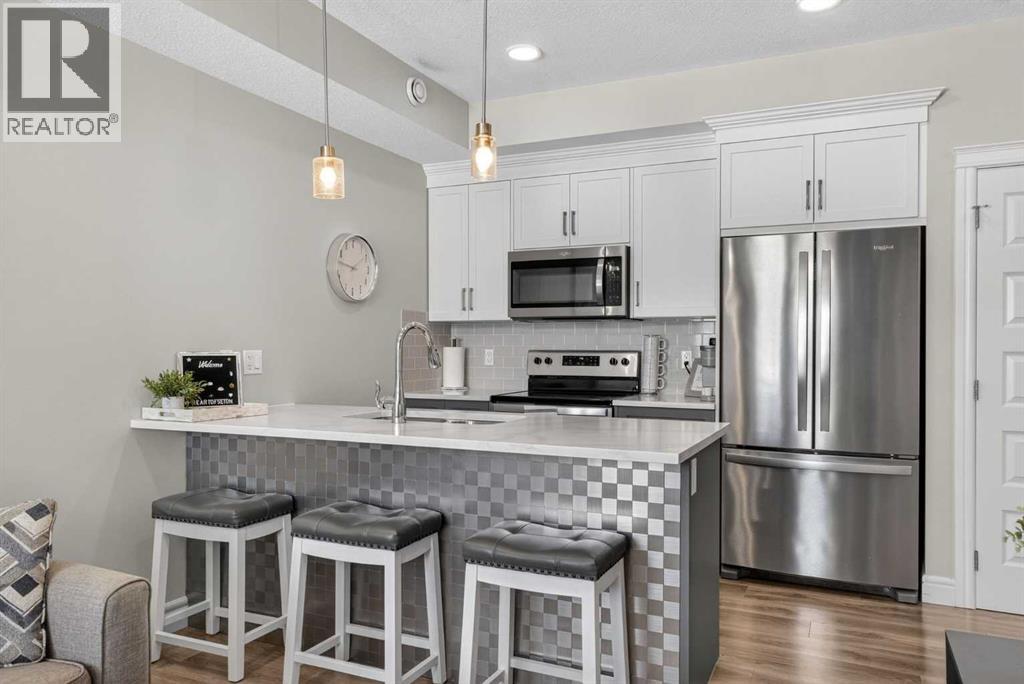 Proudly presenting 19613 45 St SE in the heart of Seton. This beautifully maintained unit shows like new and is currently operating as a successful Airbnb with approval in place for short term rentals, offering immediate income potential or flexible living. Located within walking distance to Seton’s vibrant Urban District, this modern and inviting home features a thoughtfully designed open concept layout with a calming colour palette and warm luxury vinyl plank flooring throughout. The stylish kitchen showcases two toned cabinetry, quartz countertops, stainless steel appliances, perfect for entertaining or everyday use. The spacious bedroom comfortably fits a queen sized bed with room for side tables while the bathroom is finished with a quartz vanity and a deep soaker tub creating a relaxing retreat. Additional highlights include titled parking, in suite laundry, storage and affordable condo fees. Seton is one of Calgary’s most desirable communities known for its walkability and access to top tier amenities including the YMCA, South Health Campus, grocery stores, restaurants, cinemas and transit. Whether you are looking for a turnkey Airbnb investment or a stylish place to call home, this property offers exceptional value in a prime location. (id:63190)